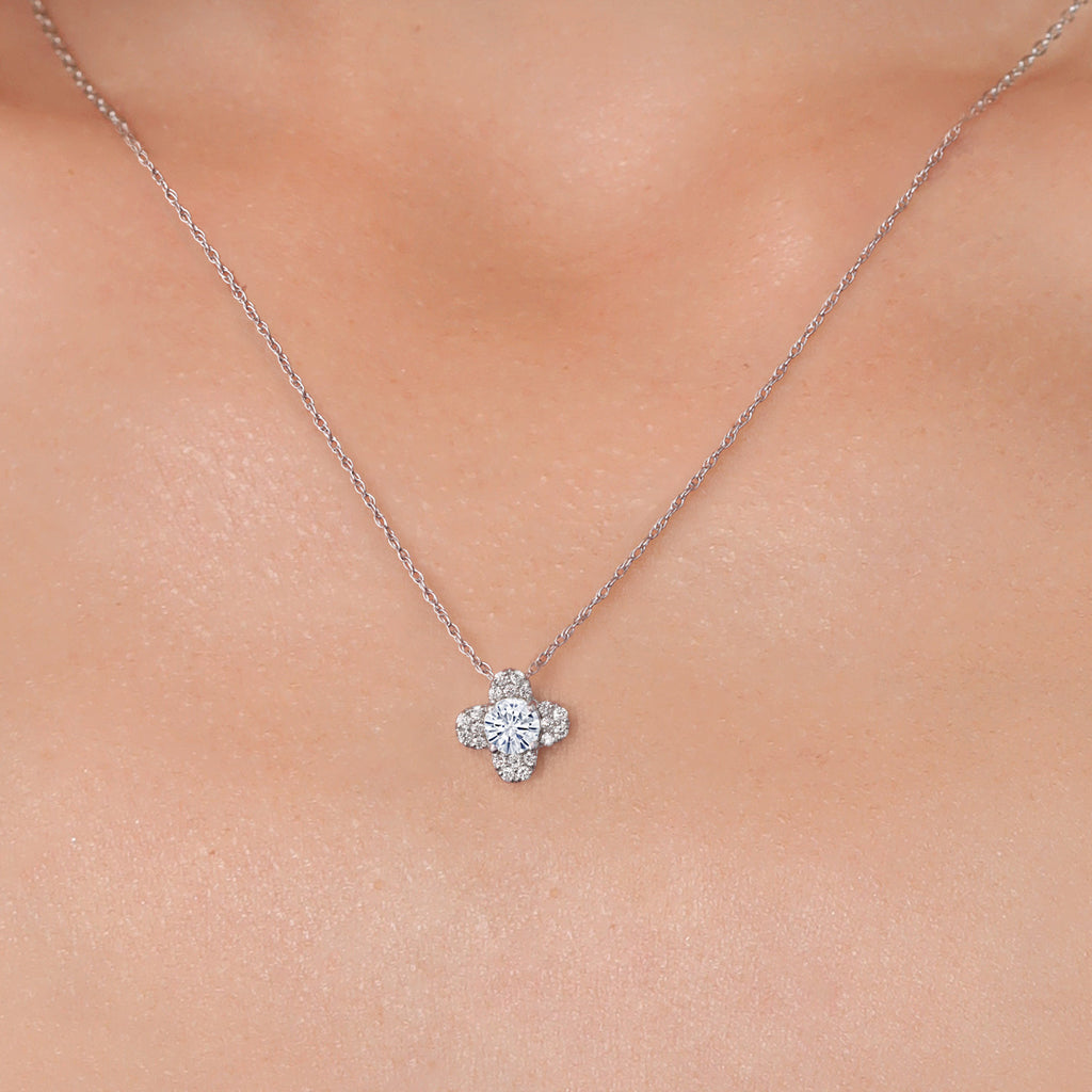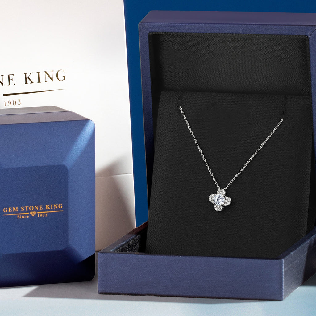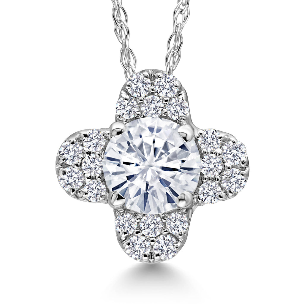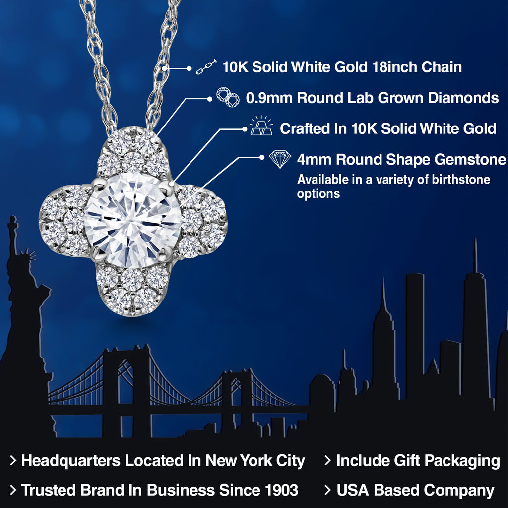 10K White Gold Forever Classic Moissanite and White Lab Grown Diamond Pendant Necklace For Women | 0.31 Cttw | Gemstone Birthstone | Round 4MM | With 18 Inch Chain