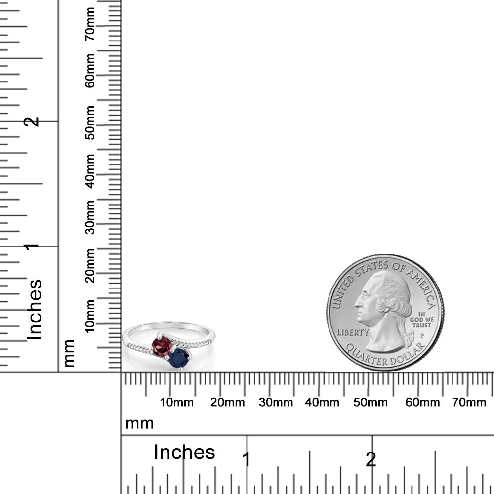 0.90 CARAT TOTAL WEIGHT DUAL GEMSTONE DESIGN: Featuring a symbolic two-stone setting with round-cut red rhodolite garnet and deep blue sapphire, this ring represents two hearts joined as one. Accented by natural diamond highlights, the 0.90 total carat weight delivers a meaningful blend of color, fire, and elegance—perfect for expressing lasting connection and balance.