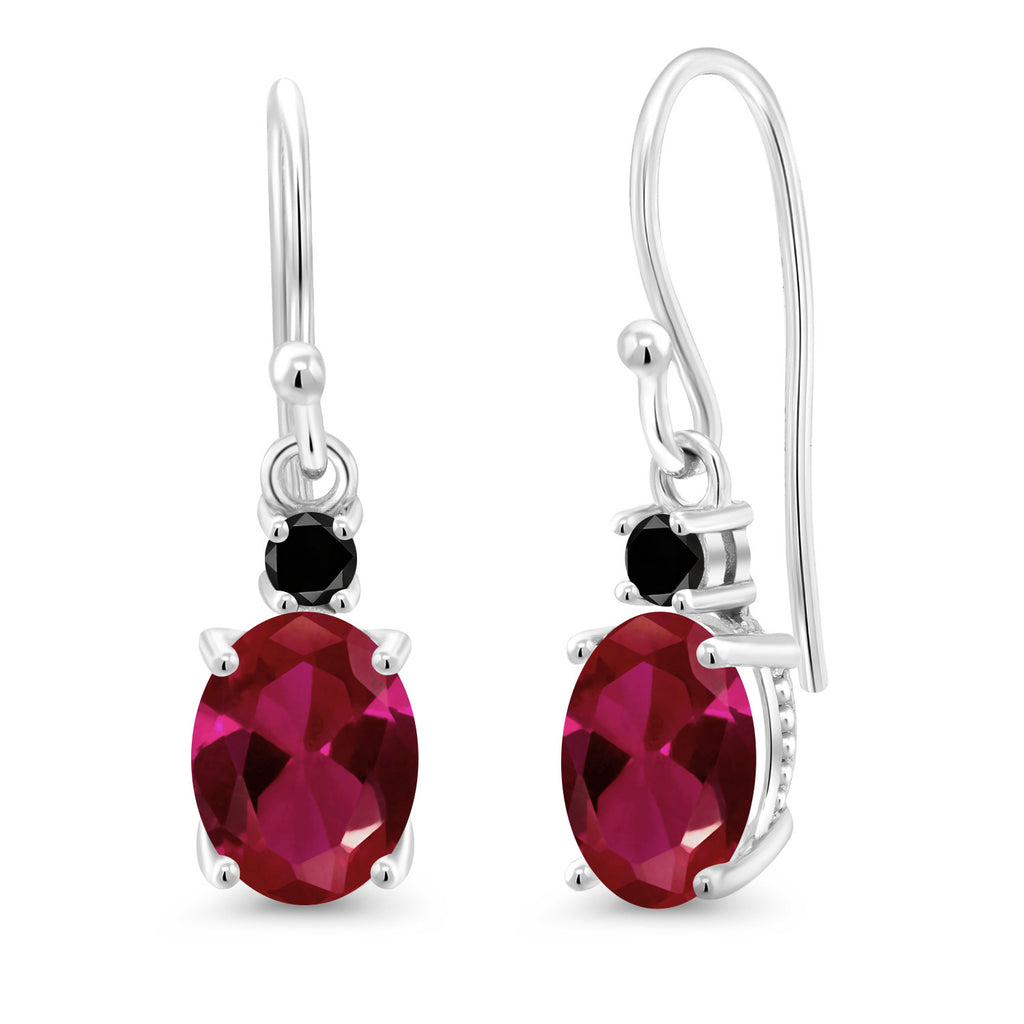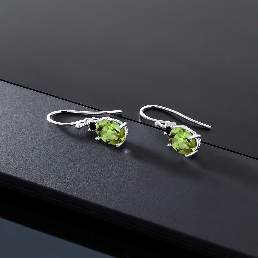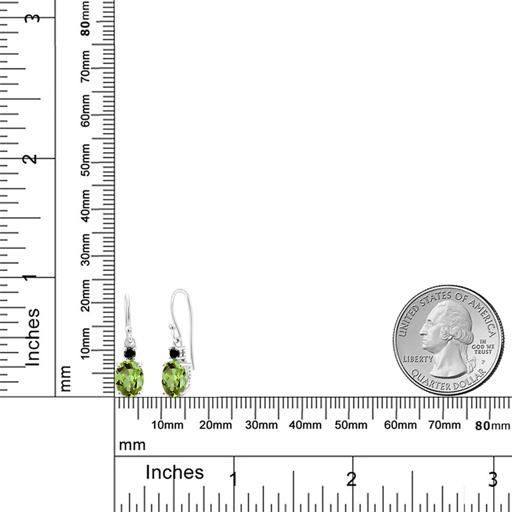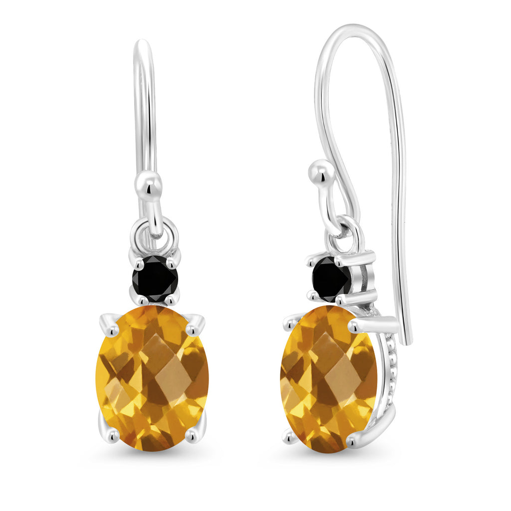 10K White Gold Gemstone Birthstone and Black Diamond Dangle Earrings For Women | Oval 8X6MM and Round 2.5MM | Elegant Drop Design with Classic French Wire Hooks | Fine Jewelry Earrings