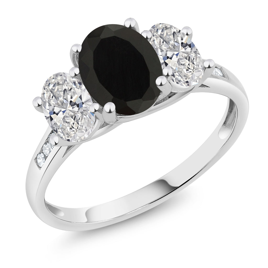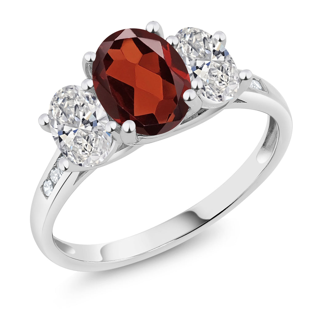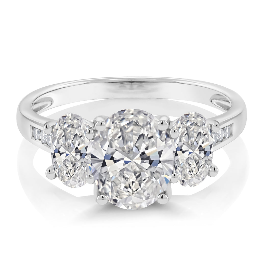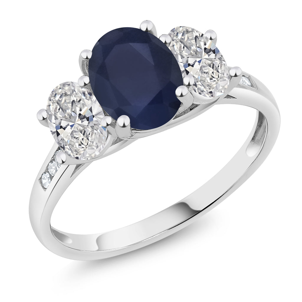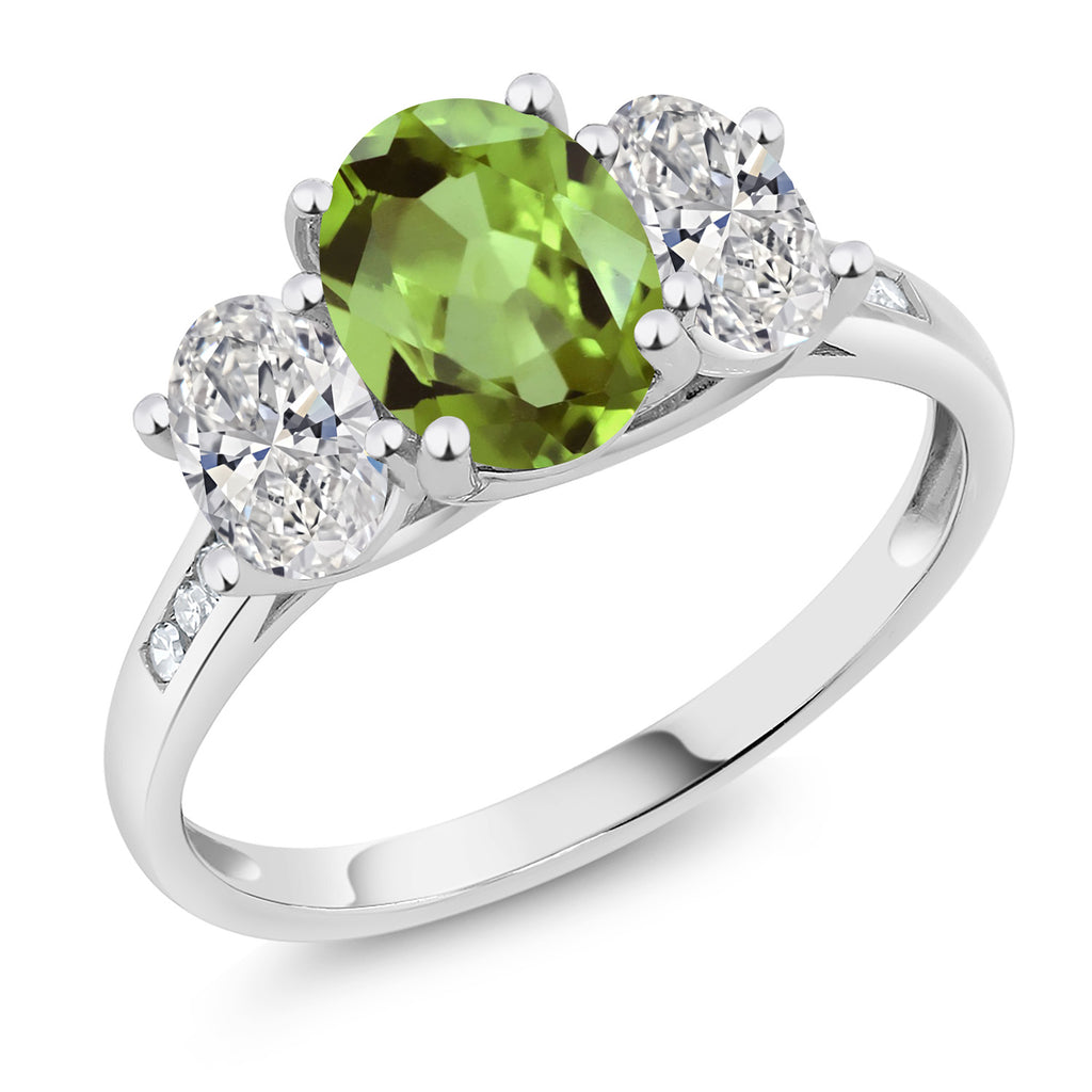10K White Gold Gemstone Birthstone and Lab Grown Diamond 3-Stone Engagement Ring for Women | Oval 8X6MM and 6X4MM | Elegant Wedding Anniversary Promise Ring | Size 5-9