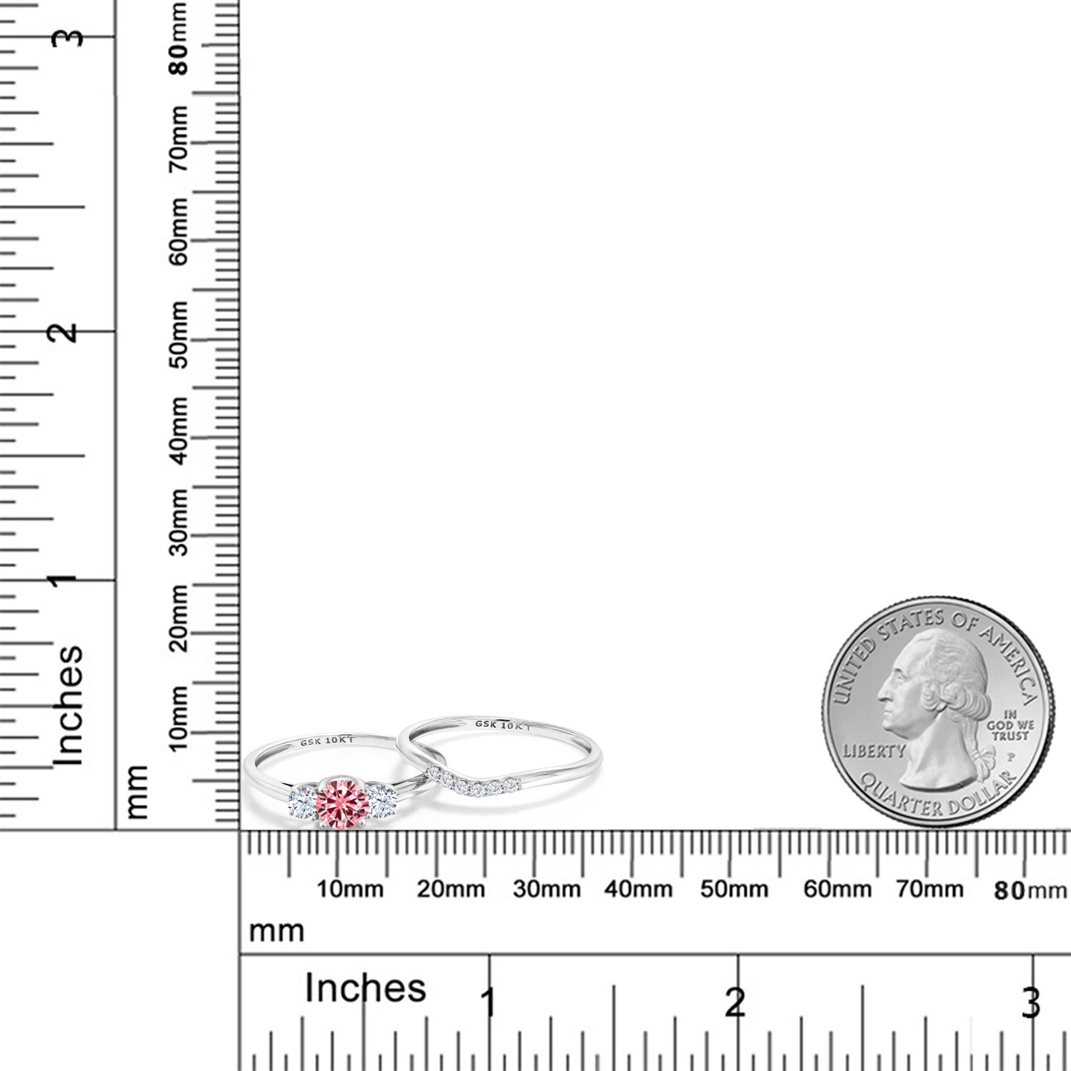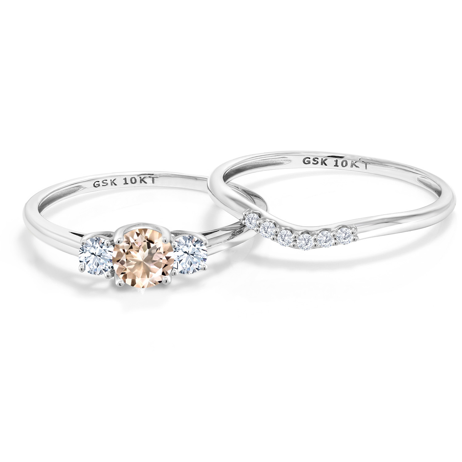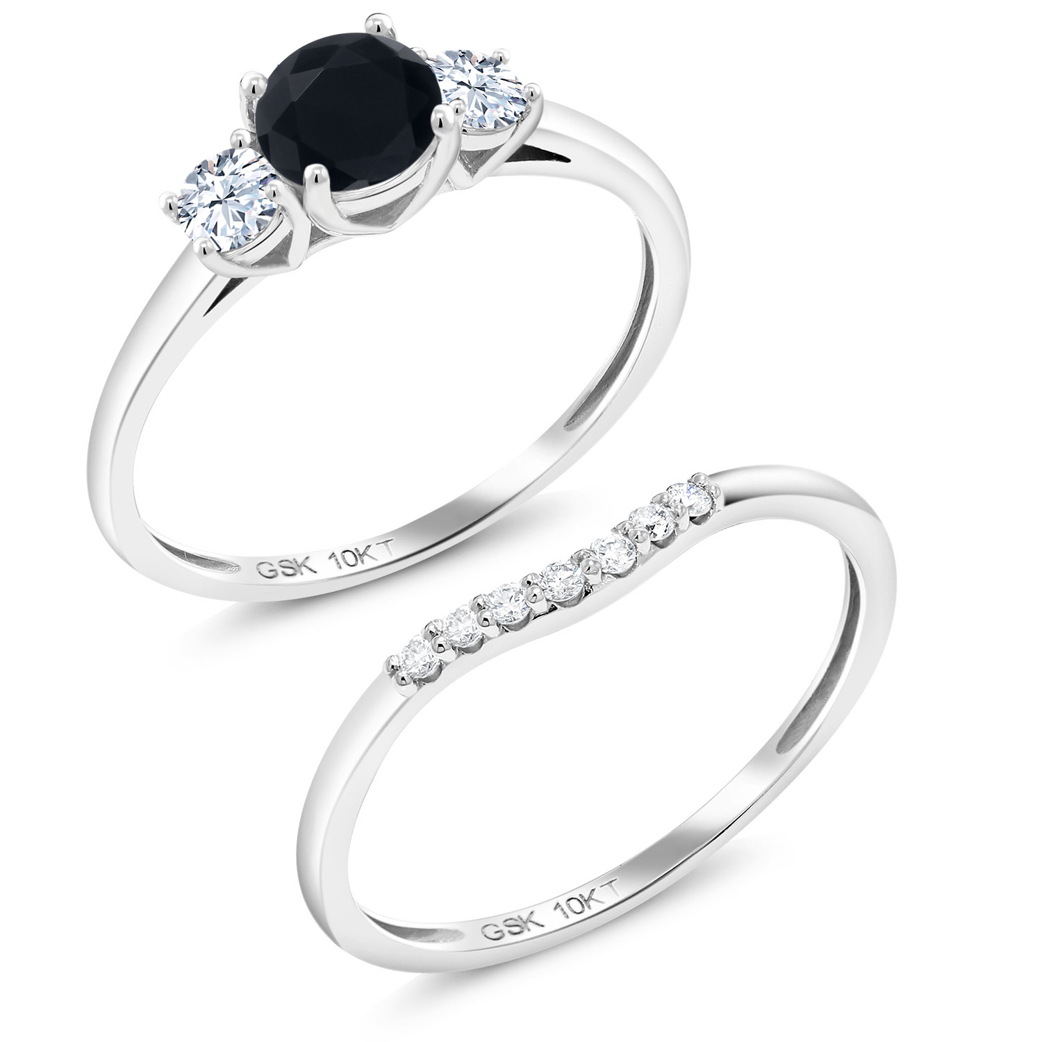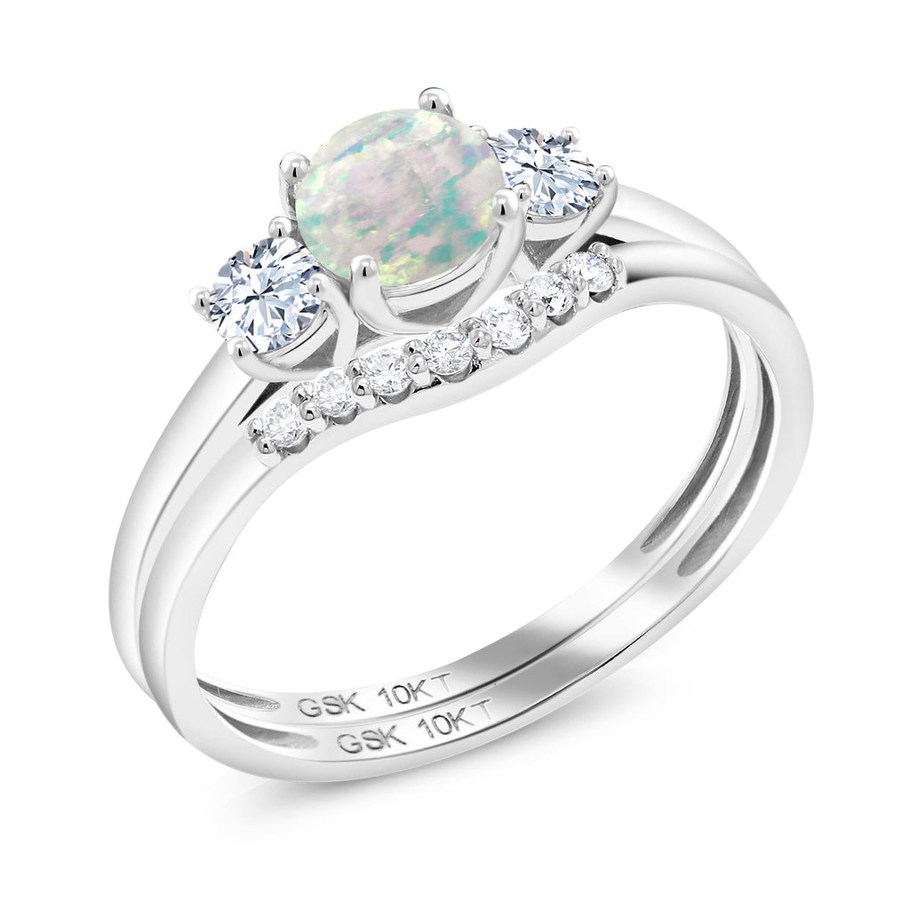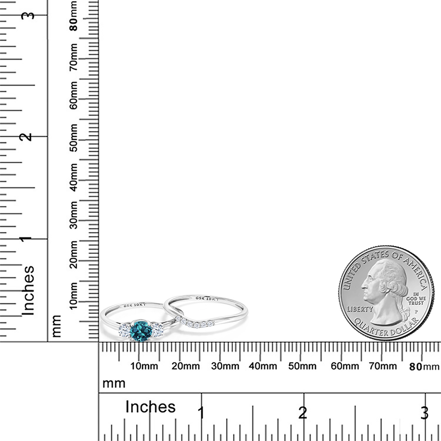 3-Stone Bridal Engagement Wedding Ring Set For Women | 10K White Gold Gemstone Birthstone White Created Sapphire and Lab Grown Diamond | Round 5MM and 3MM | Available in Size 5,6,7,8,9