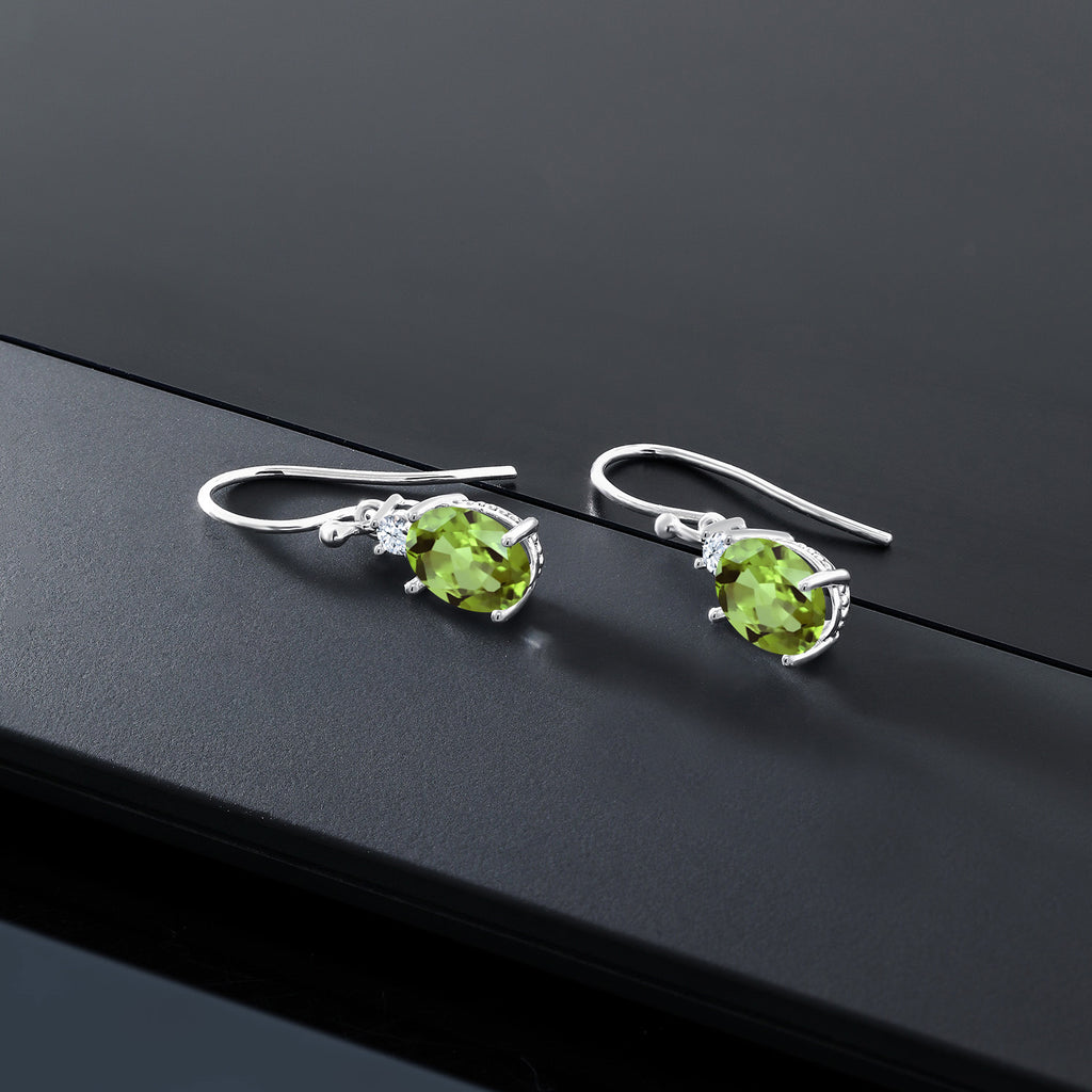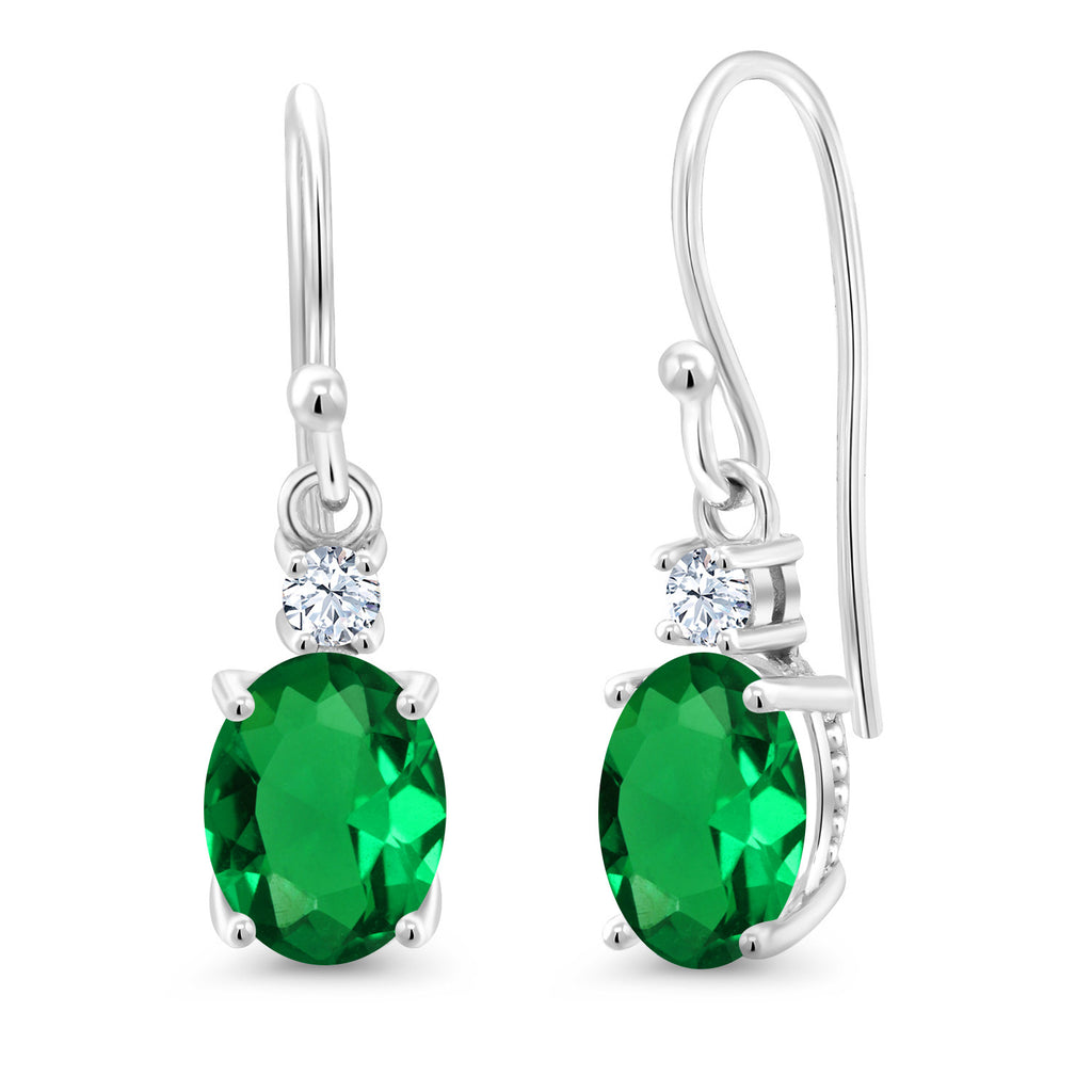 10K White Gold Gemstone Birthstone and White Created Sapphire Dangle Earrings For Women | Oval 8X6MM and Round 2.5MM | Elegant Drop Design with Classic French Wire Hooks | Fine Jewelry Earrings