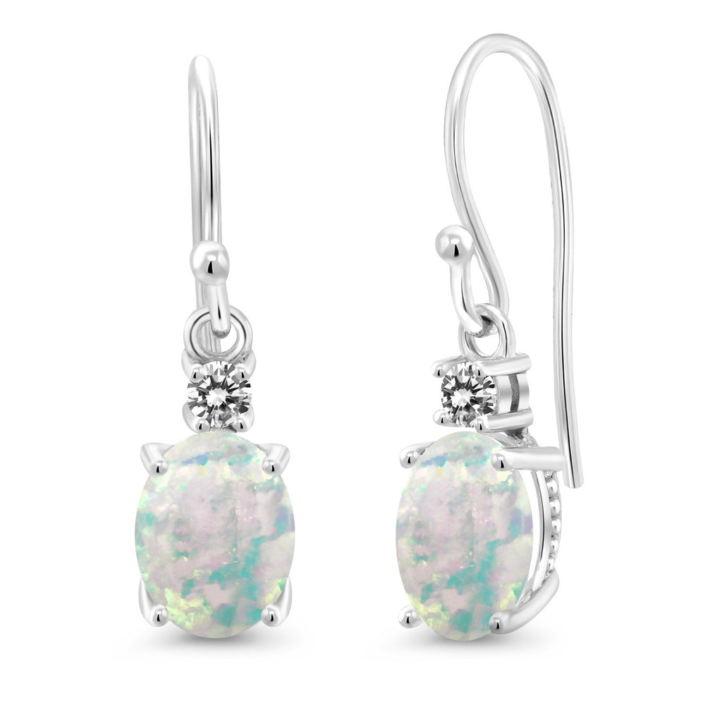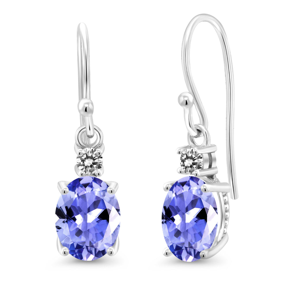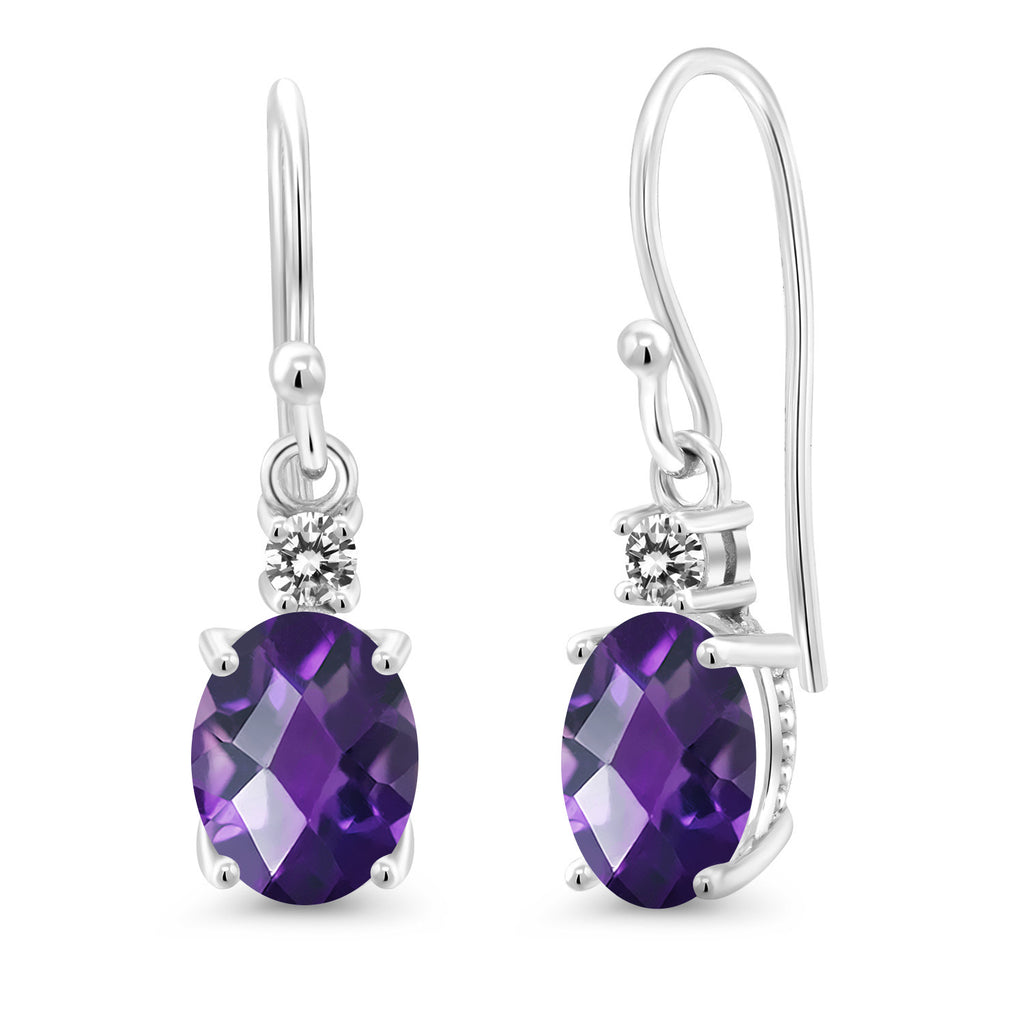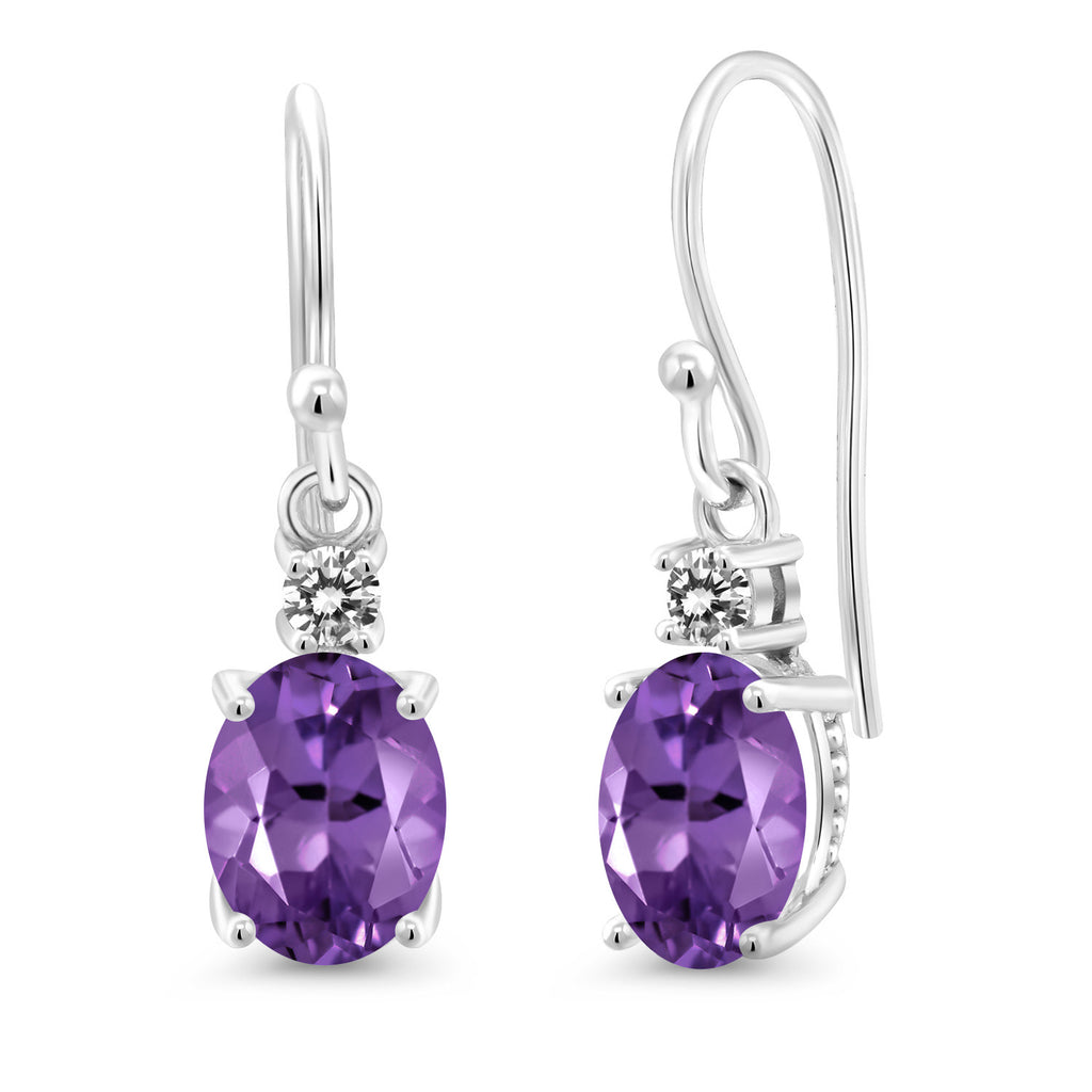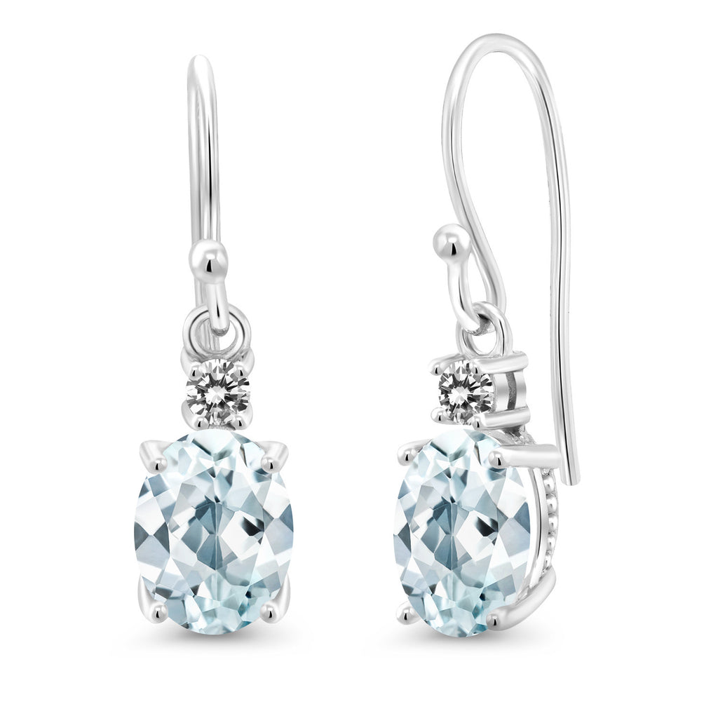 10K White Gold Gemstone Birthstone and White Diamond Dangle Earrings For Women | Oval 8X6MM and Round 2.5MM | Elegant Drop Design with Classic French Wire Hooks | Fine Jewelry Earrings
