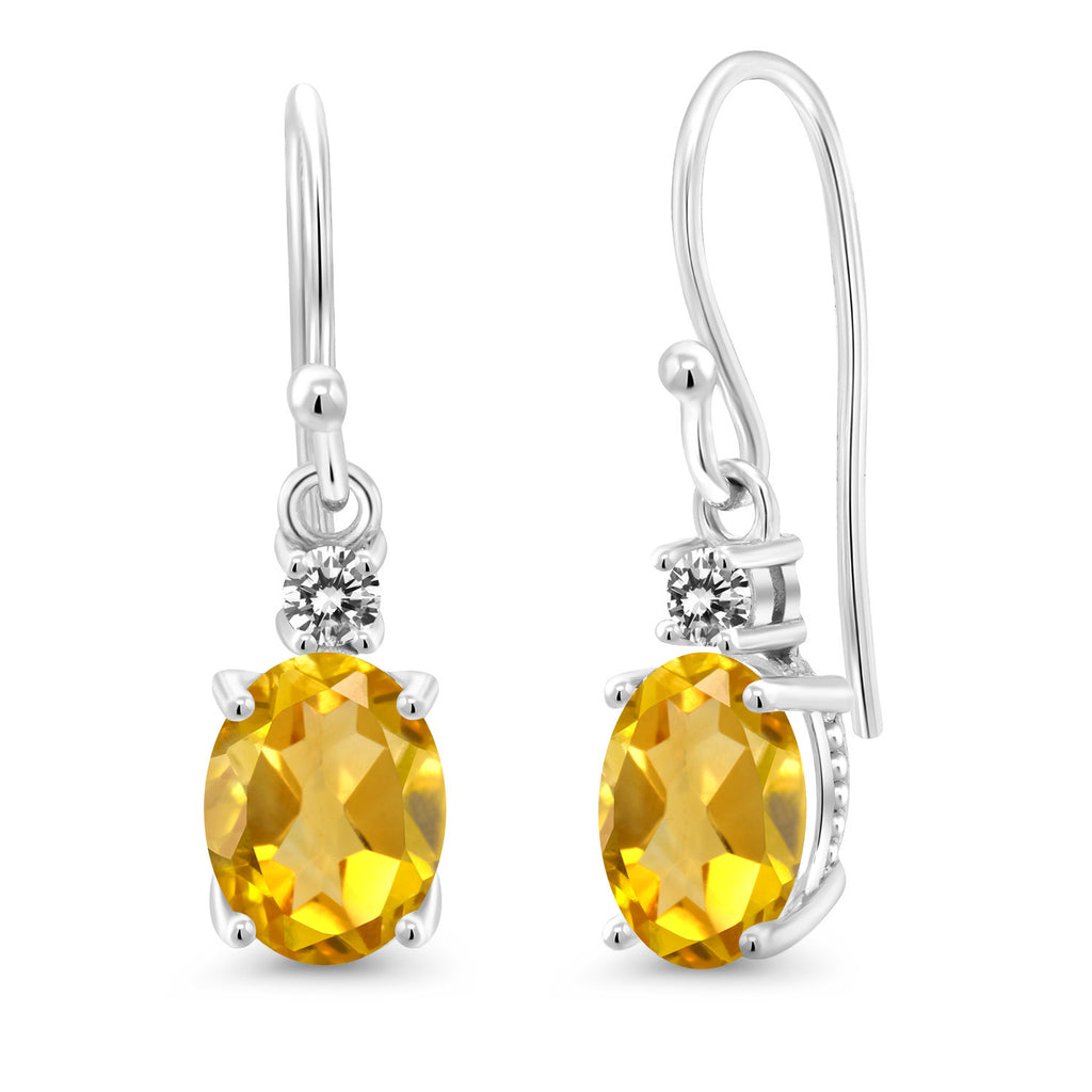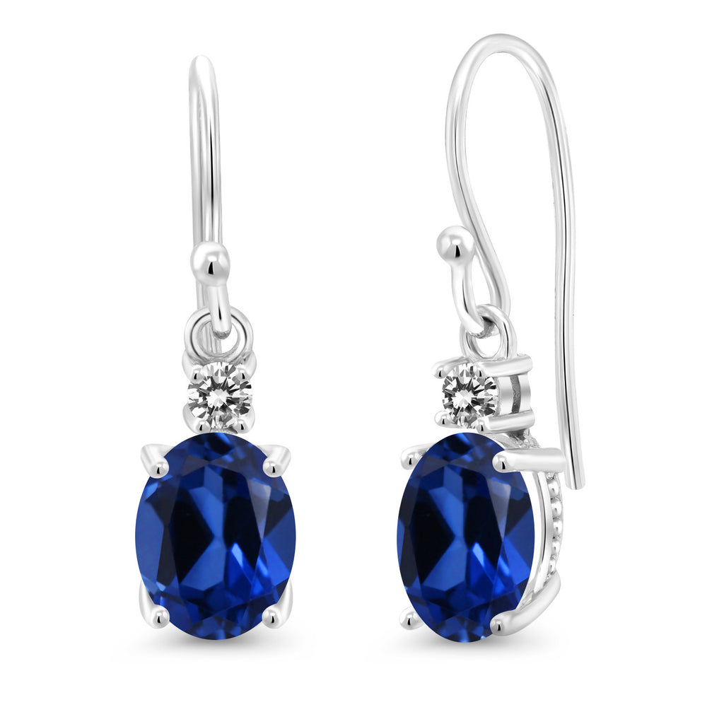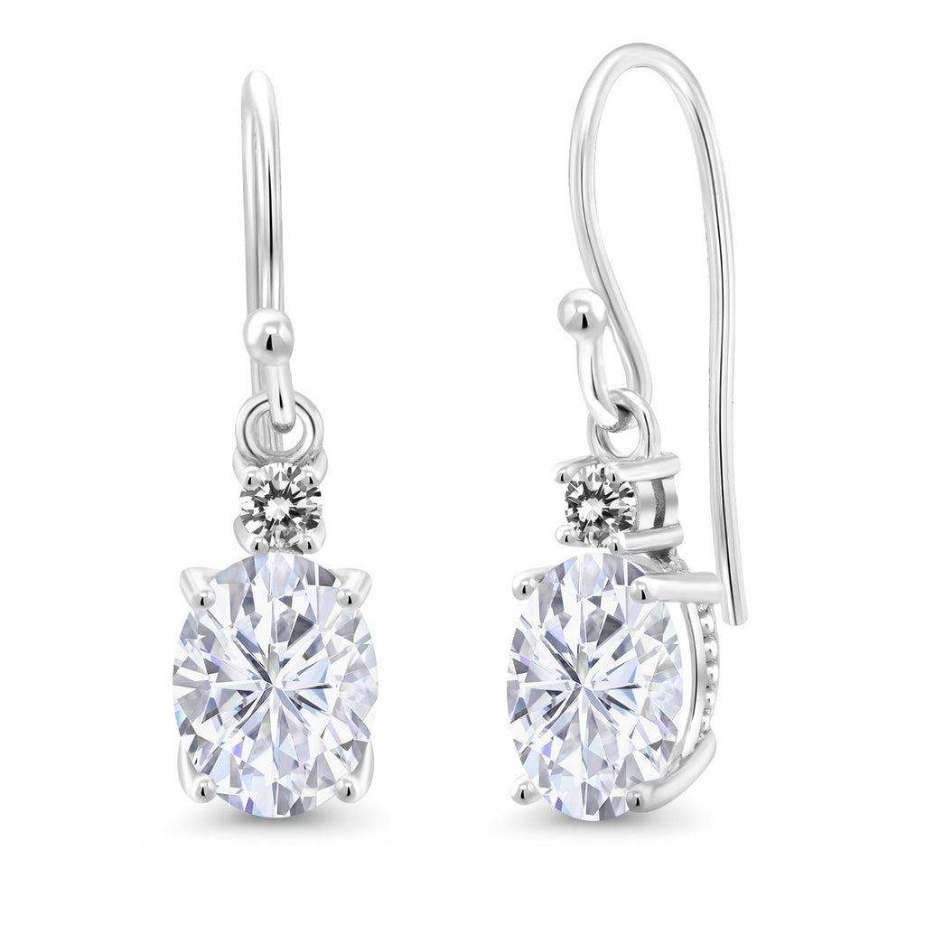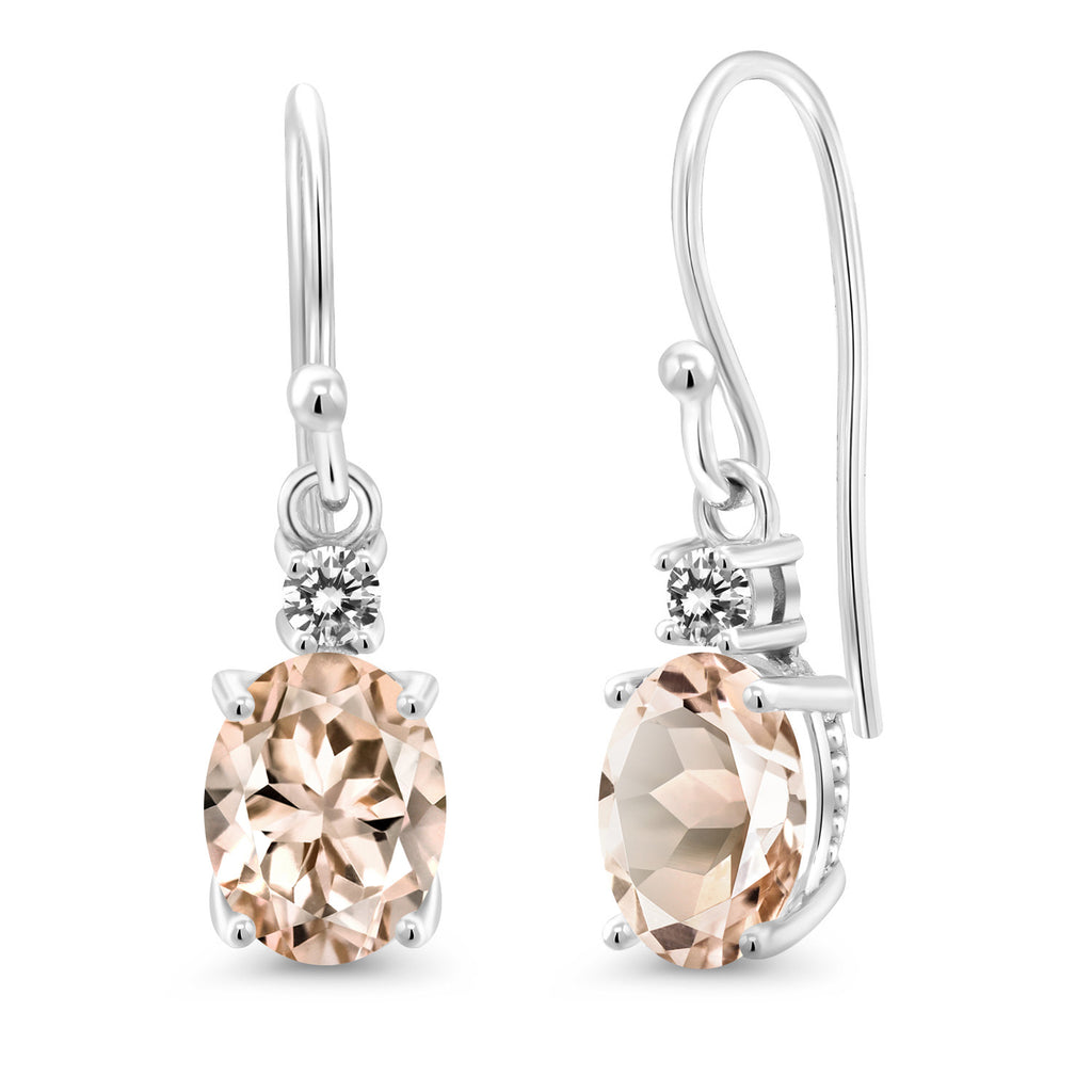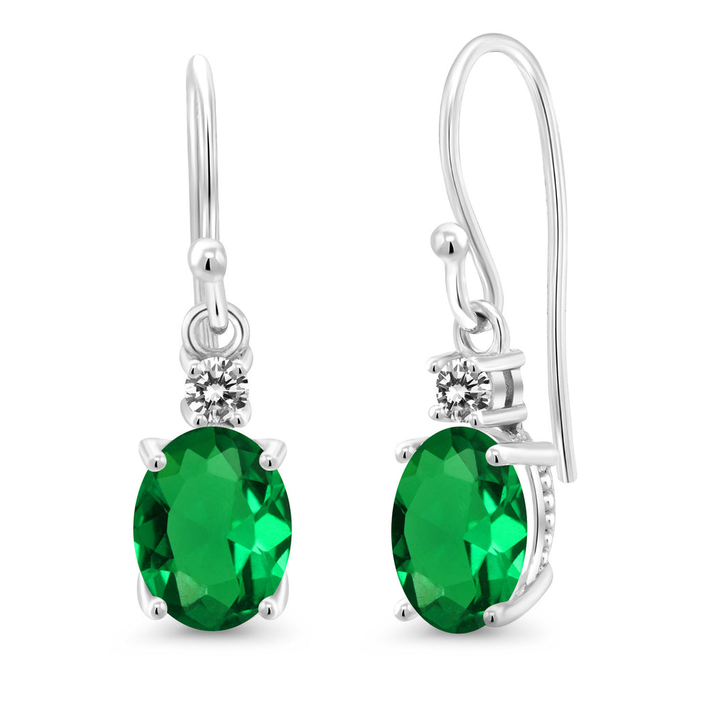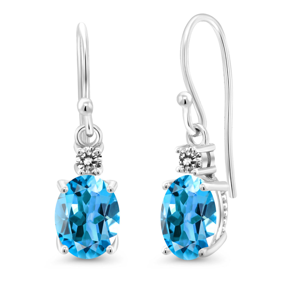 10K White Gold Gemstone Birthstone and White Diamond Dangle Earrings For Women | Oval 8X6MM and Round 2.5MM | Elegant Drop Design with Classic French Wire Hooks | Fine Jewelry Earrings