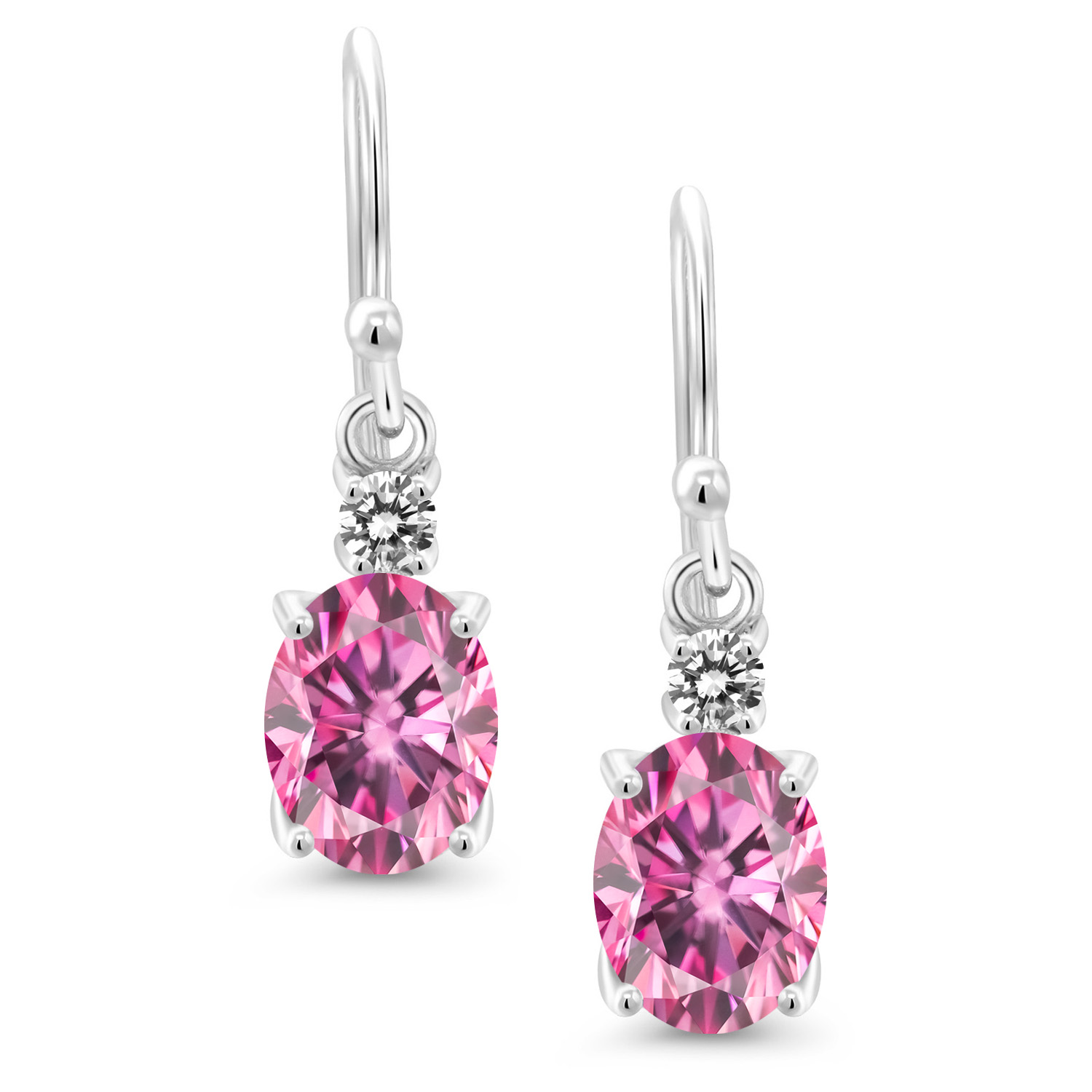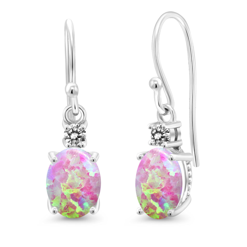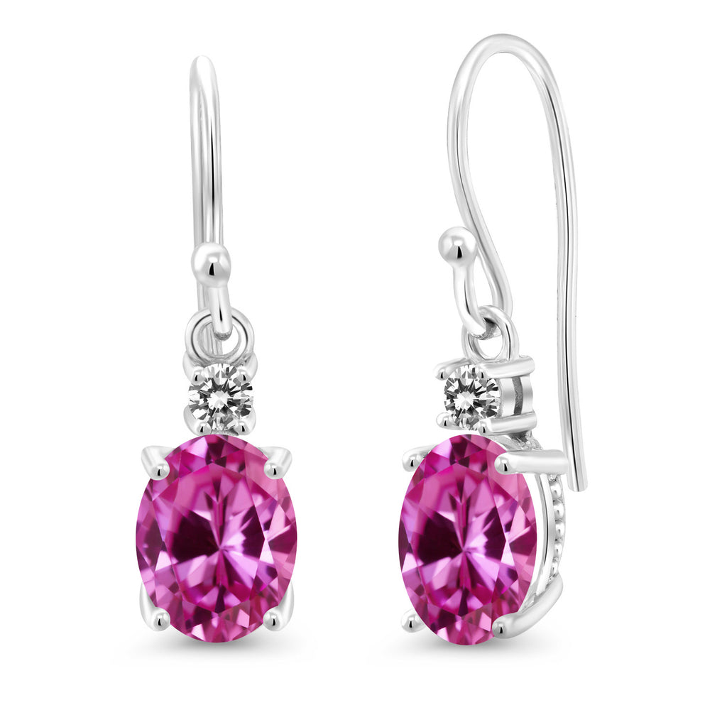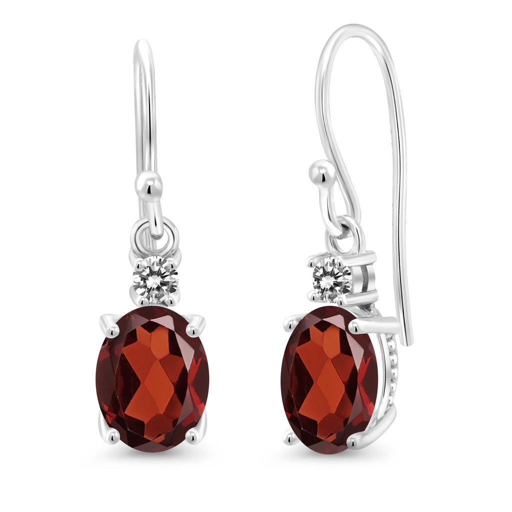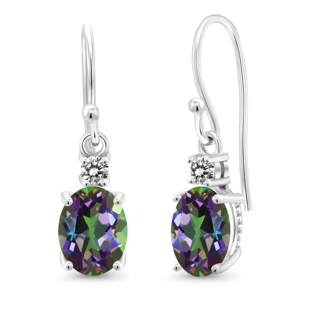 10K White Gold Gemstone Birthstone and White Diamond Dangle Earrings For Women | Oval 8X6MM and Round 2.5MM | Elegant Drop Design with Classic French Wire Hooks | Fine Jewelry Earrings