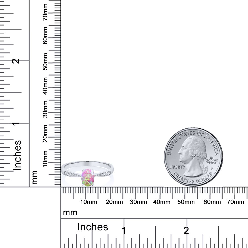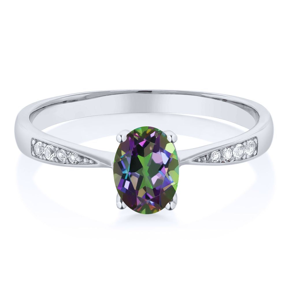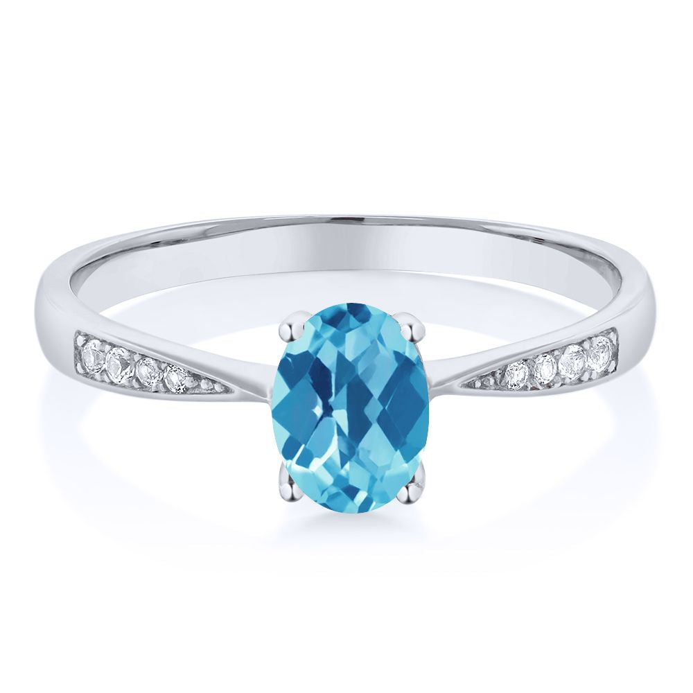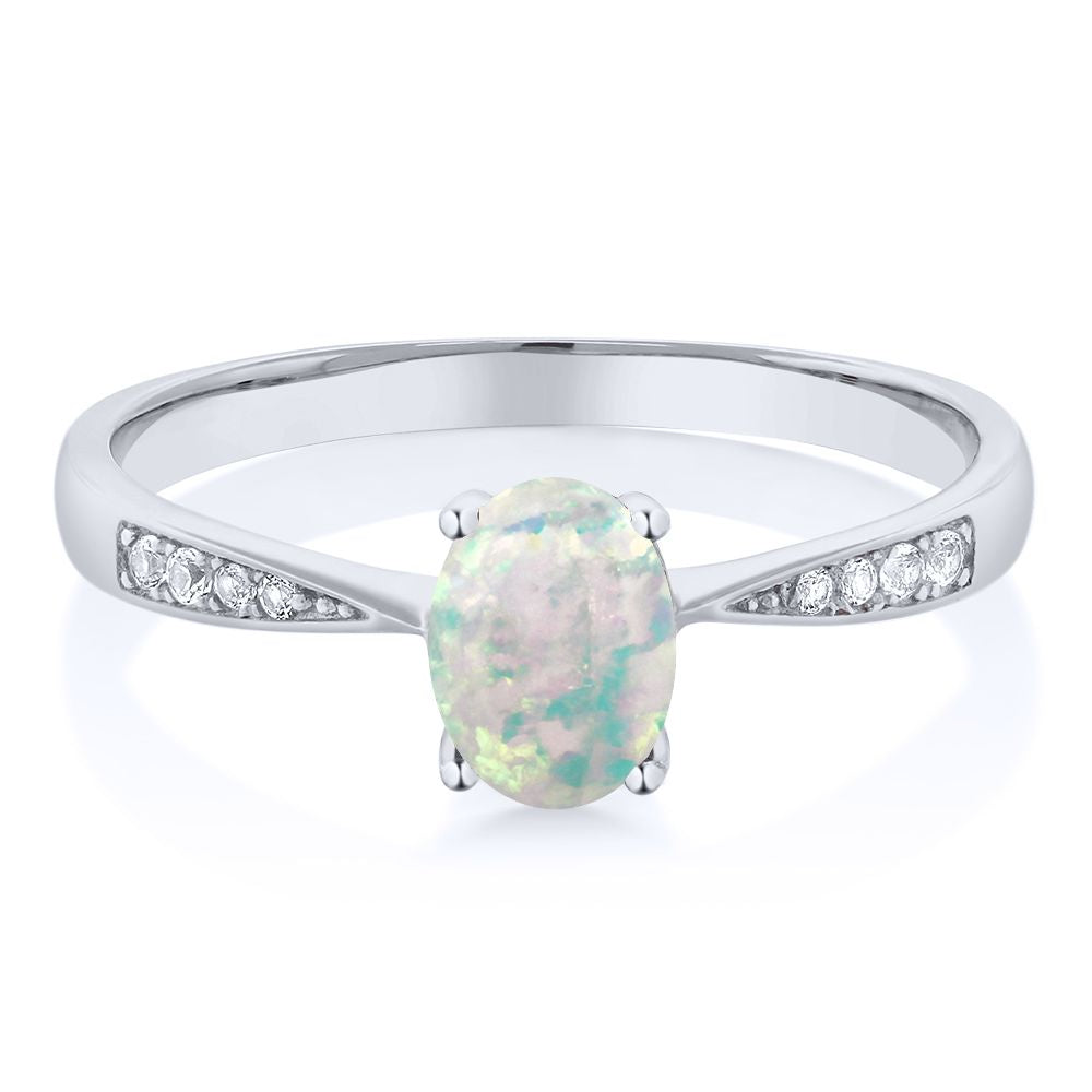 10K White Gold Gemstone Birthstone and White Diamond Engagement Ring For Women | Oval 7X5MM | Wedding Engagement Anniversary Promise Ring | Sizes 5, 6, 7, 8, 9
