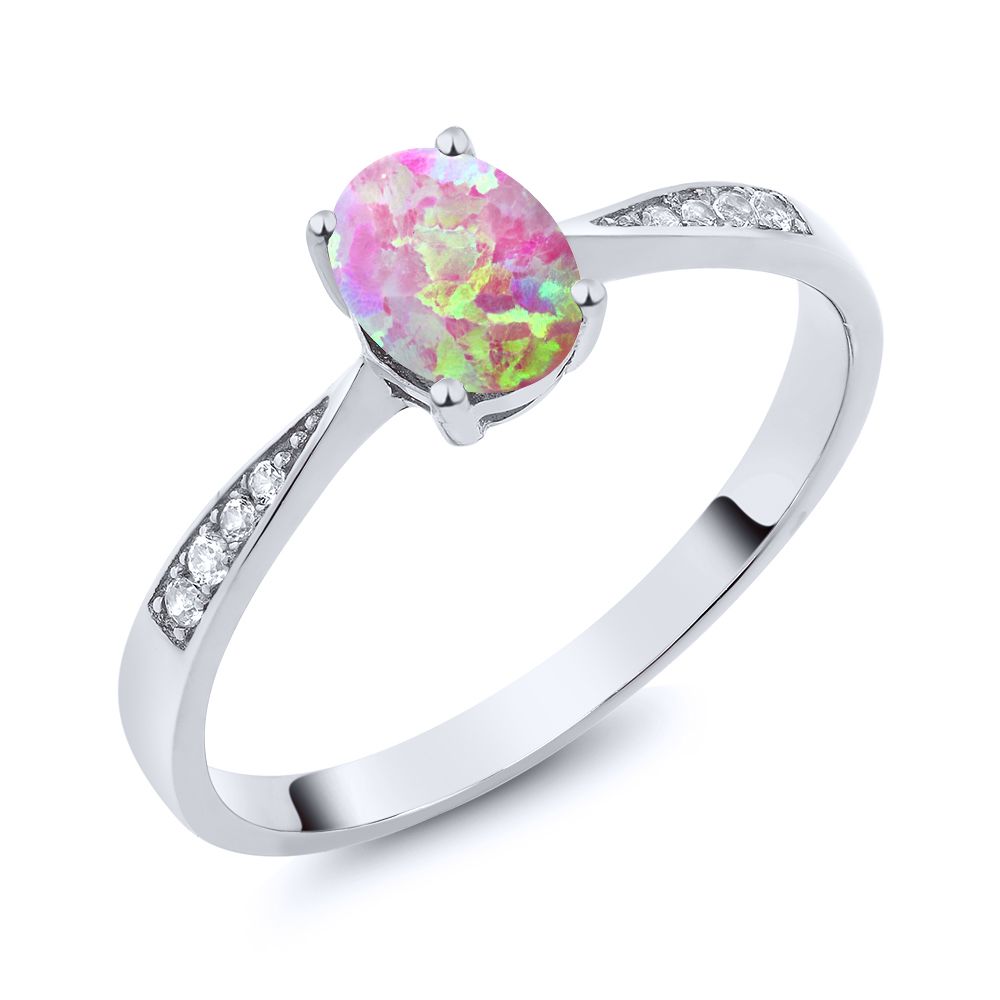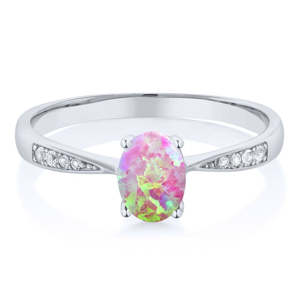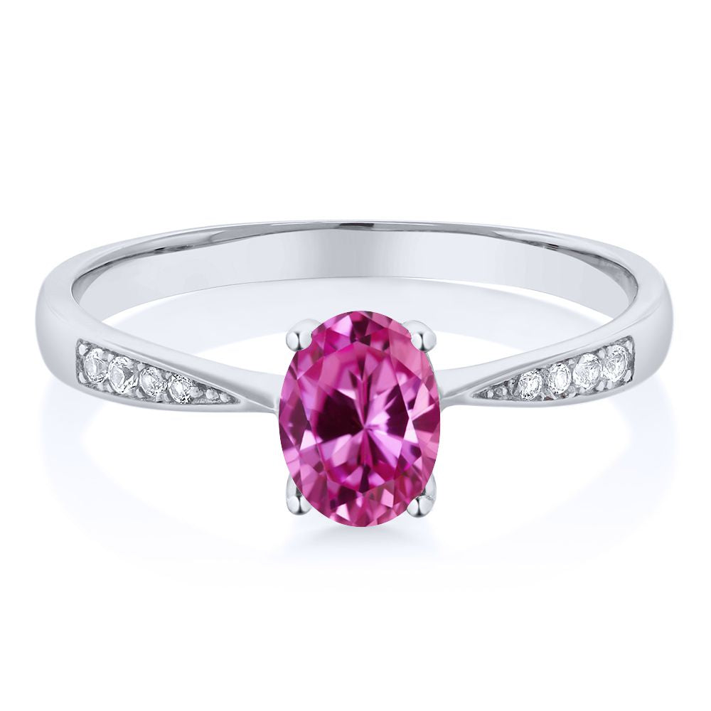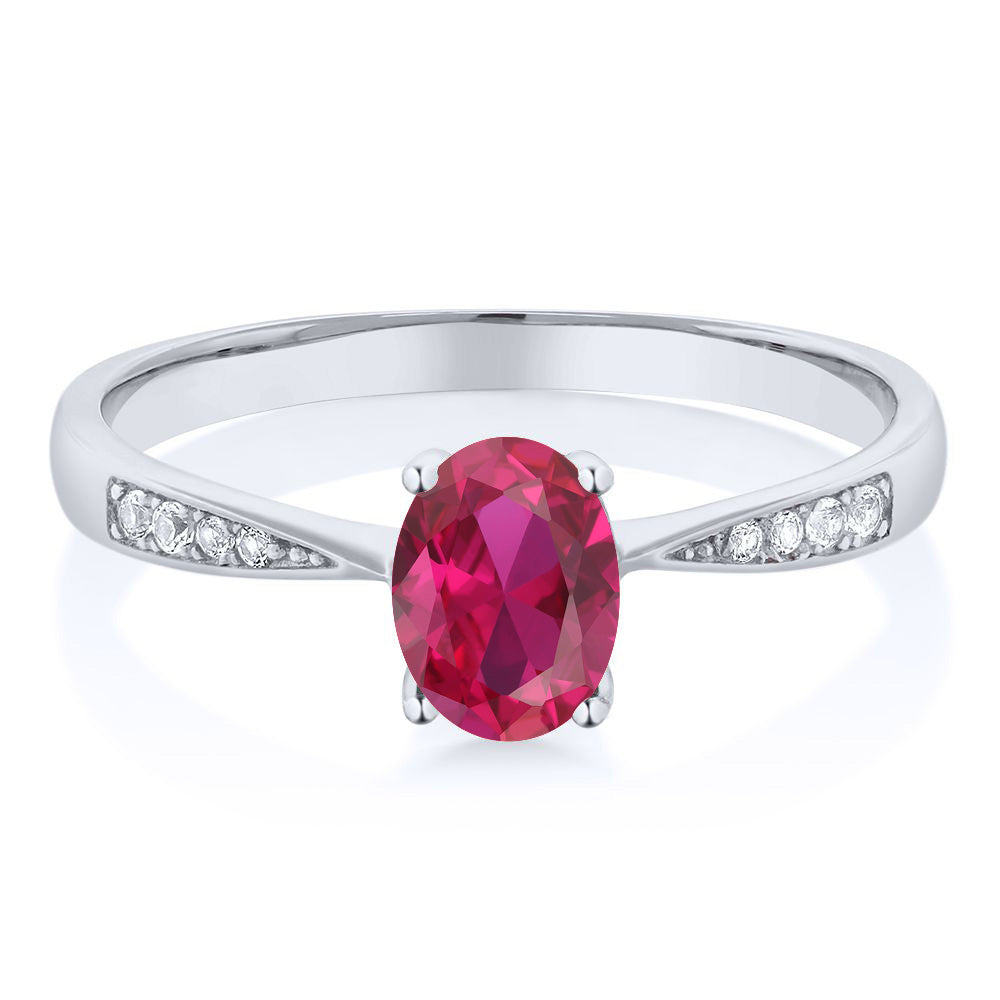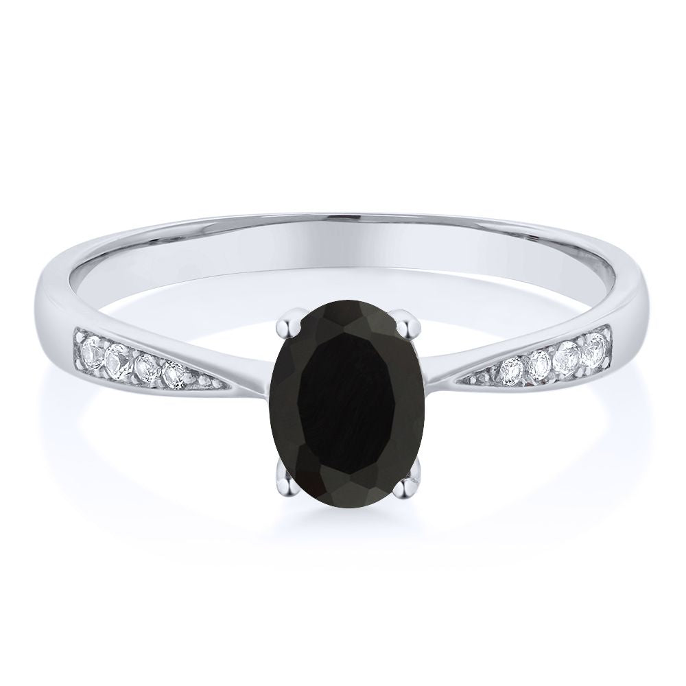 10K White Gold Gemstone Birthstone and White Diamond Engagement Ring For Women | Oval 7X5MM | Wedding Engagement Anniversary Promise Ring | Sizes 5, 6, 7, 8, 9