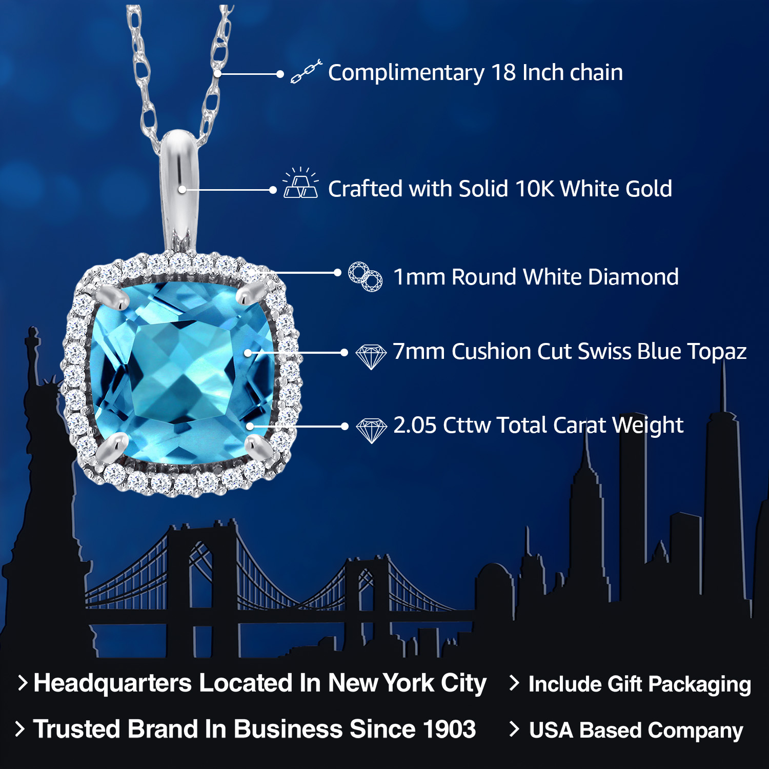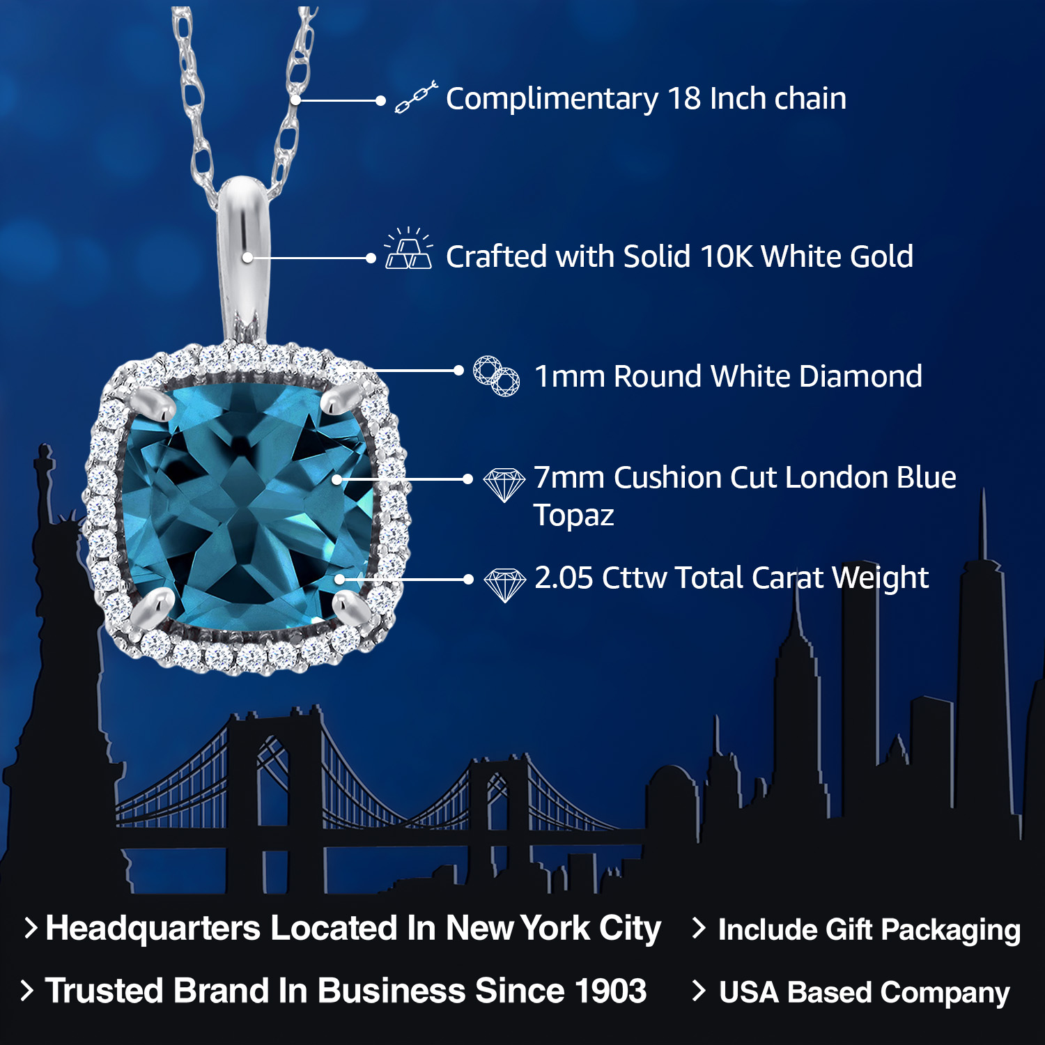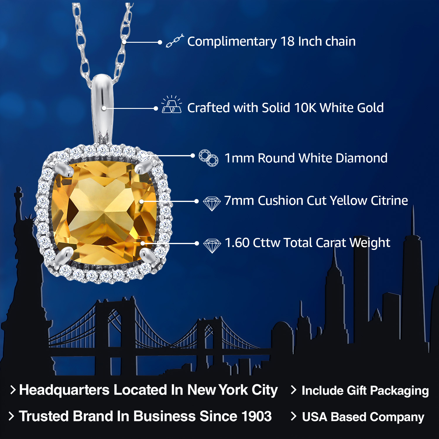 LUXURIOUS WHITE GOLD SETTING: Crafted from luxurious 10K white gold, the setting adds a touch of refinement and glamour to the necklace, making it a timeless accessory that effortlessly complements any attire.