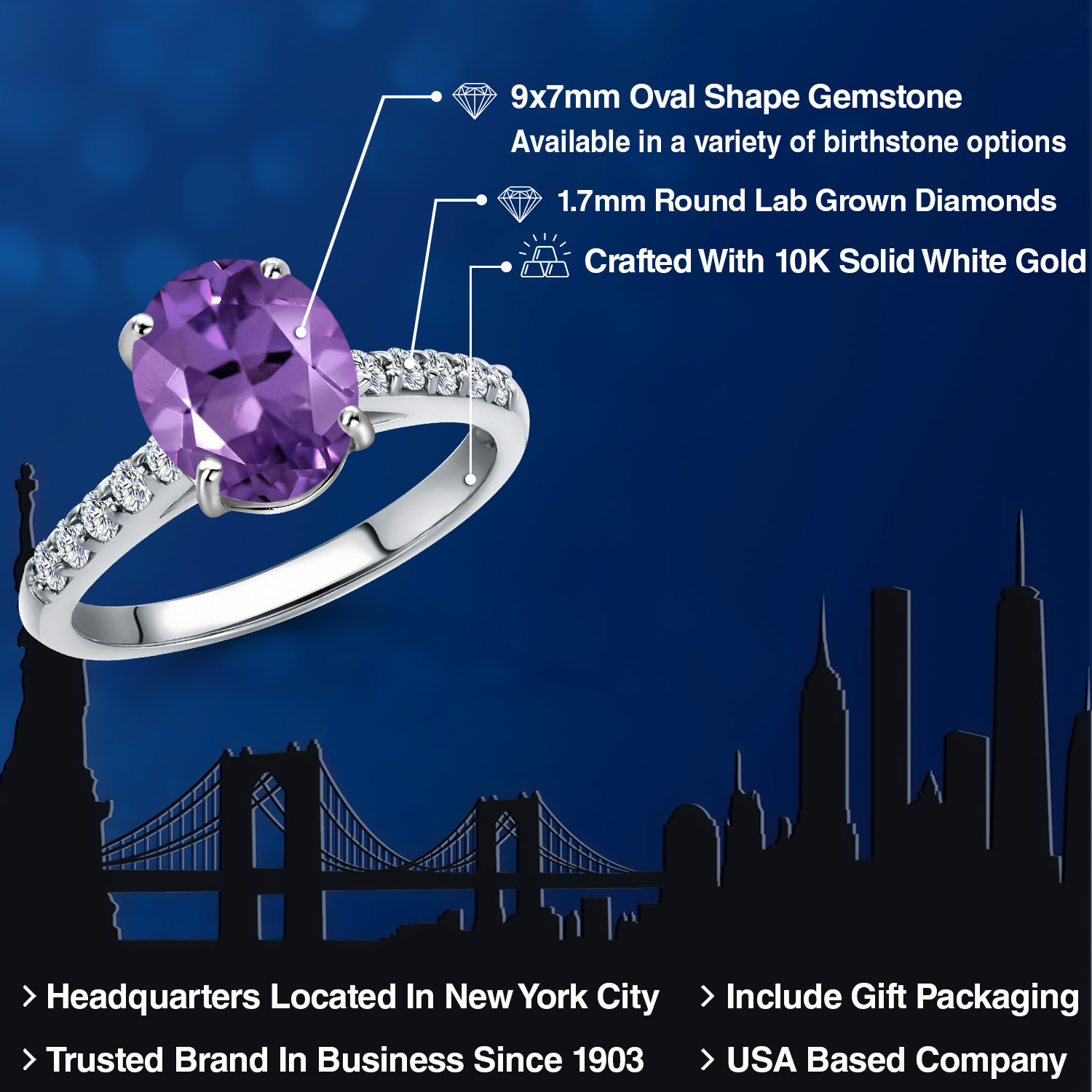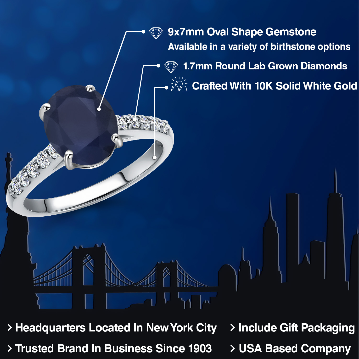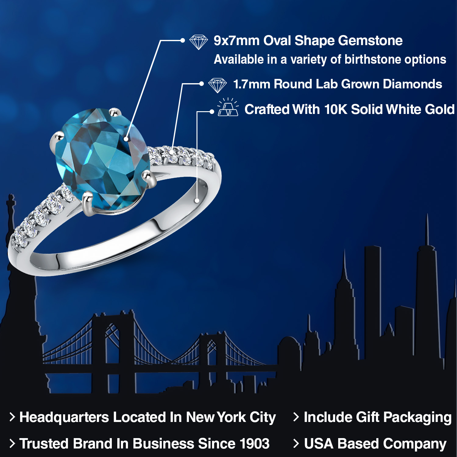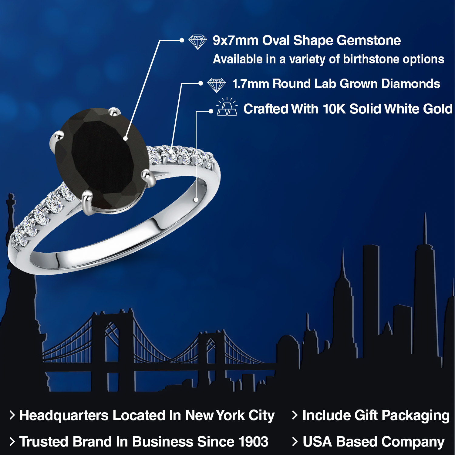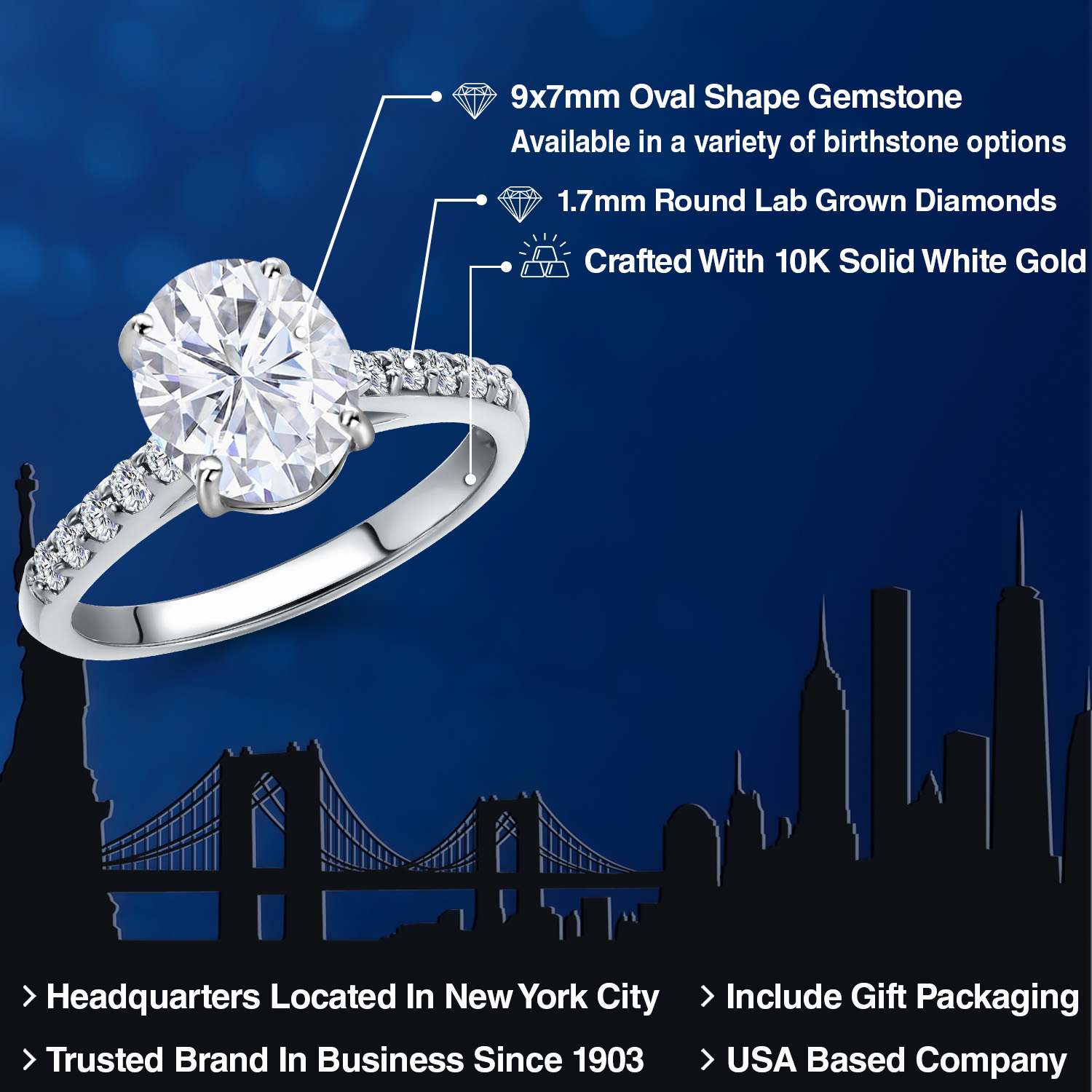 10K White Gold Gemstone Birthstone and White Lab Grown Diamond Accent Engagement Ring For Women | Oval 9X7MM and Round 1.7MM | Wedding Anniversary Promise Ring | Sizes 5, 6, 7, 8, 9