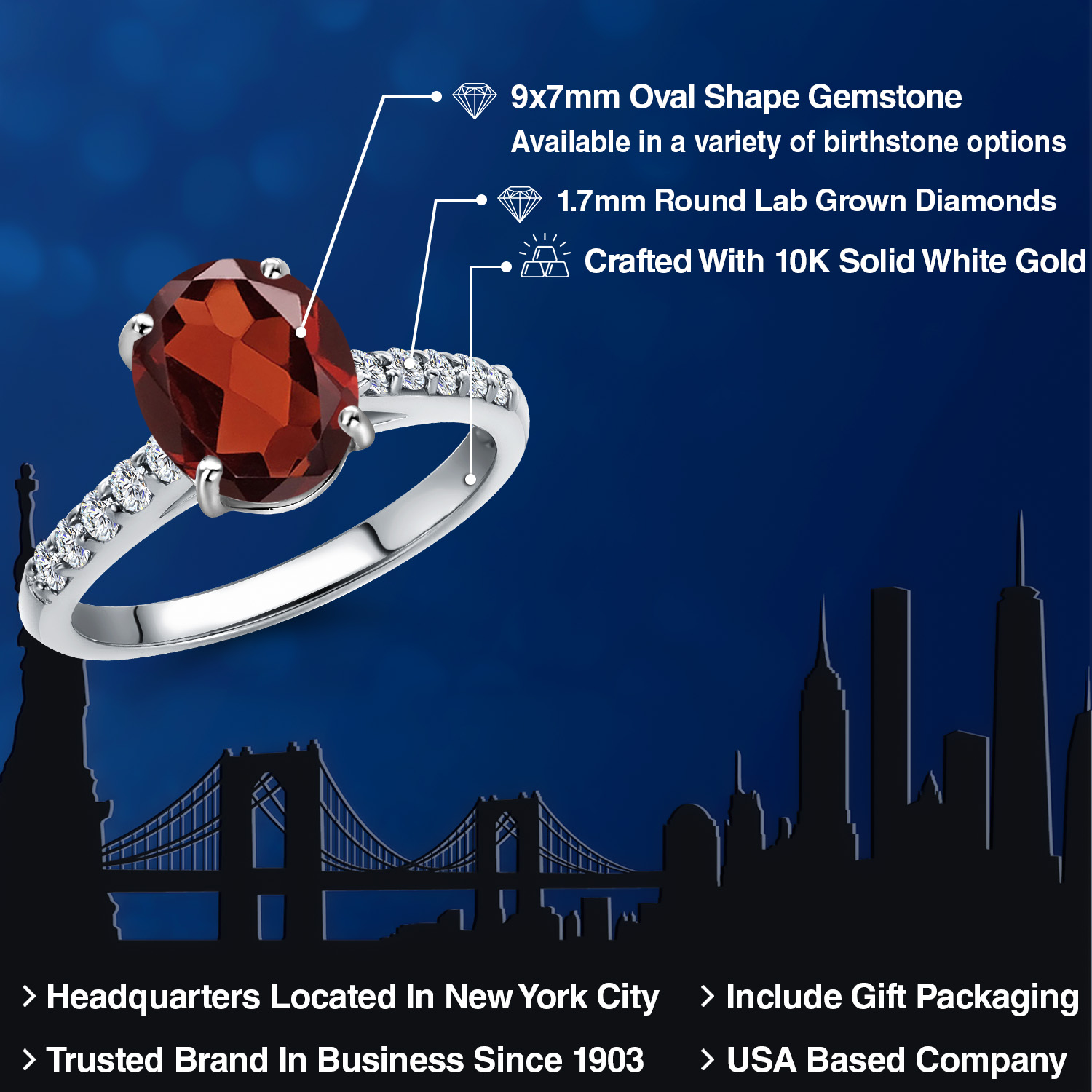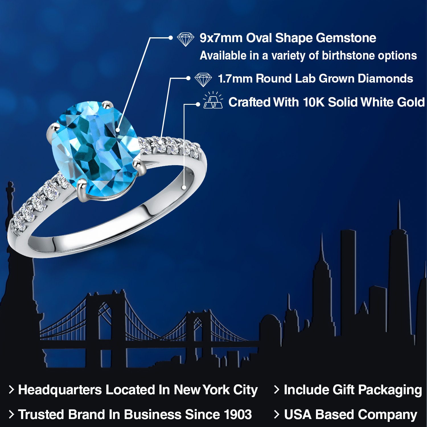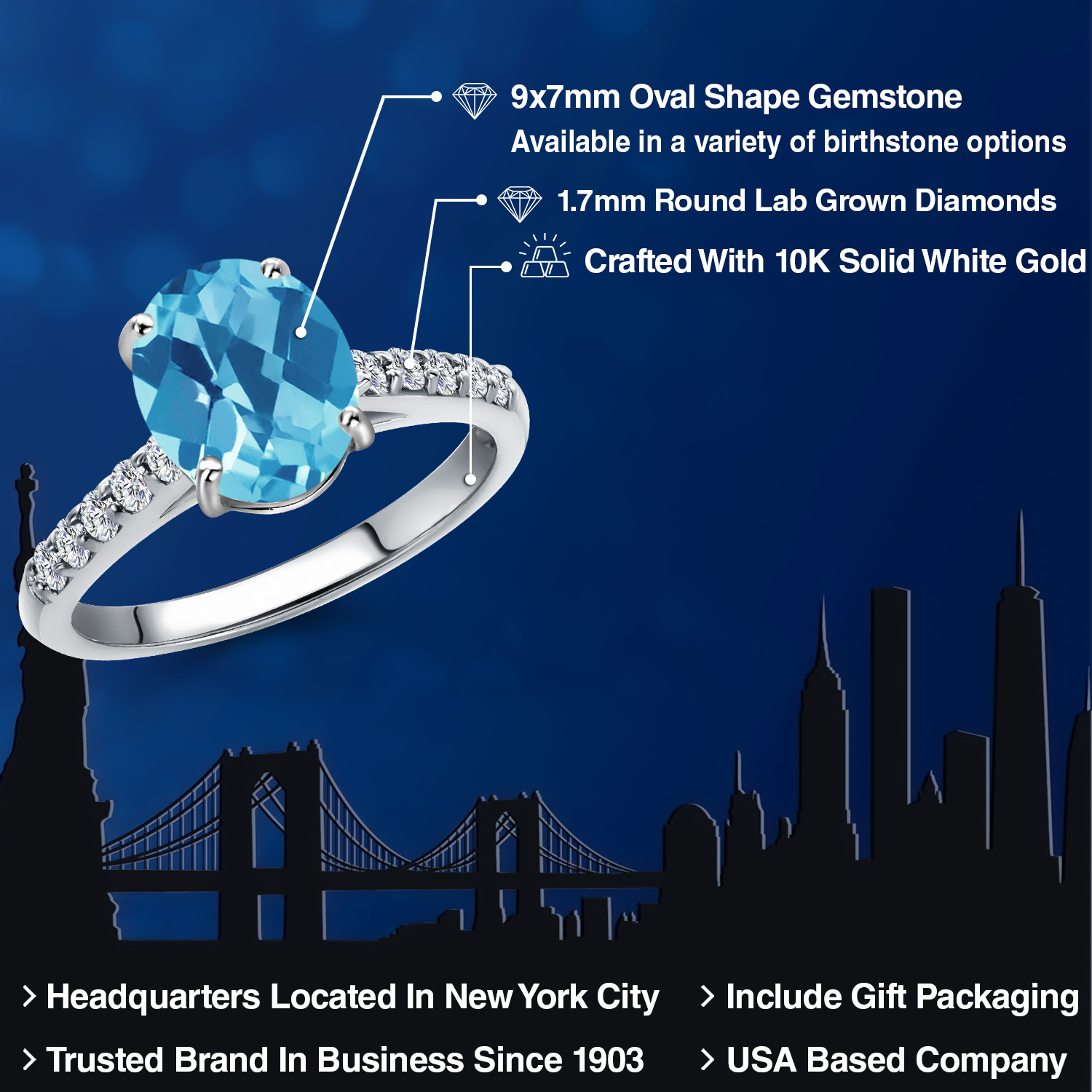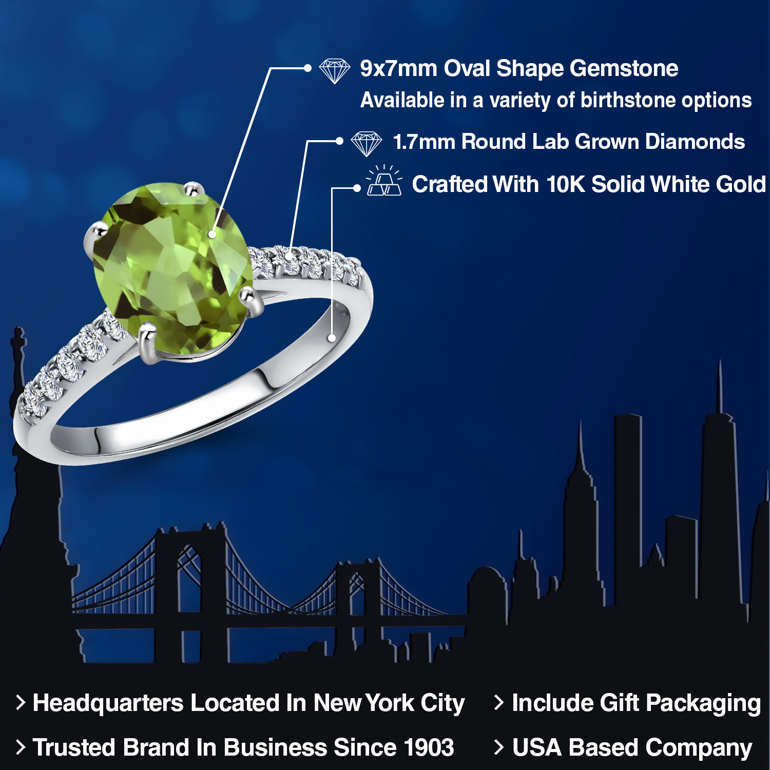 10K White Gold Gemstone Birthstone and White Lab Grown Diamond Accent Engagement Ring For Women | Oval 9X7MM and Round 1.7MM | Wedding Anniversary Promise Ring | Sizes 5, 6, 7, 8, 9