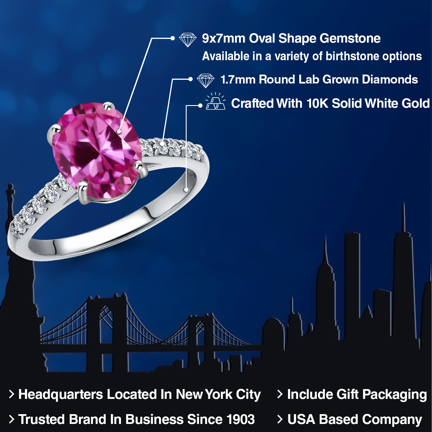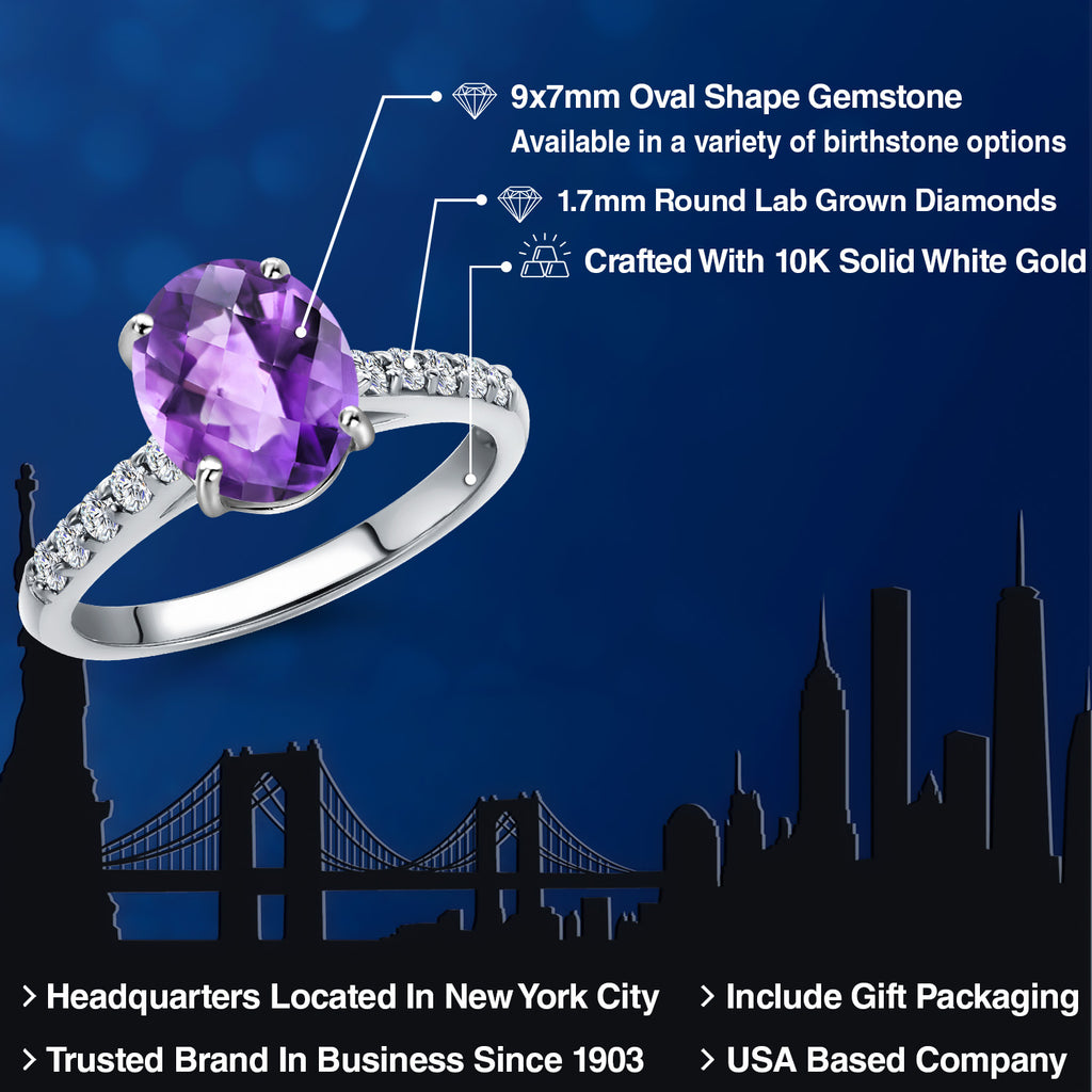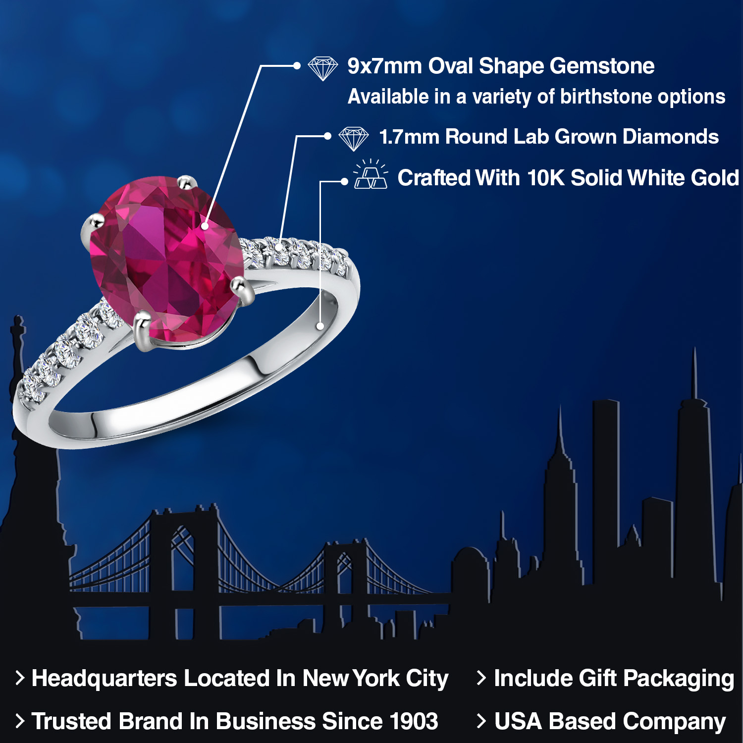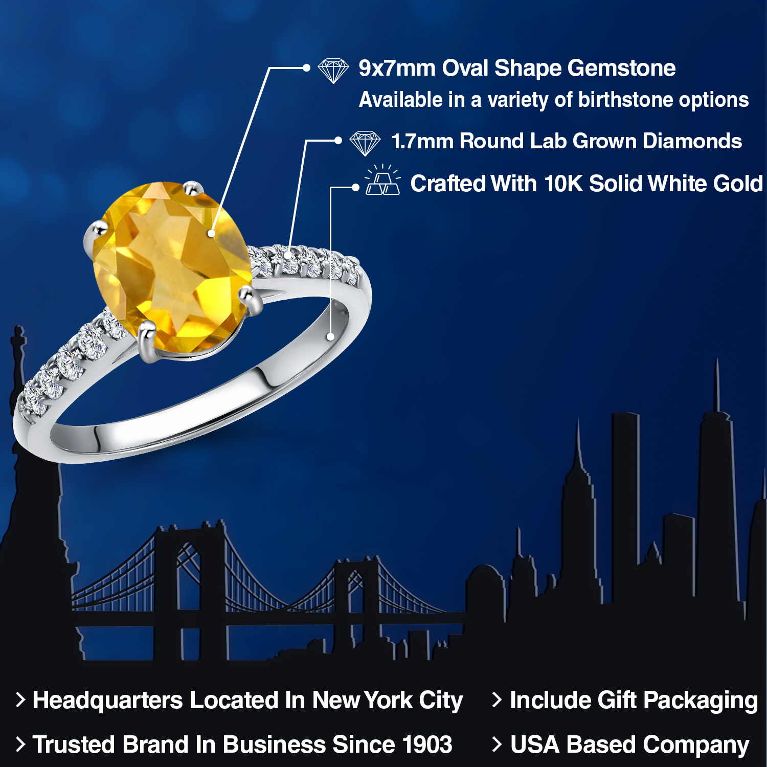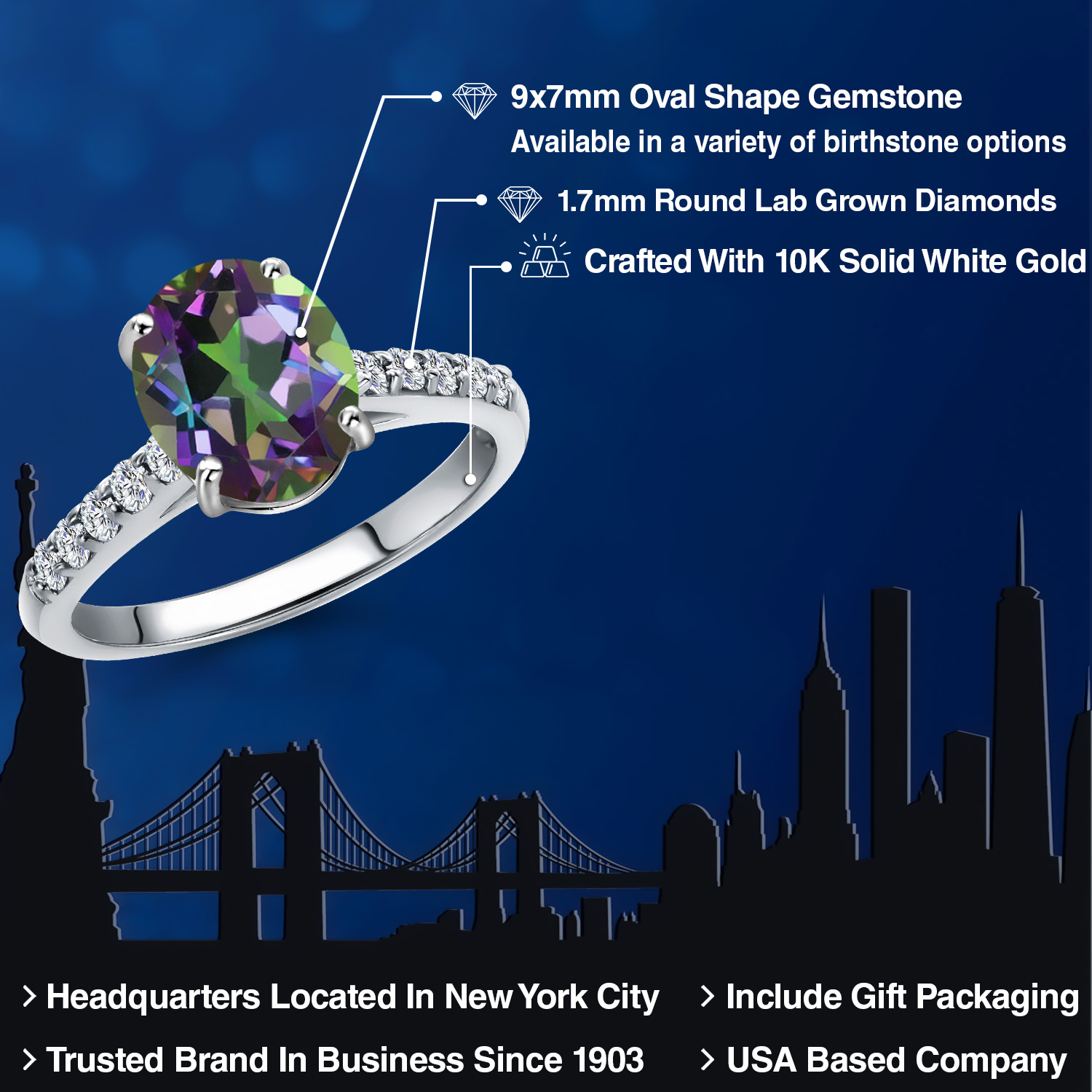 10K White Gold Gemstone Birthstone and White Lab Grown Diamond Accent Engagement Ring For Women | Oval 9X7MM and Round 1.7MM | Wedding Anniversary Promise Ring | Sizes 5, 6, 7, 8, 9