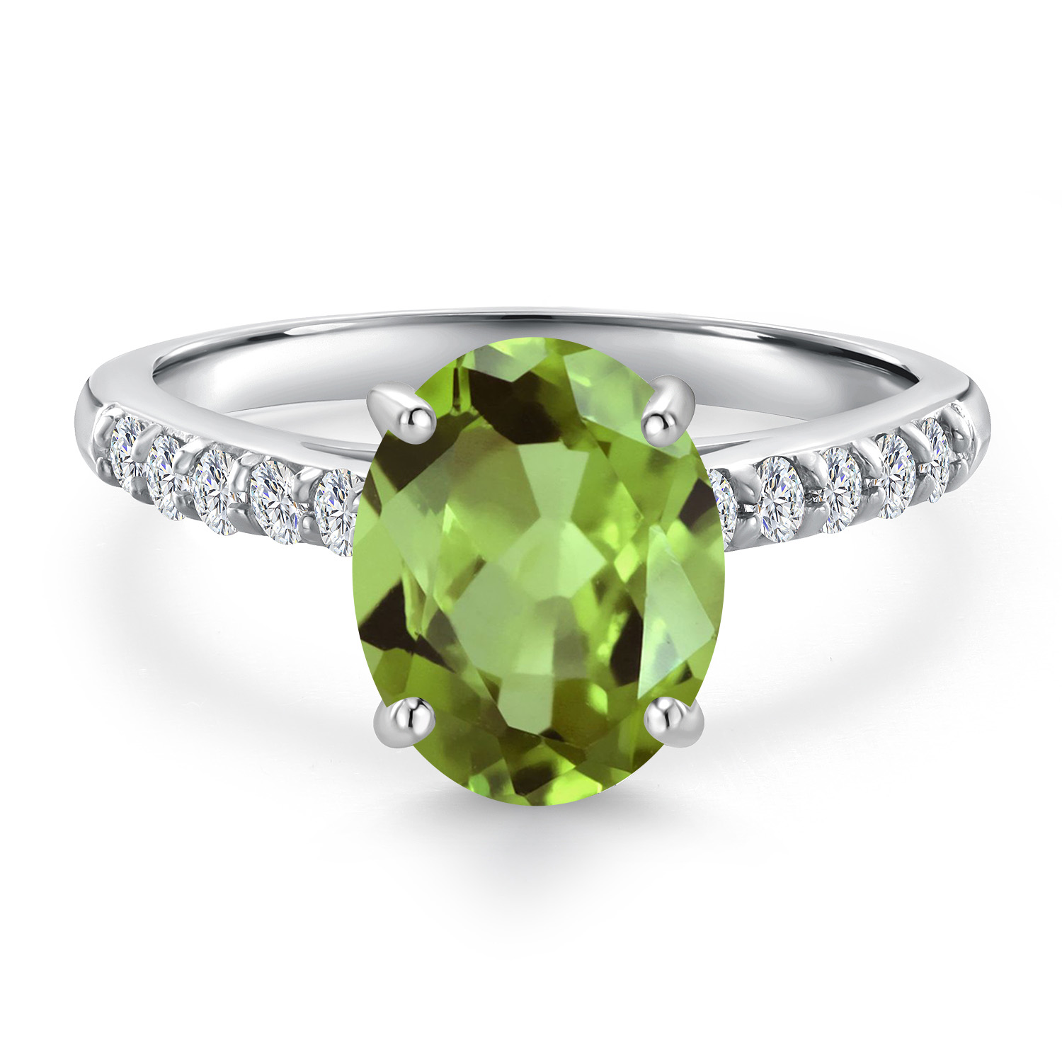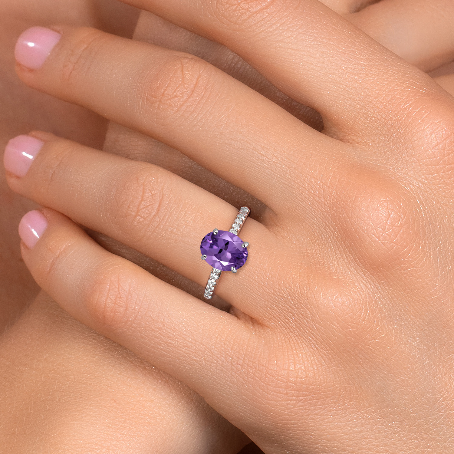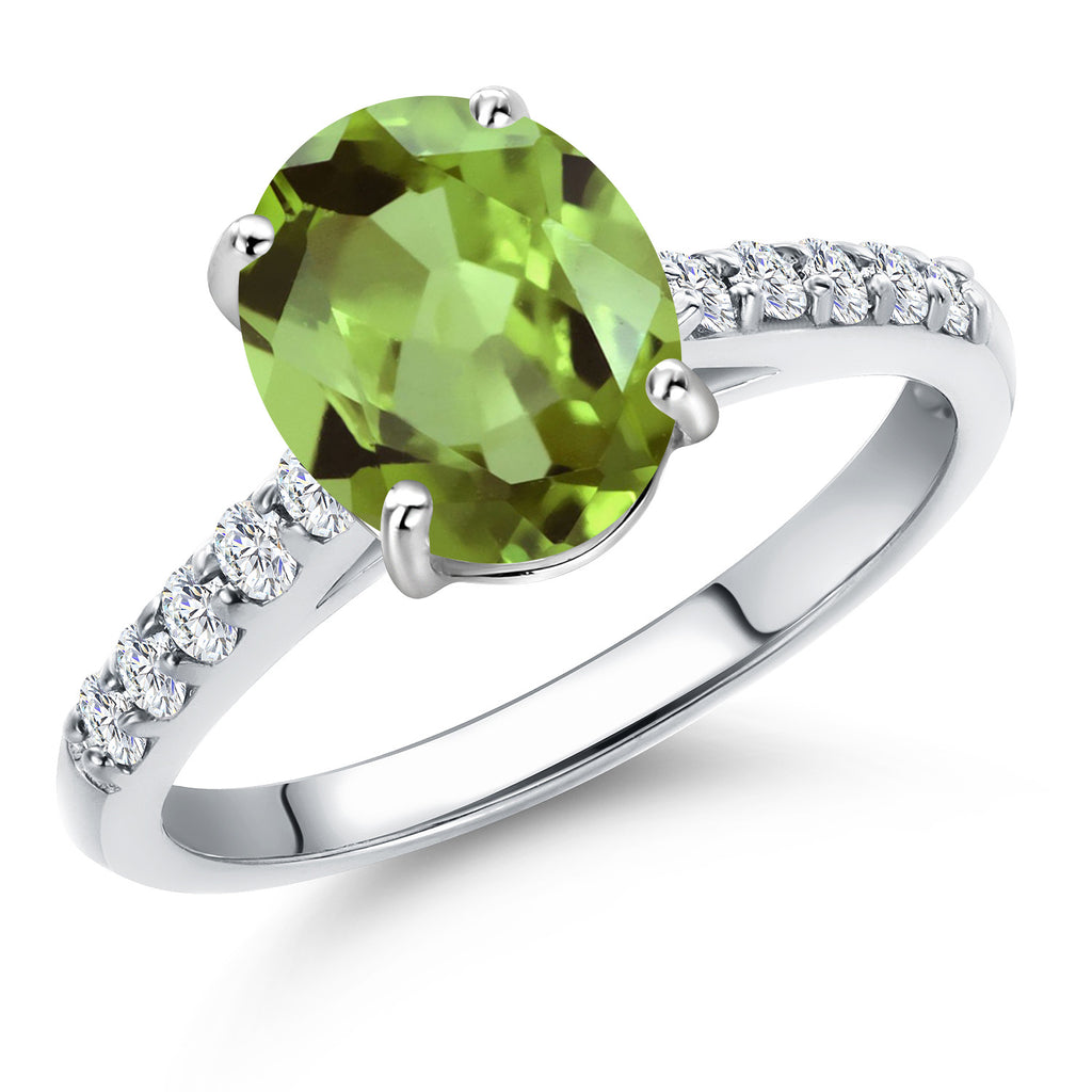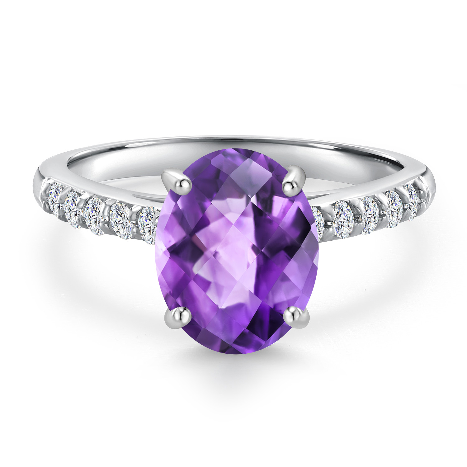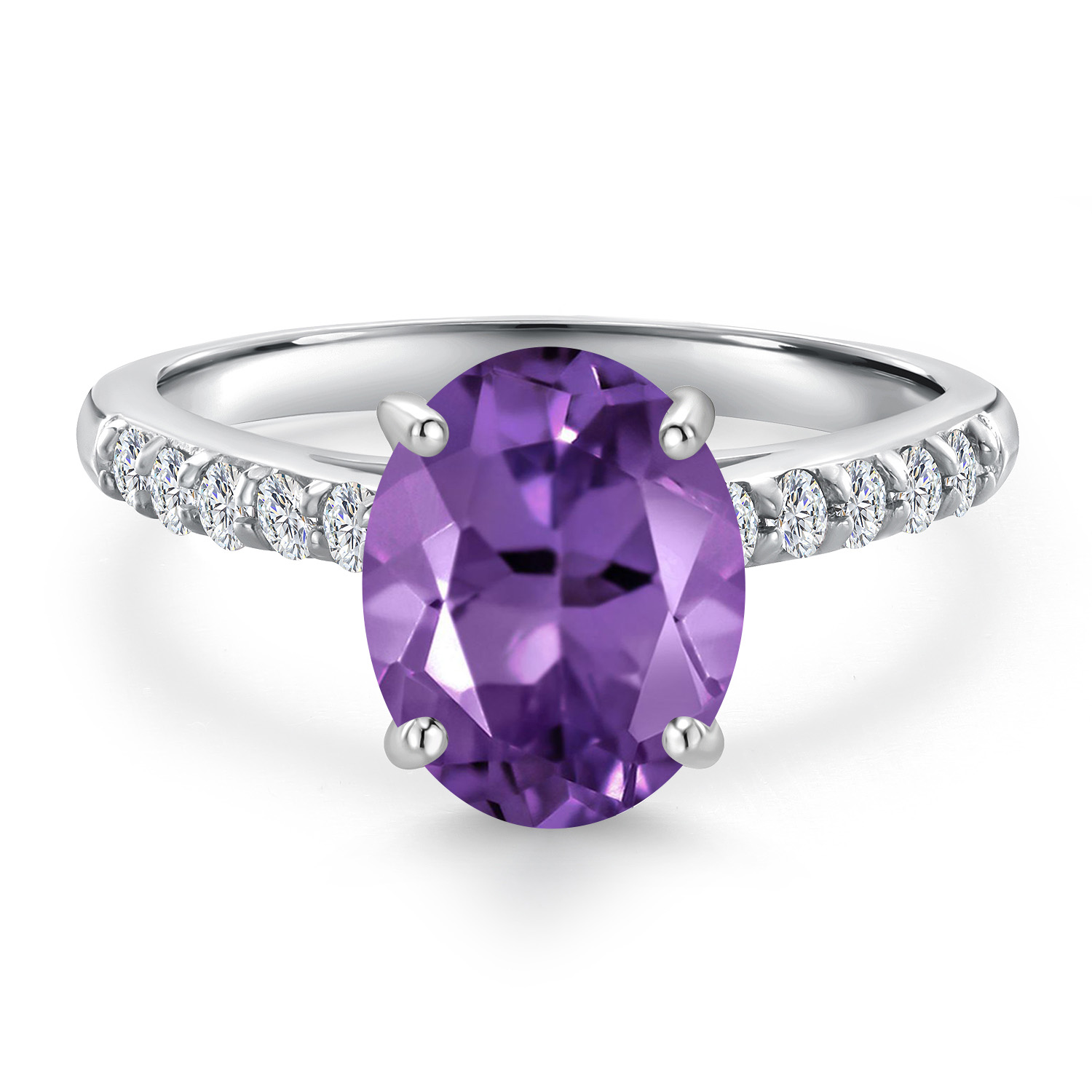 10K White Gold Gemstone Birthstone and White Lab Grown Diamond Accent Engagement Ring For Women | Oval 9X7MM and Round 1.7MM | Wedding Anniversary Promise Ring | Sizes 5, 6, 7, 8, 9