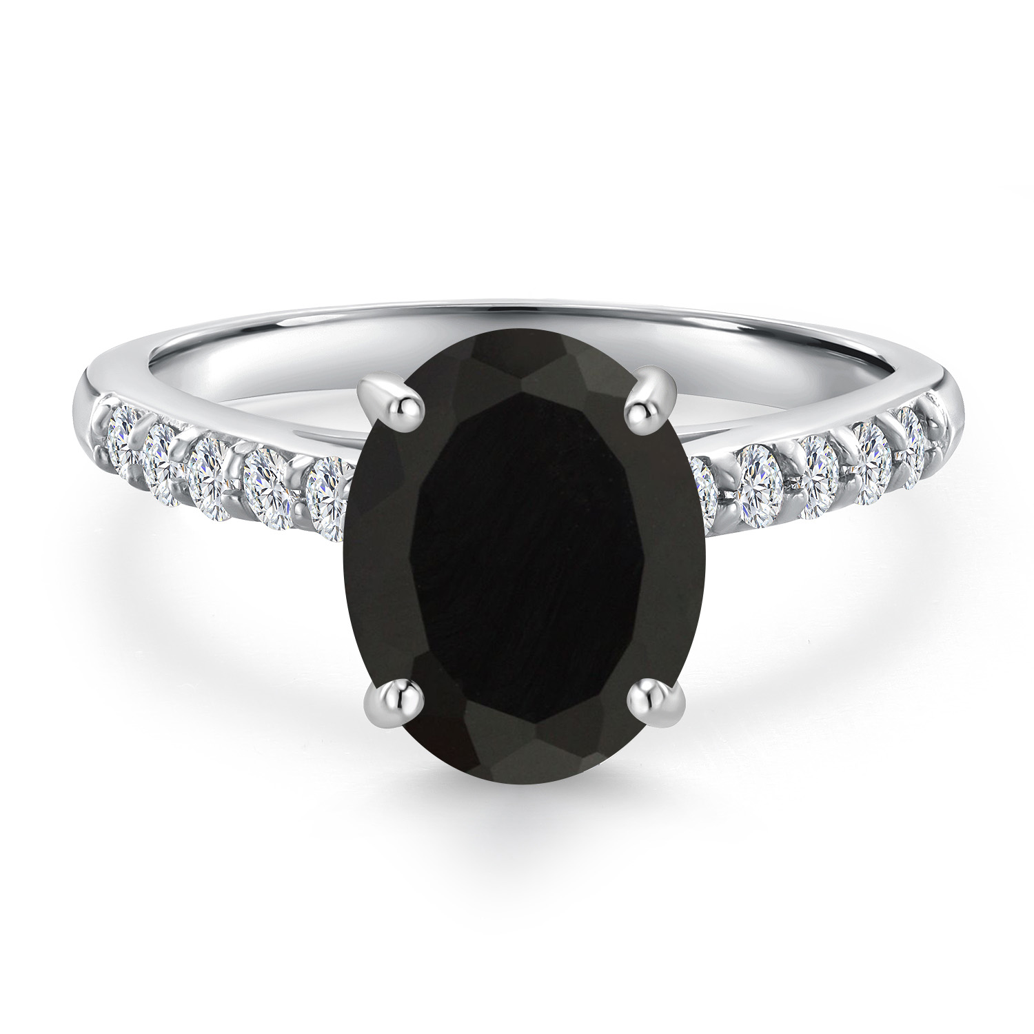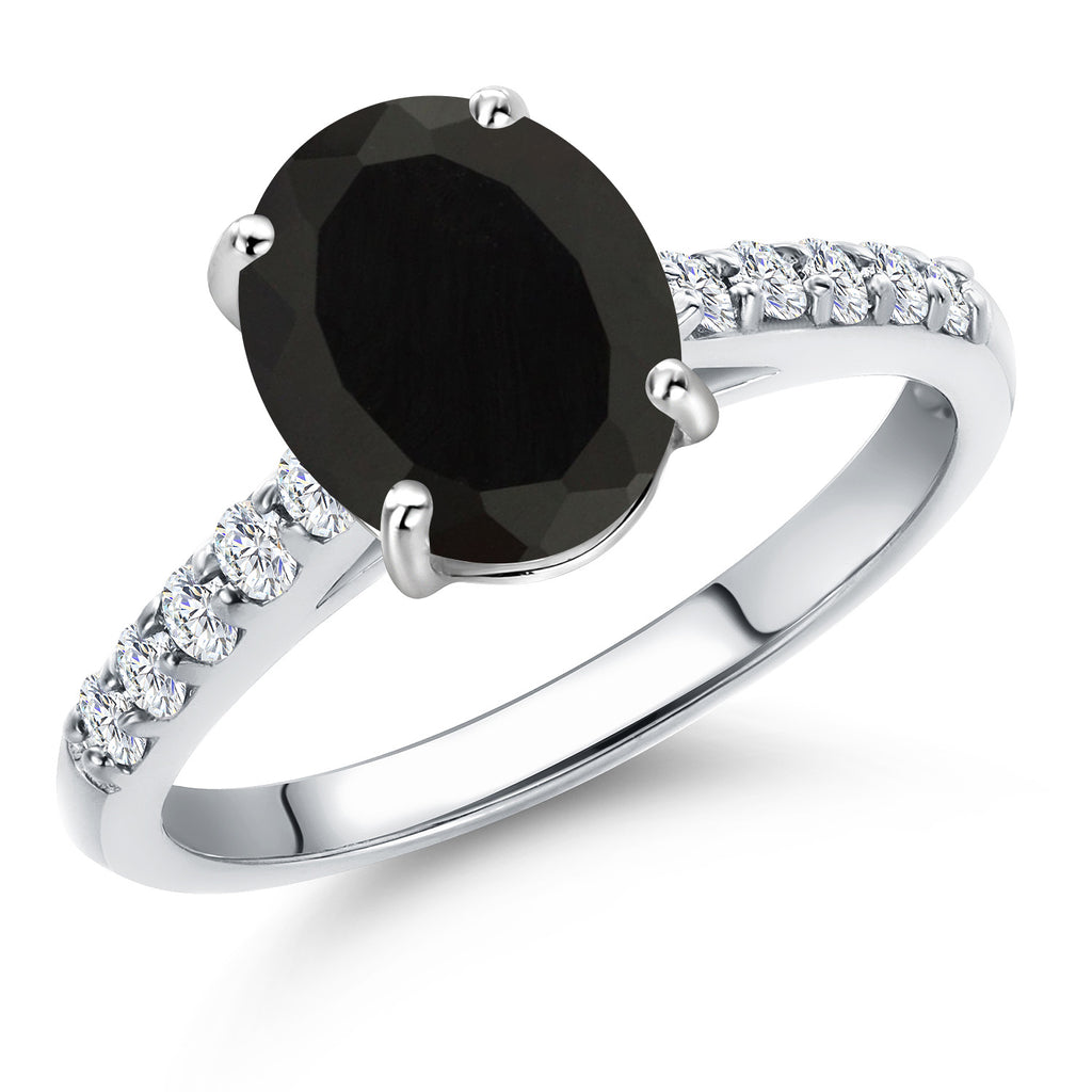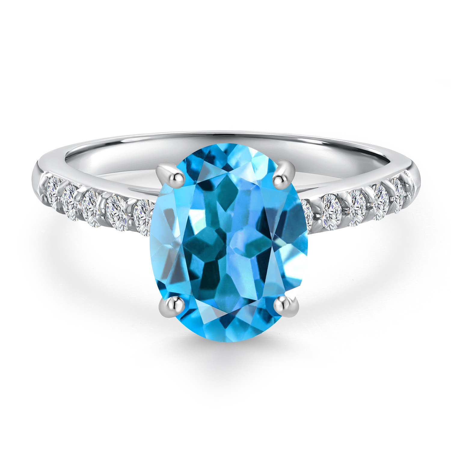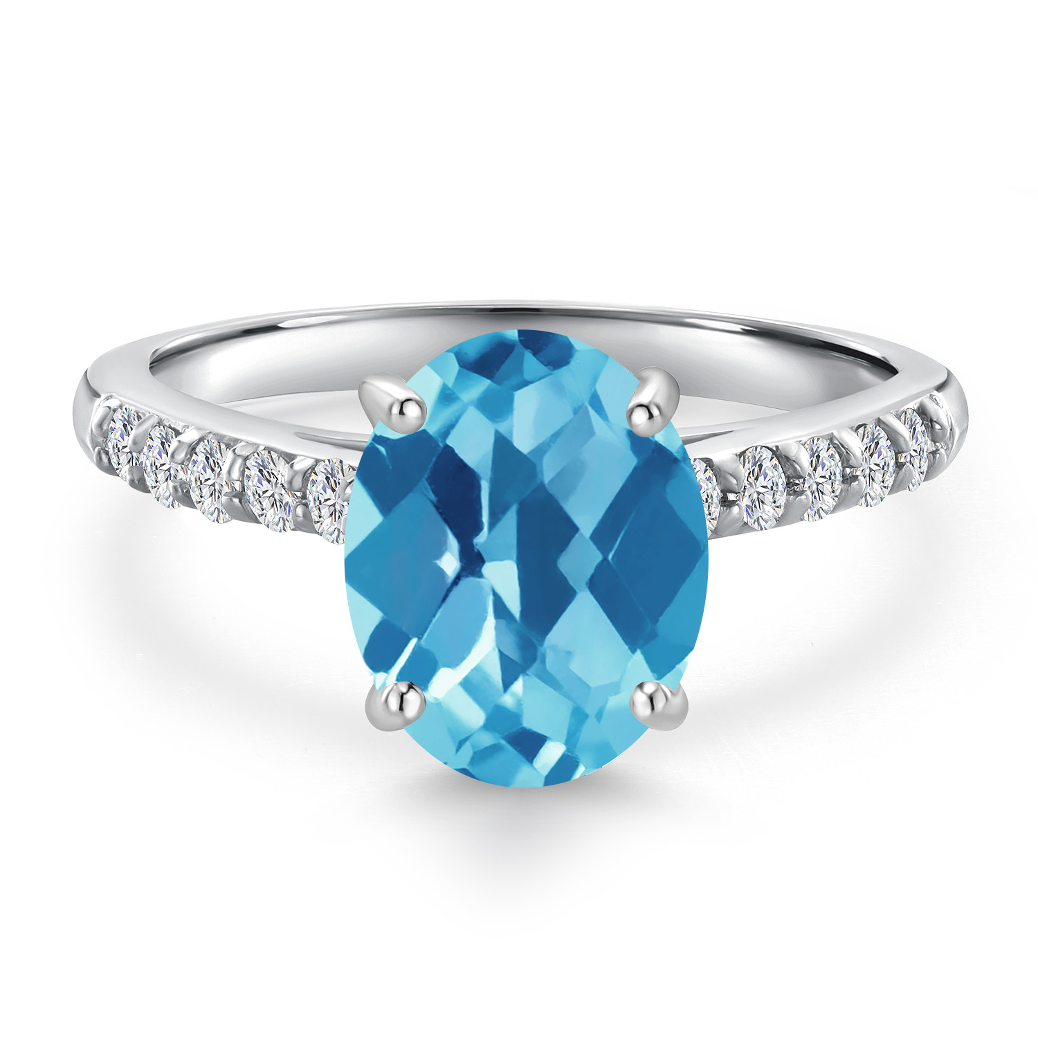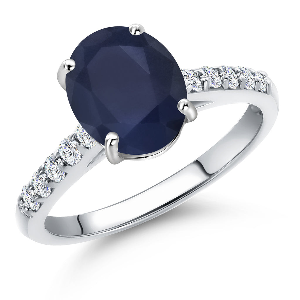 10K White Gold Gemstone Birthstone and White Lab Grown Diamond Accent Engagement Ring For Women | Oval 9X7MM and Round 1.7MM | Wedding Anniversary Promise Ring | Sizes 5, 6, 7, 8, 9
