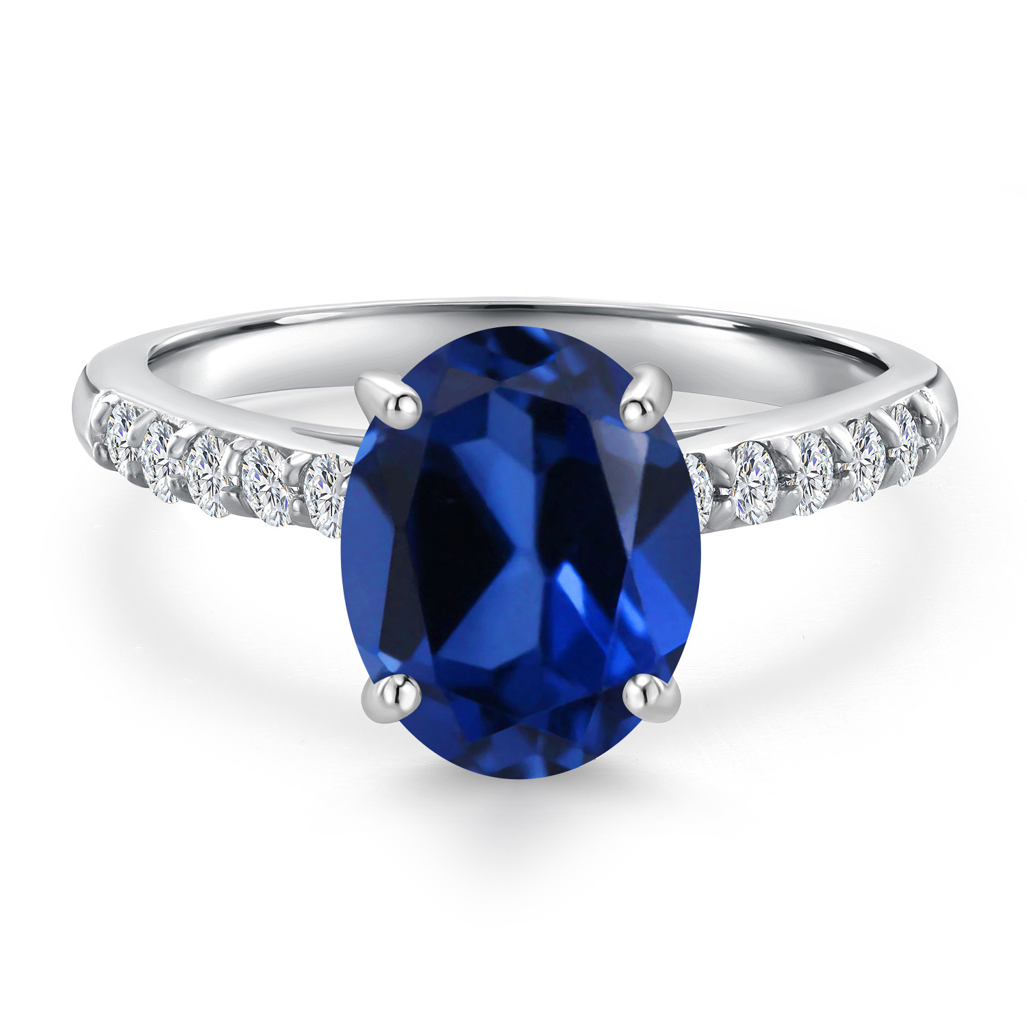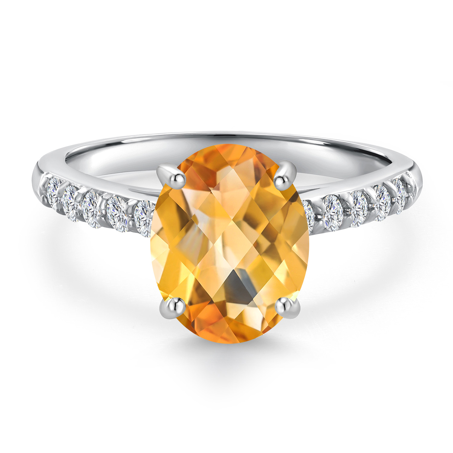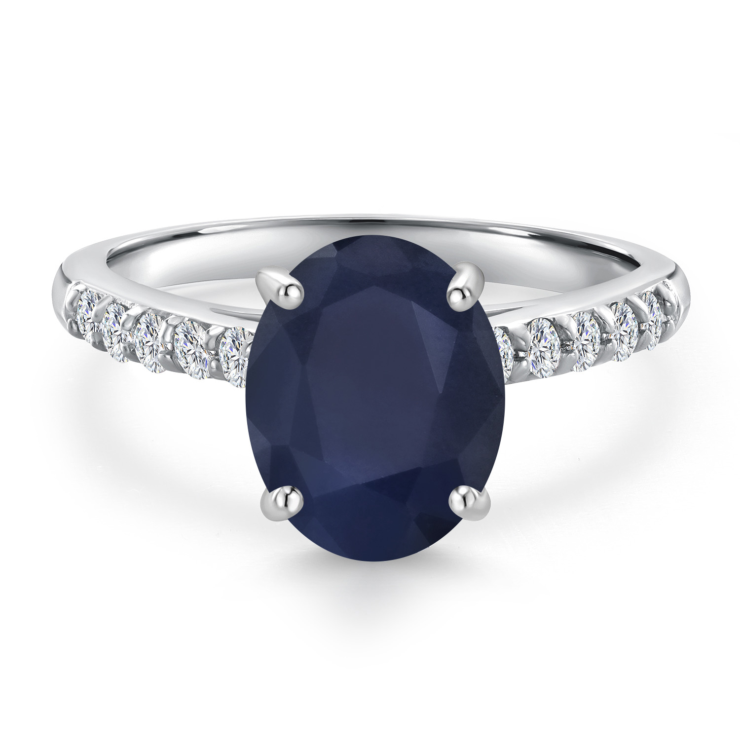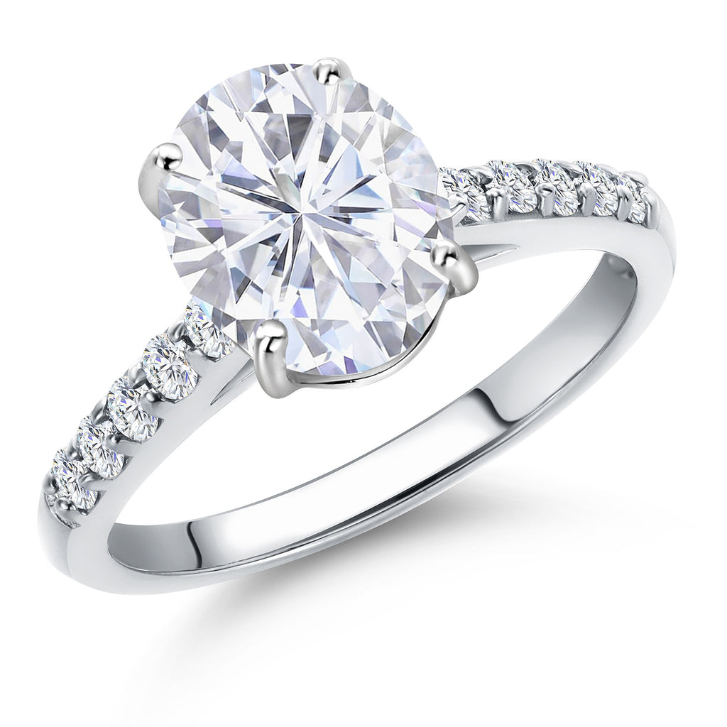 10K White Gold Gemstone Birthstone and White Lab Grown Diamond Accent Engagement Ring For Women | Oval 9X7MM and Round 1.7MM | Wedding Anniversary Promise Ring | Sizes 5, 6, 7, 8, 9