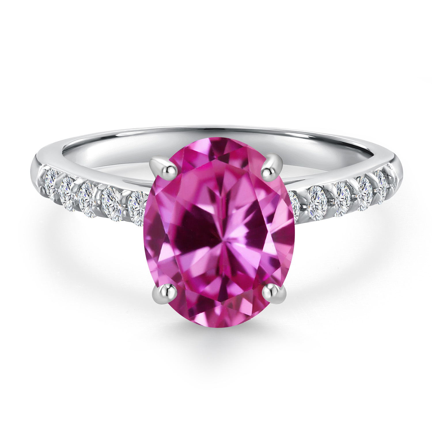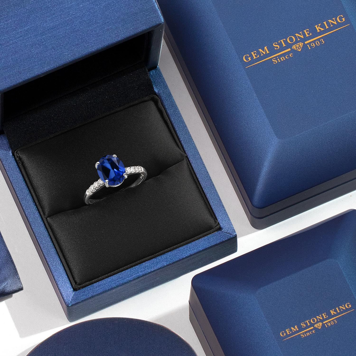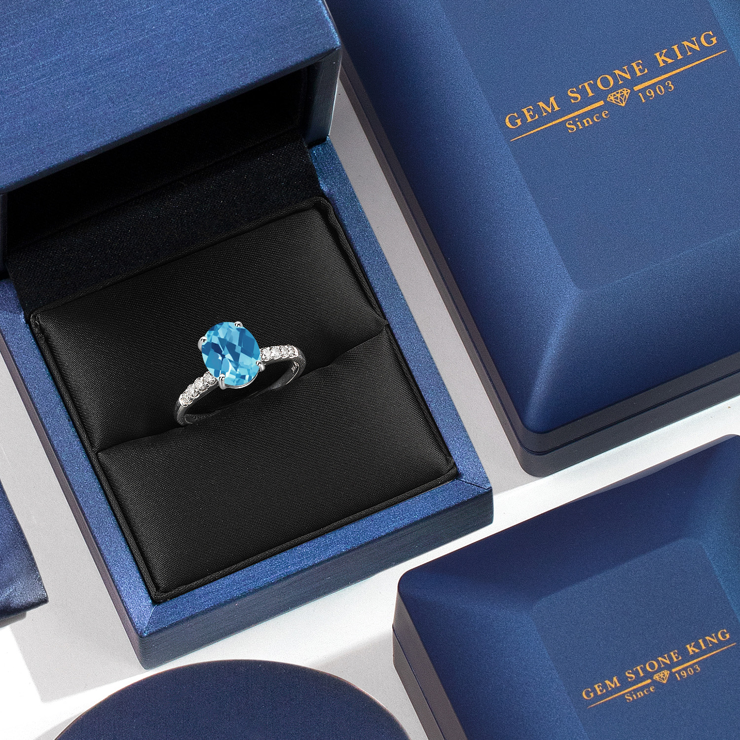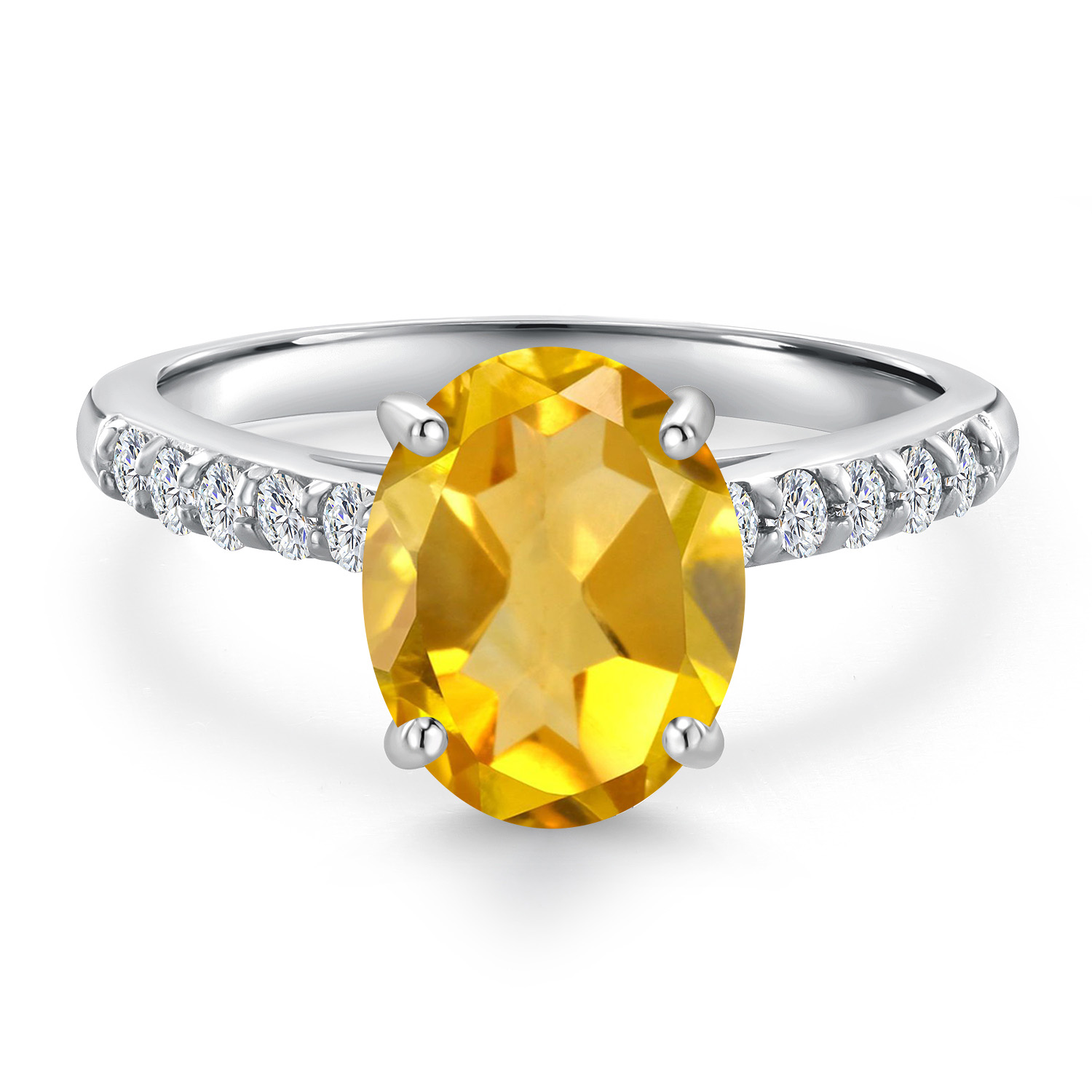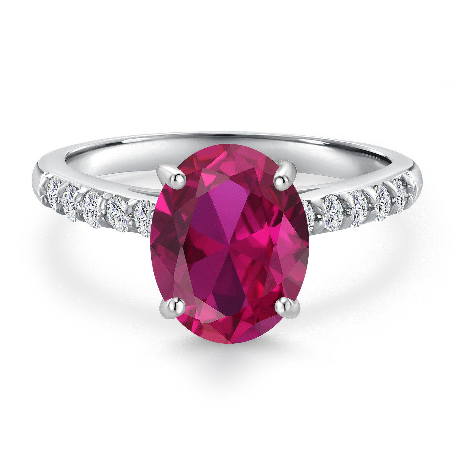 10K White Gold Gemstone Birthstone and White Lab Grown Diamond Accent Engagement Ring For Women | Oval 9X7MM and Round 1.7MM | Wedding Anniversary Promise Ring | Sizes 5, 6, 7, 8, 9