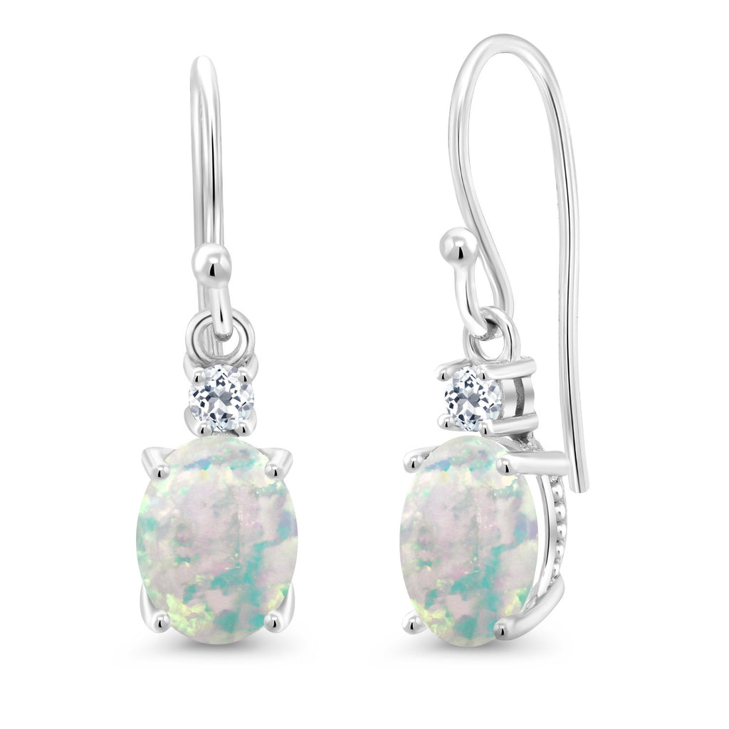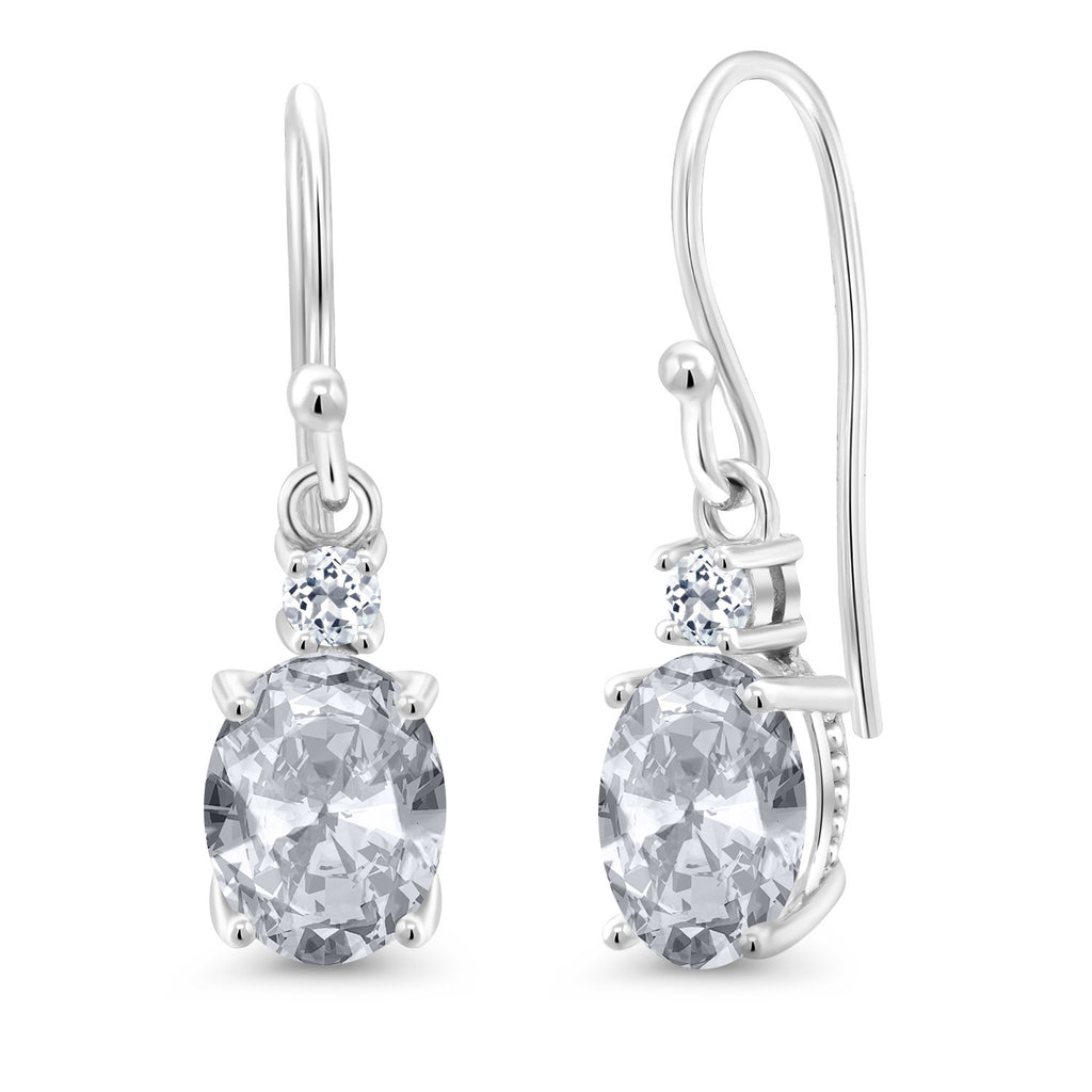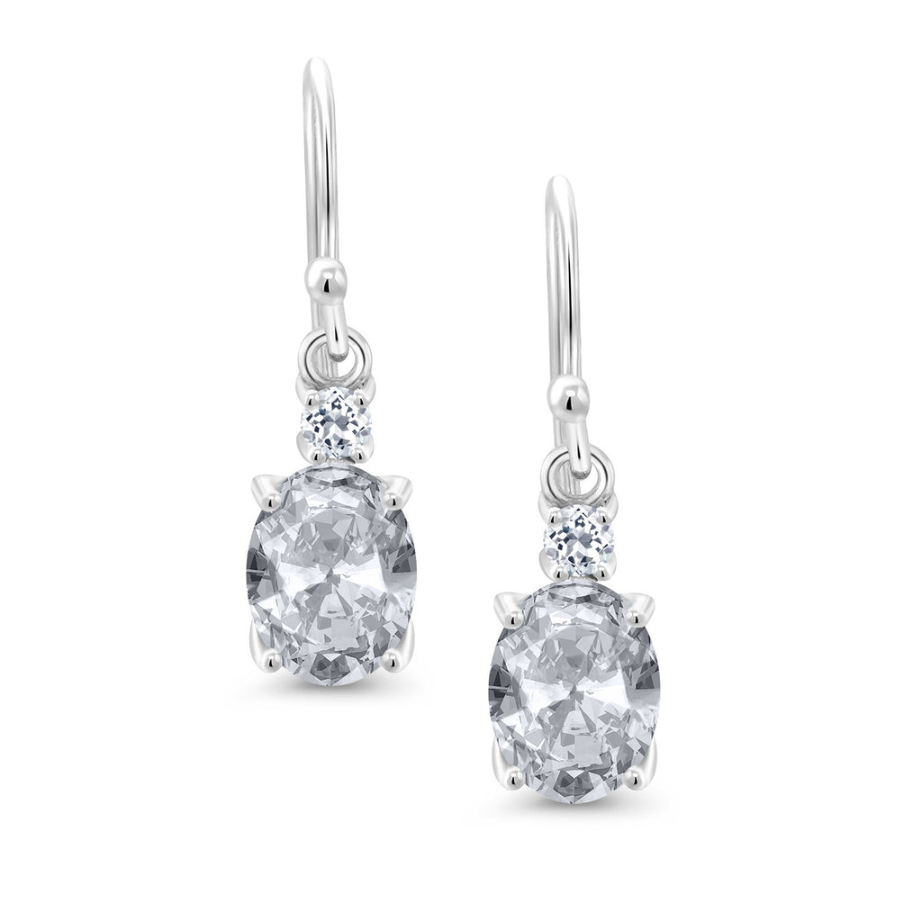 10K White Gold Gemstone Birthstone and White Topaz Dangle Earrings For Women | Oval 8X6MM and Round 2.5MM | Elegant Drop Design with Classic French Wire Hooks | Fine Jewelry Earrings