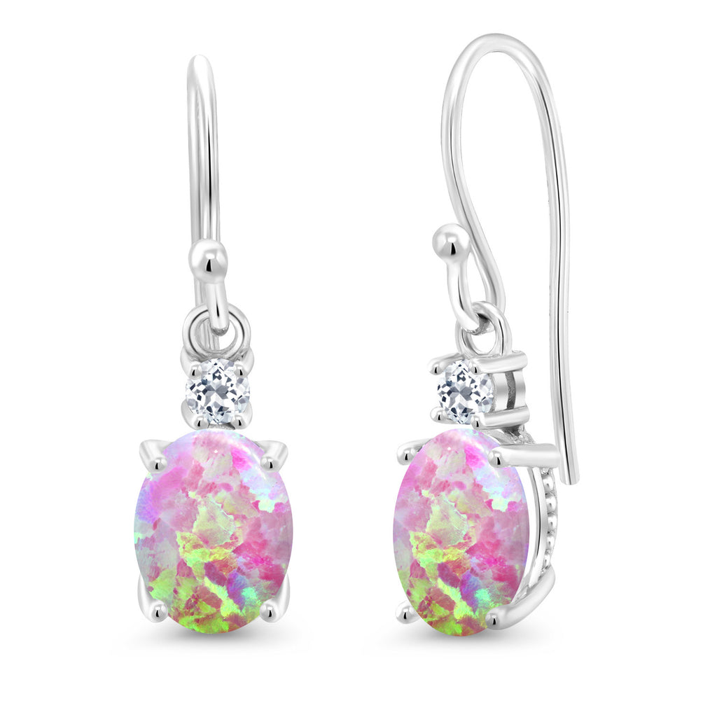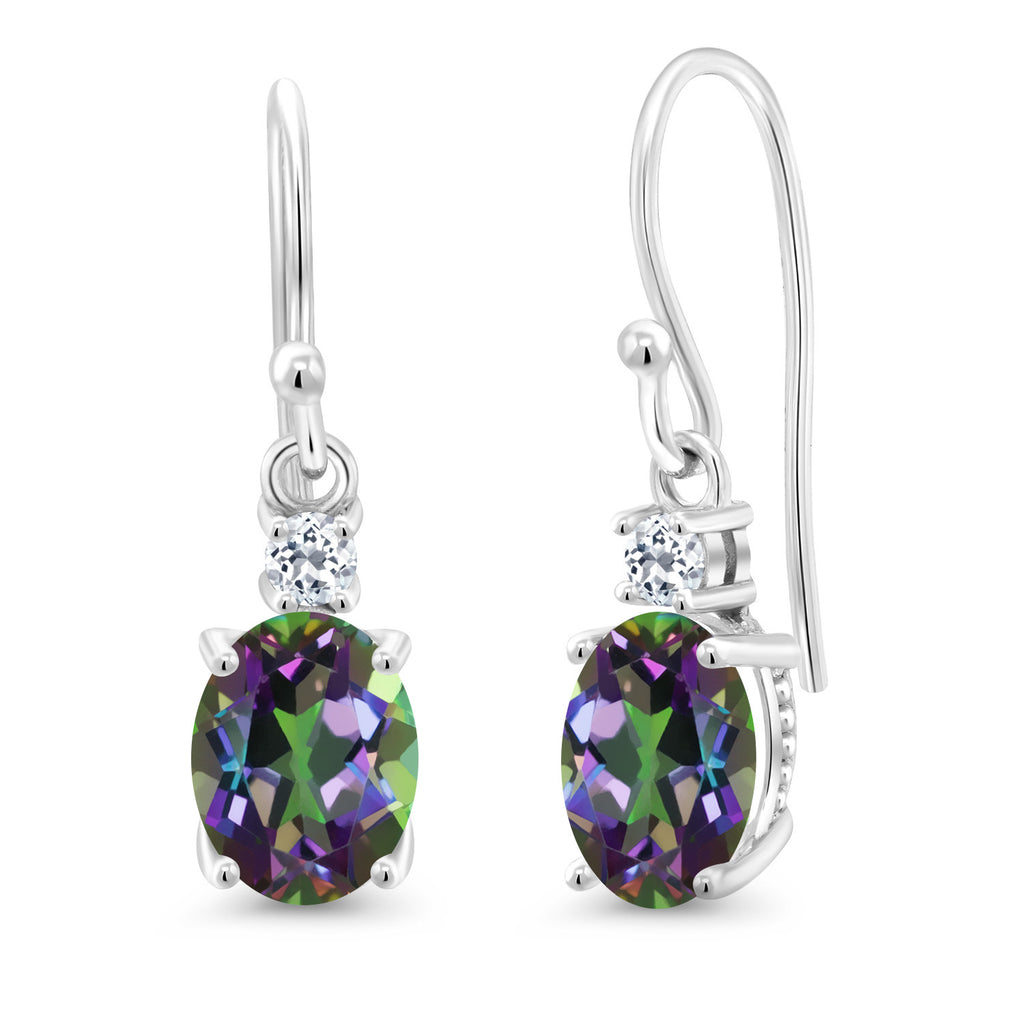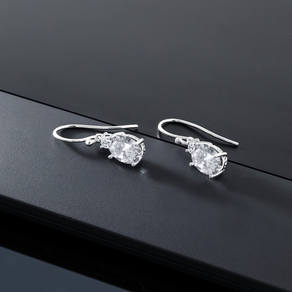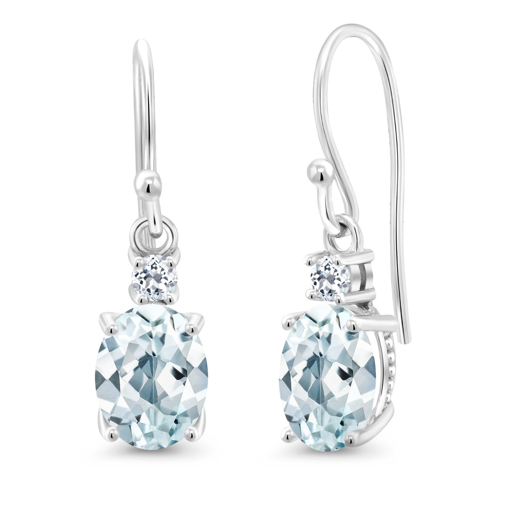 10K White Gold Gemstone Birthstone and White Topaz Dangle Earrings For Women | Oval 8X6MM and Round 2.5MM | Elegant Drop Design with Classic French Wire Hooks | Fine Jewelry Earrings