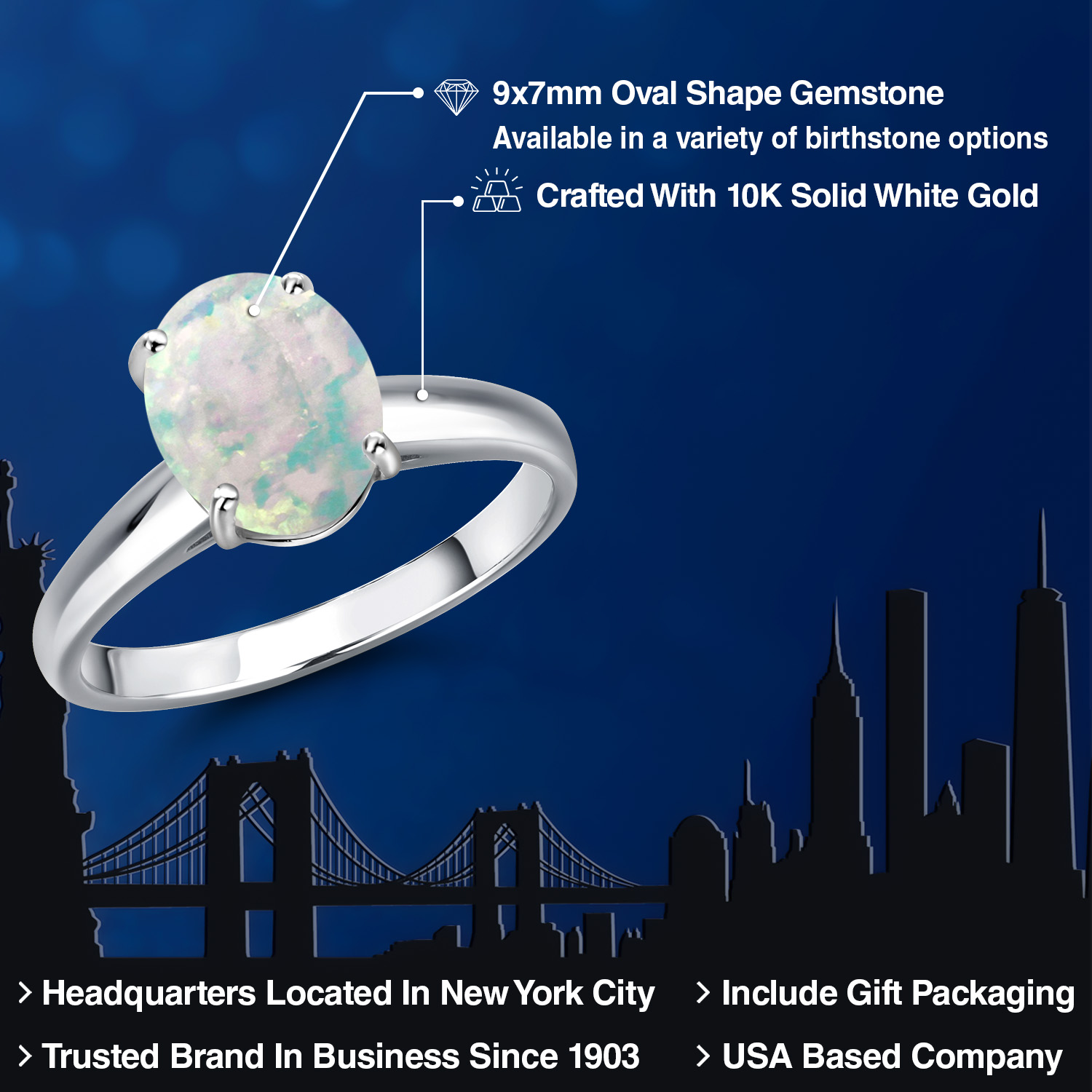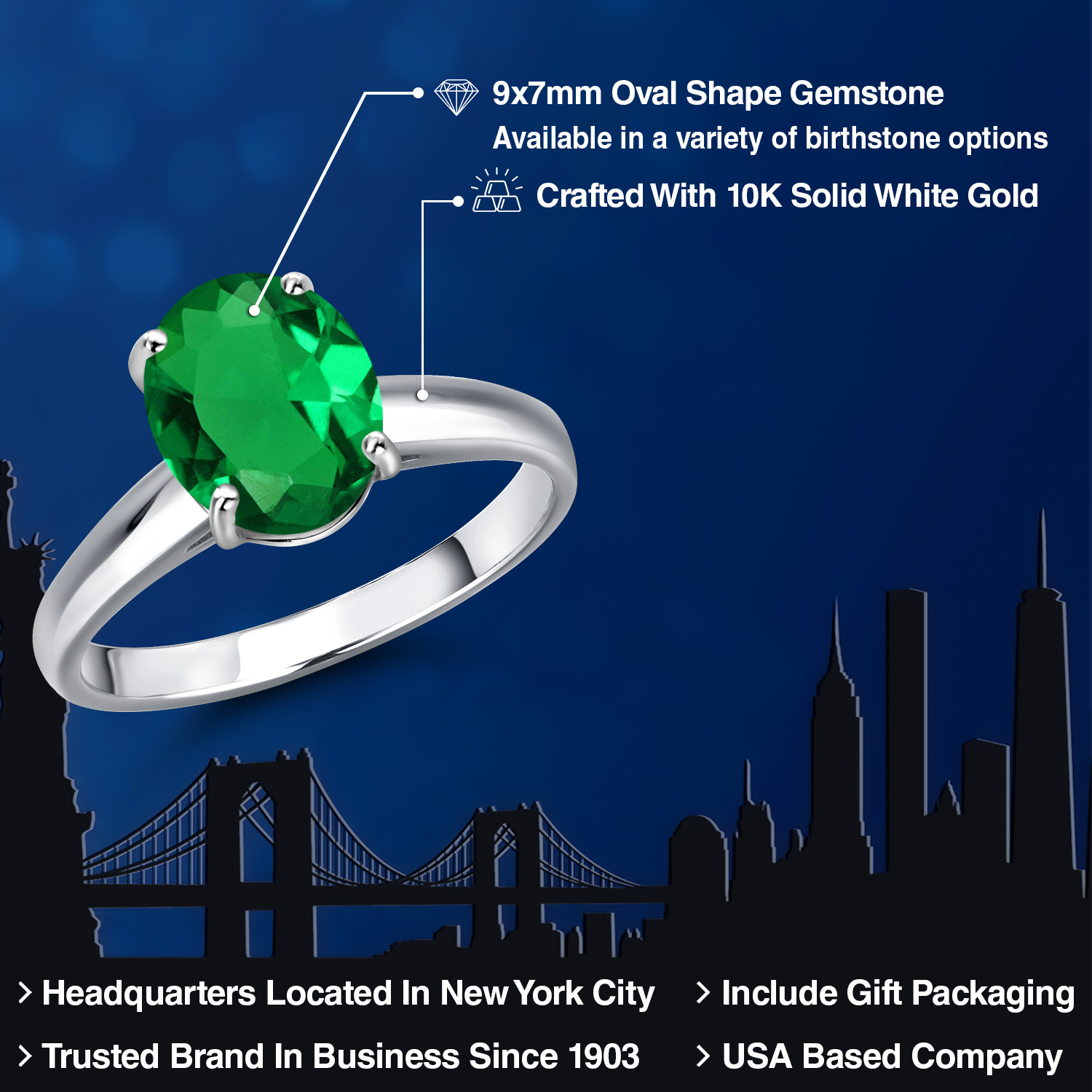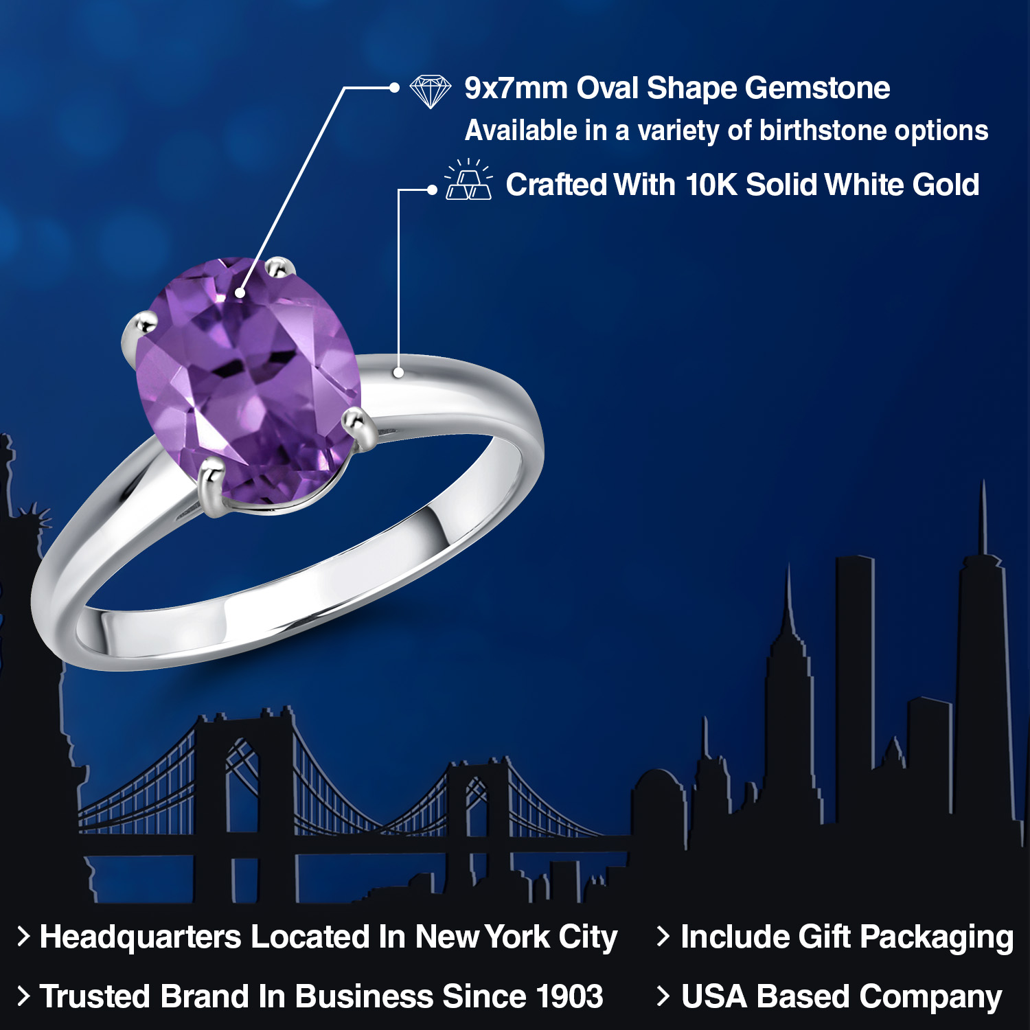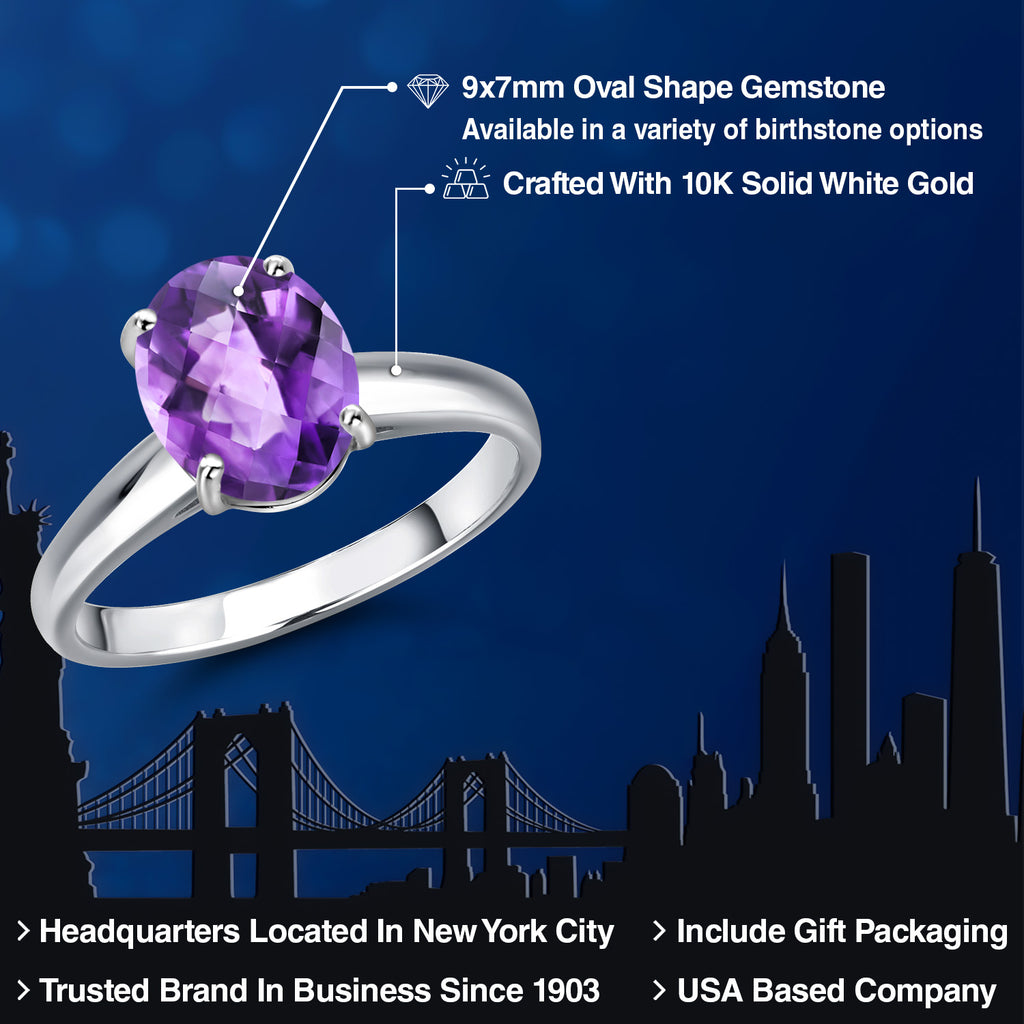 OVAL 9X7MM GEMSTONE ELEGANCE: Featuring a stunning 9x7MM oval gemstone, this engagement ring beautifully captures the essence of timeless romance. The oval shape is celebrated for its ability to elongate the finger, offering a sophisticated silhouette that enhances any hand. Available in a variety of birthstone options, each gemstone is meticulously selected for its brilliance and clarity, ensuring a vibrant and eye-catching centerpiece that radiates elegance and charm.