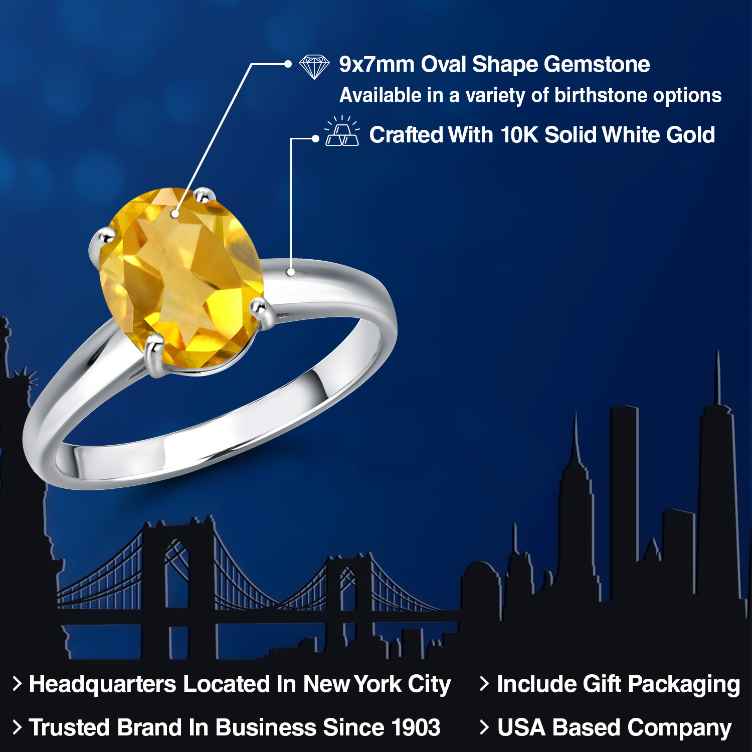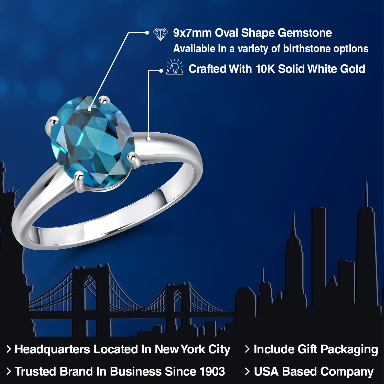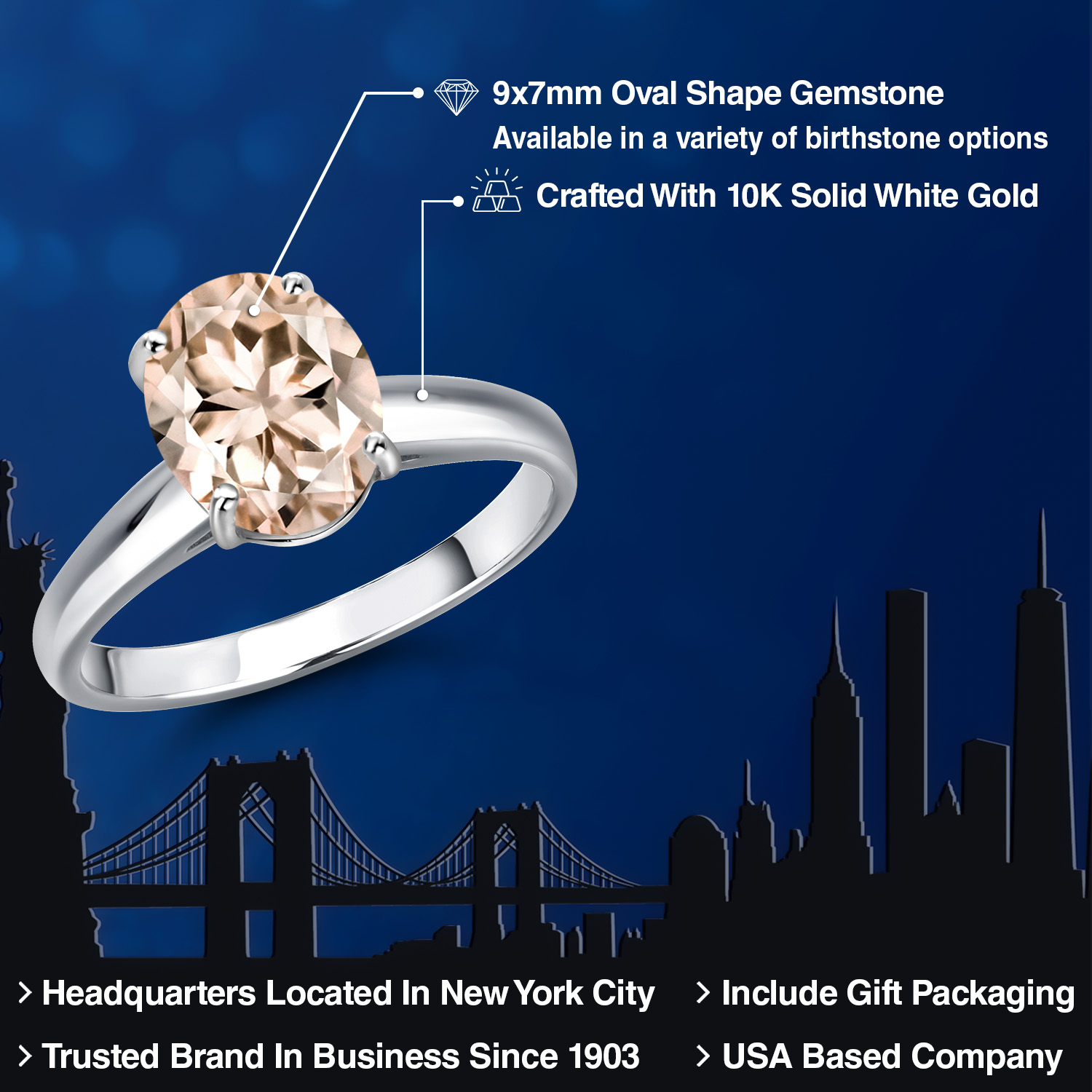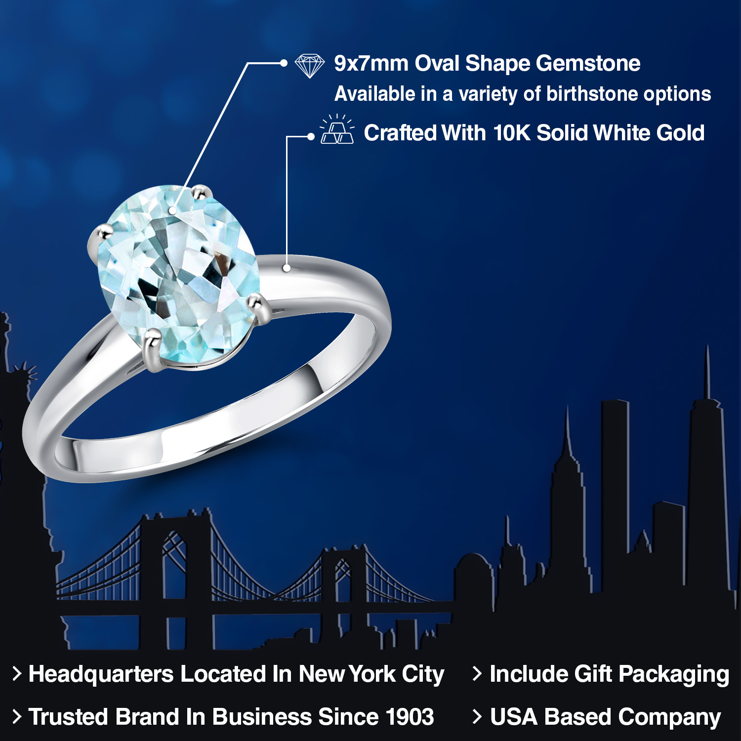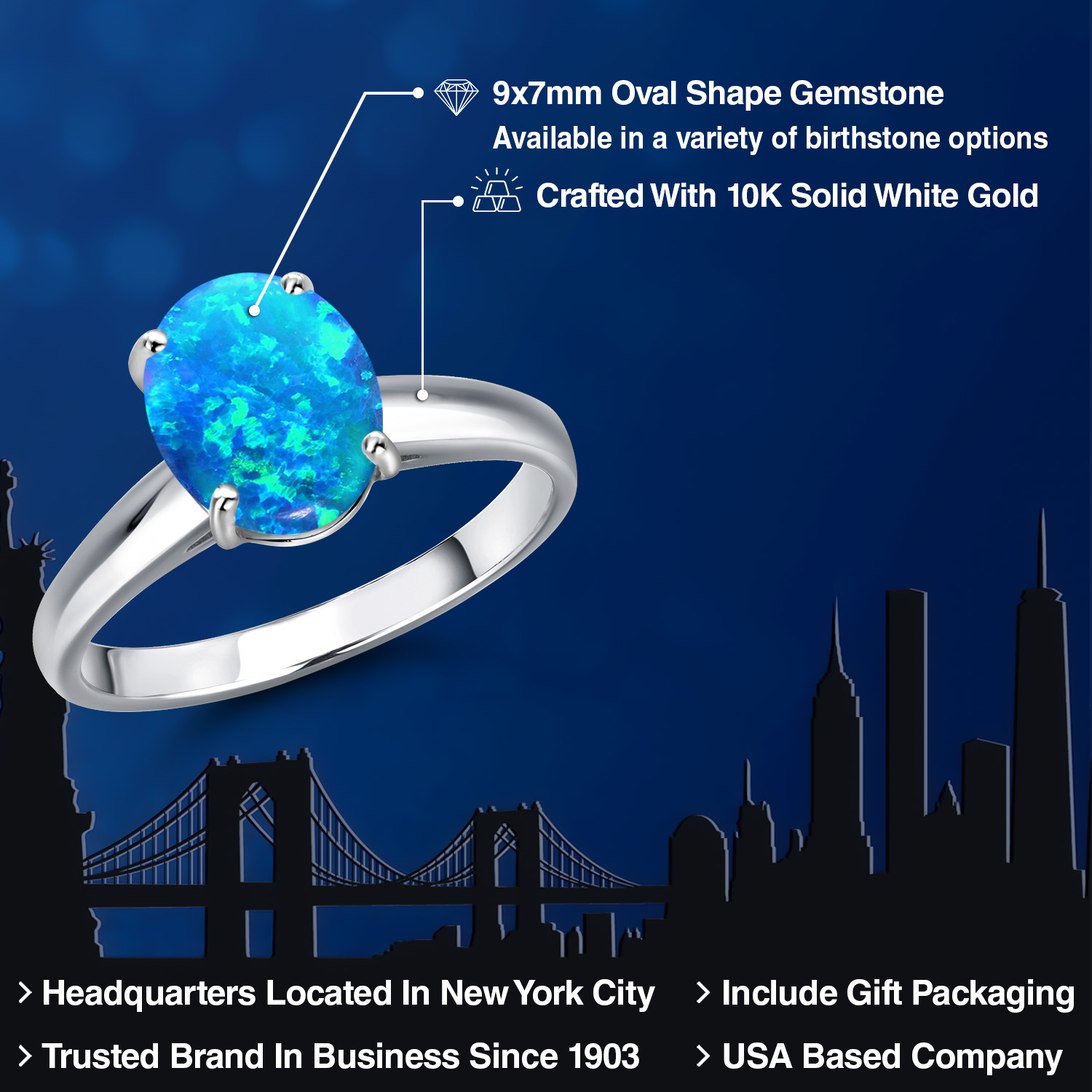 OVAL 9X7MM GEMSTONE ELEGANCE: Featuring a stunning 9x7MM oval gemstone, this engagement ring beautifully captures the essence of timeless romance. The oval shape is celebrated for its ability to elongate the finger, offering a sophisticated silhouette that enhances any hand. Available in a variety of birthstone options, each gemstone is meticulously selected for its brilliance and clarity, ensuring a vibrant and eye-catching centerpiece that radiates elegance and charm.