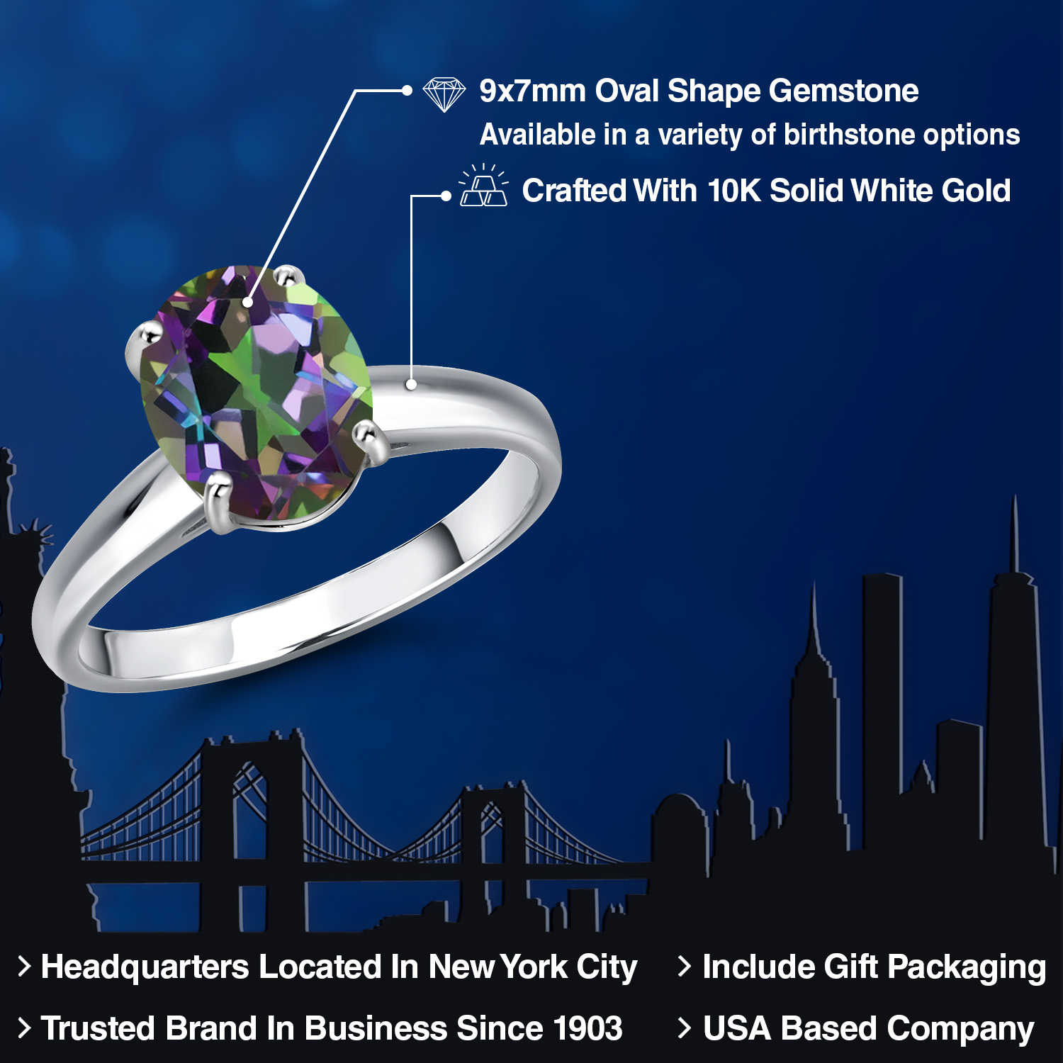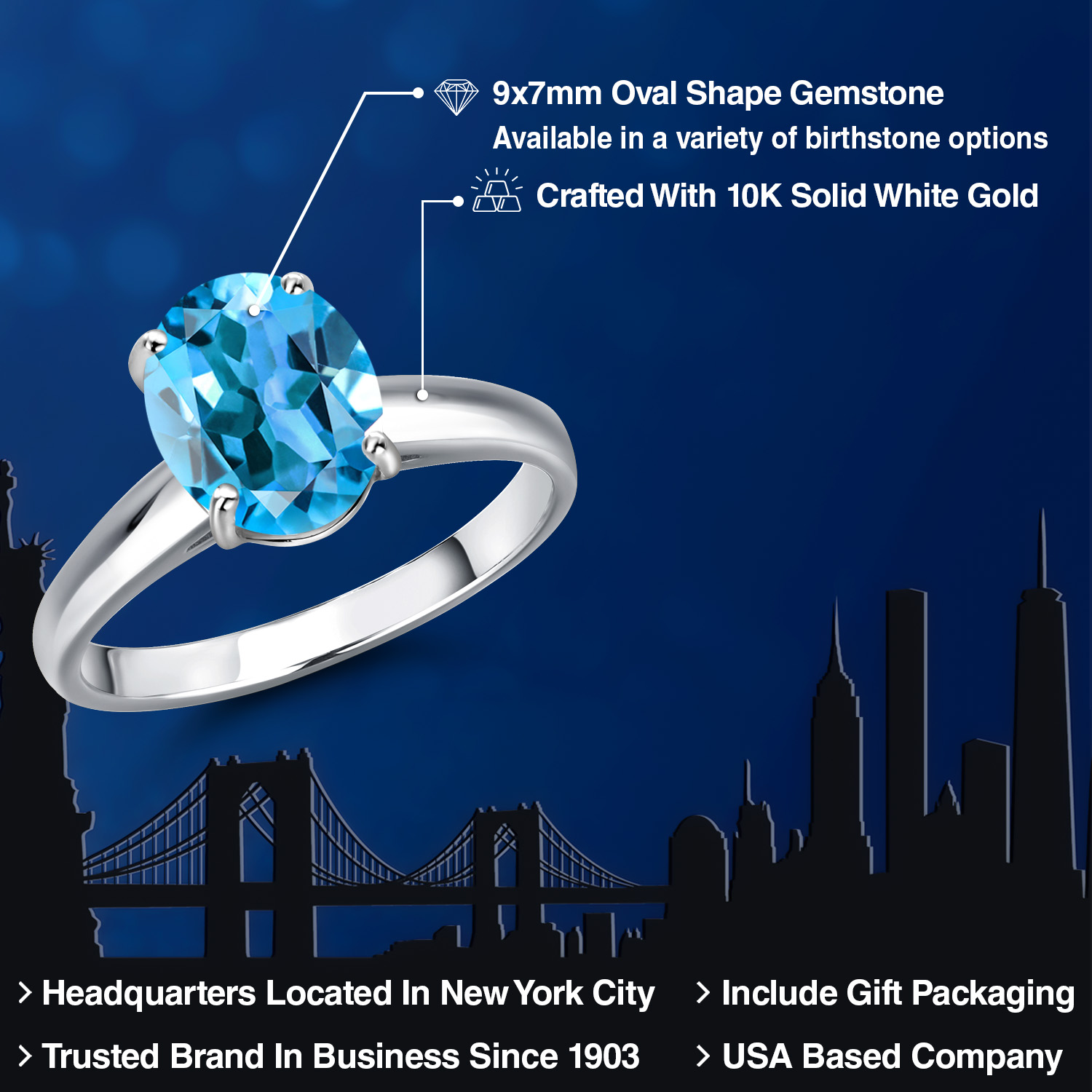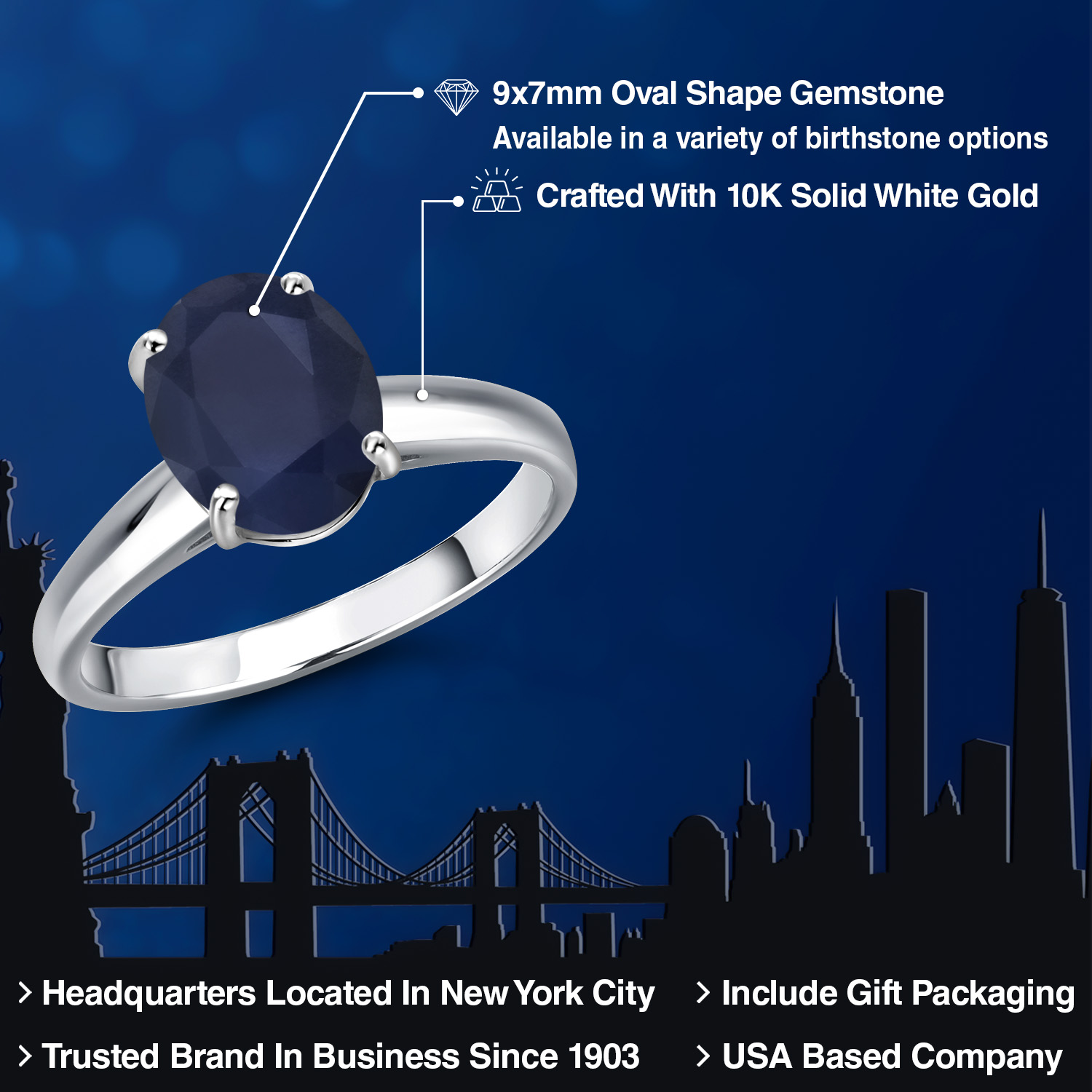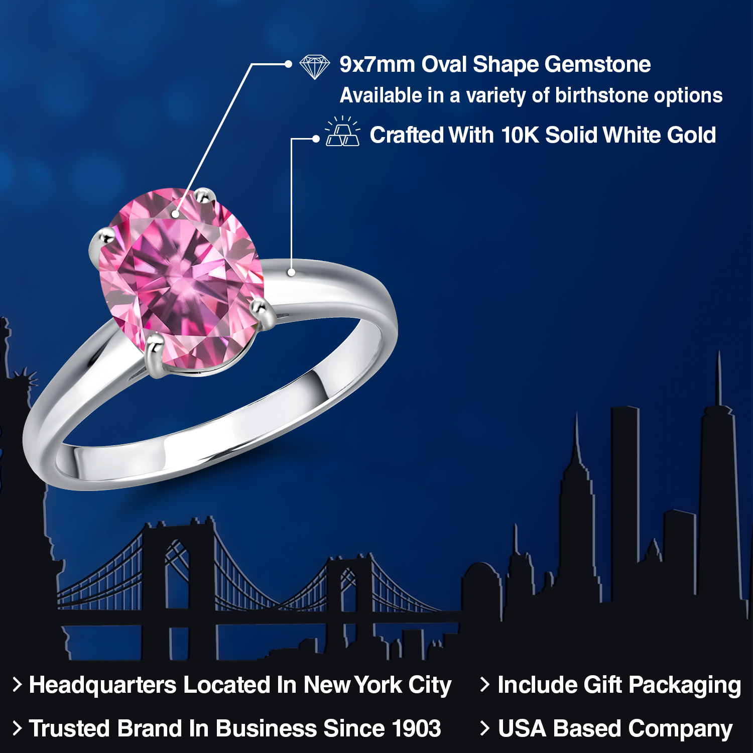 OVAL 9X7MM GEMSTONE ELEGANCE: Featuring a stunning 9x7MM oval gemstone, this engagement ring beautifully captures the essence of timeless romance. The oval shape is celebrated for its ability to elongate the finger, offering a sophisticated silhouette that enhances any hand. Available in a variety of birthstone options, each gemstone is meticulously selected for its brilliance and clarity, ensuring a vibrant and eye-catching centerpiece that radiates elegance and charm.