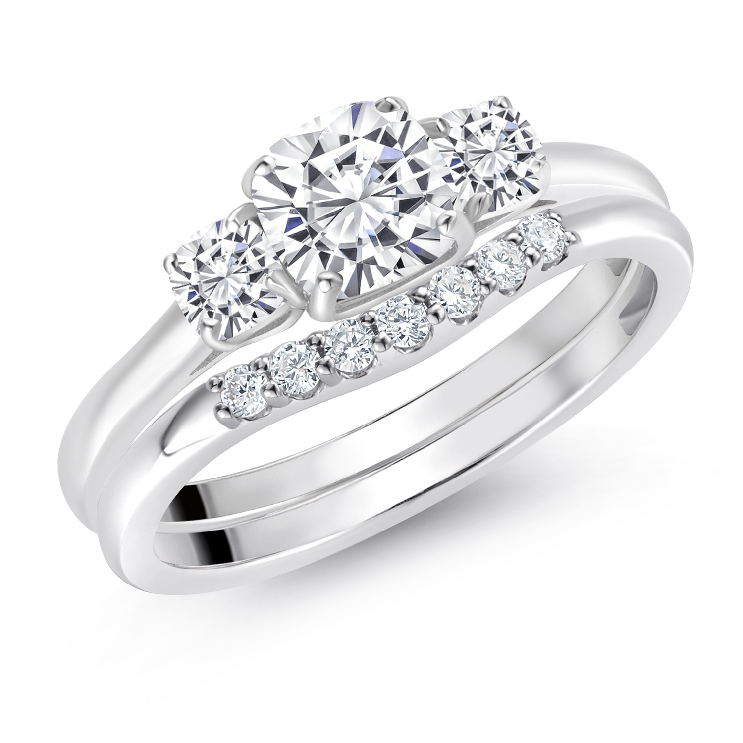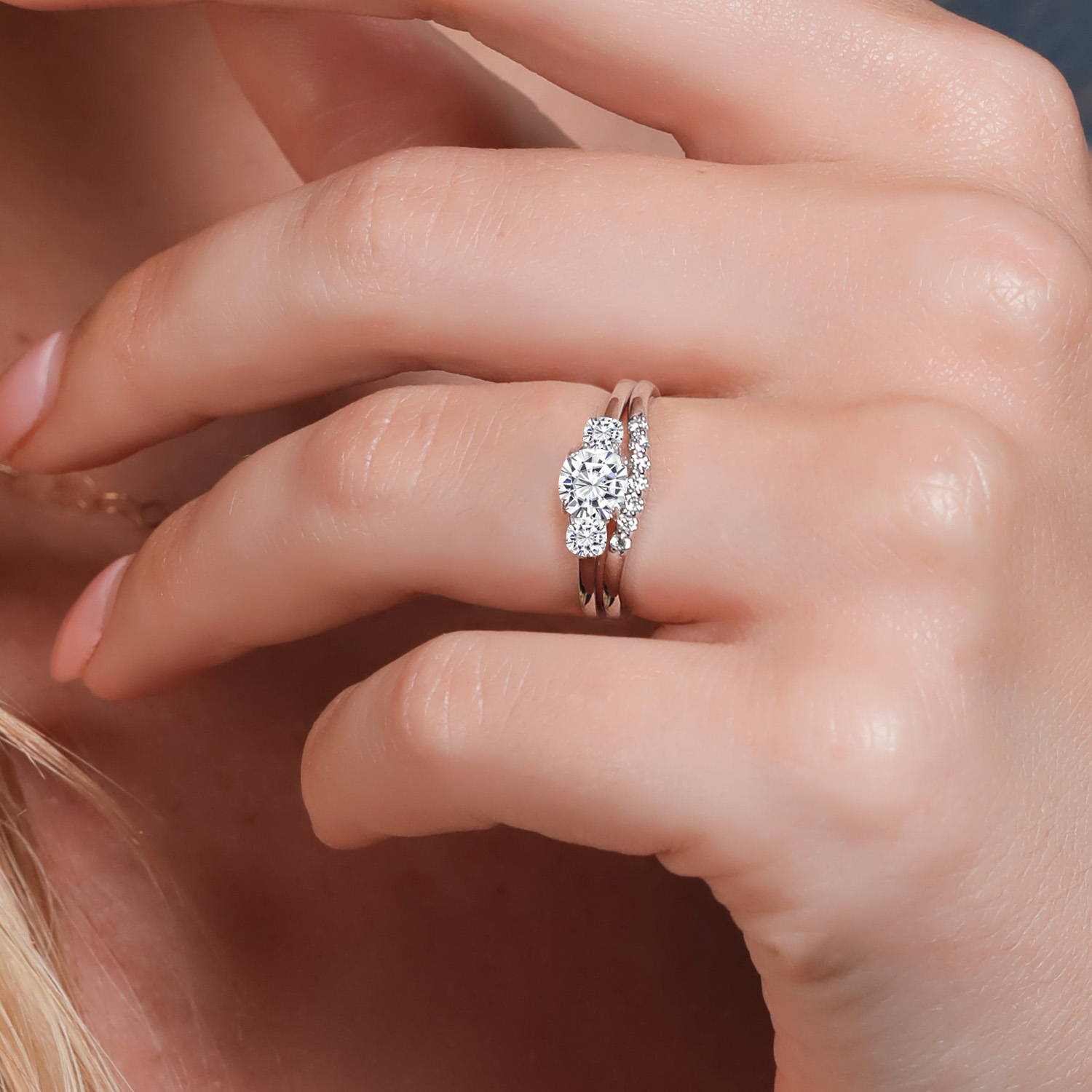 SYMBOLIC THREE-STONE DESIGN: Representing your past, present, and future, the three-stone setting is both meaningful and visually striking. This design makes the ring set an ideal choice for those who value sentiment and style in their symbol of commitment.