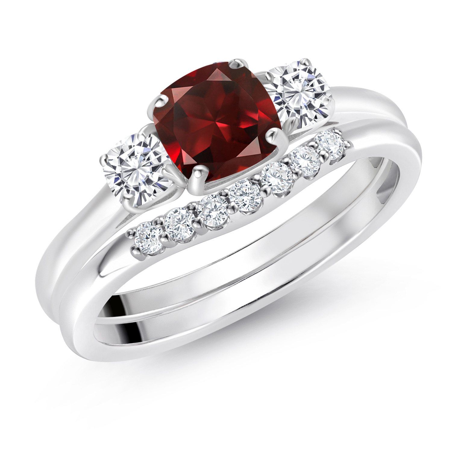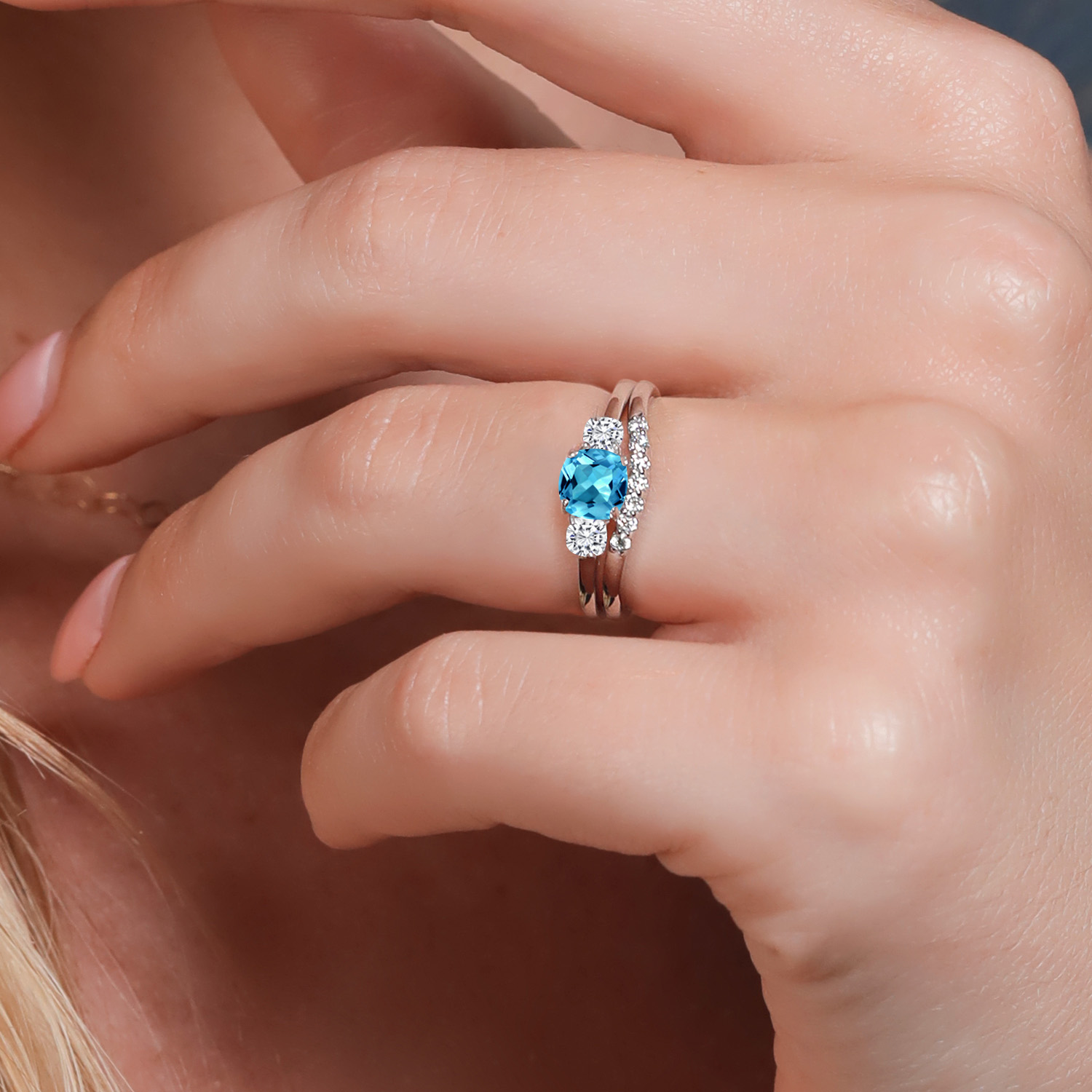 STUNNING CUSHION CUT STONES: Centered by a brilliant 5MM cushion-cut Gemstone Birthstone, flanked by 3MM White Moissanite, this ring set offers exceptional sparkle and clarity. The cushion cut not only enhances the gemstones' natural brilliance but also adds a modern touch to a classic design.