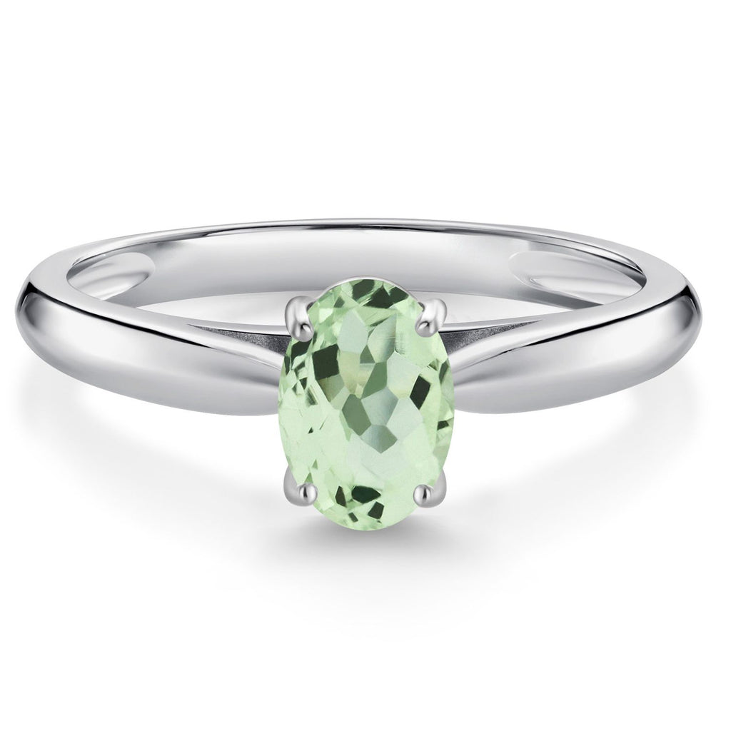 MEASUREMENTS: 7x5mm Oval Heat-Treated Green Prasiolite. Total Carat Weight is 0.75 cttw