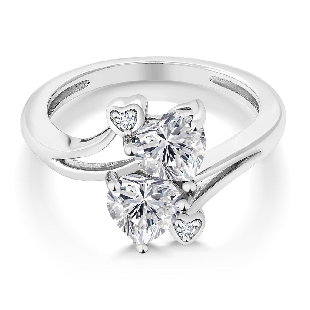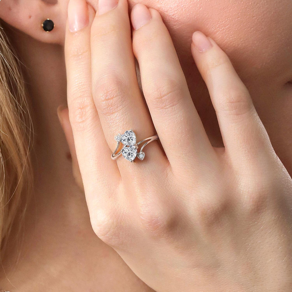 DAZZLING HEART-SHAPED DIAMONDS: Featuring two stunning heart-shaped diamonds with a total carat weight of 2 Ct, the ring's overall carat weight is 2.04 Cttw, ensuring a captivating sparkle that symbolizes enduring love.