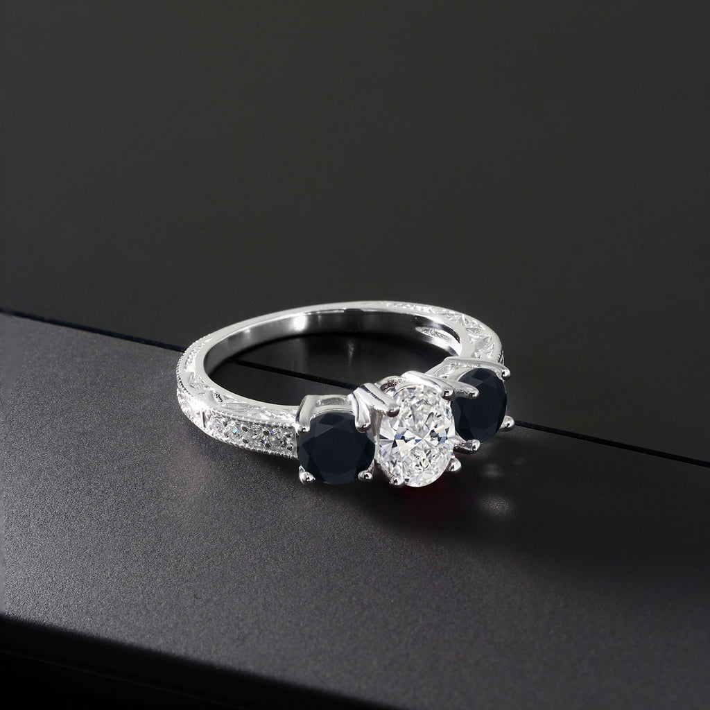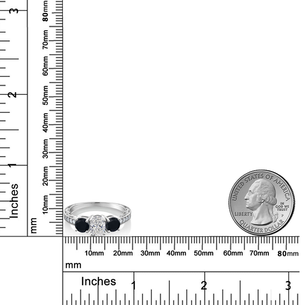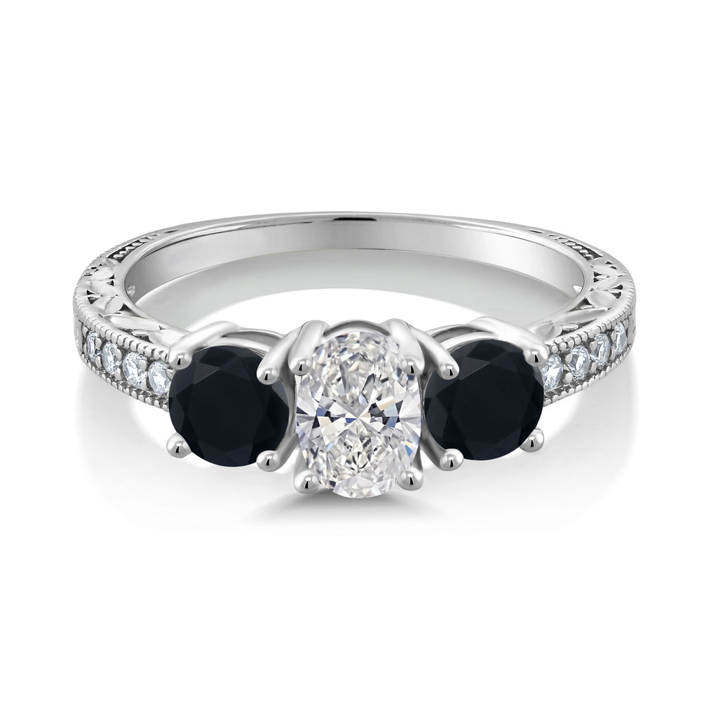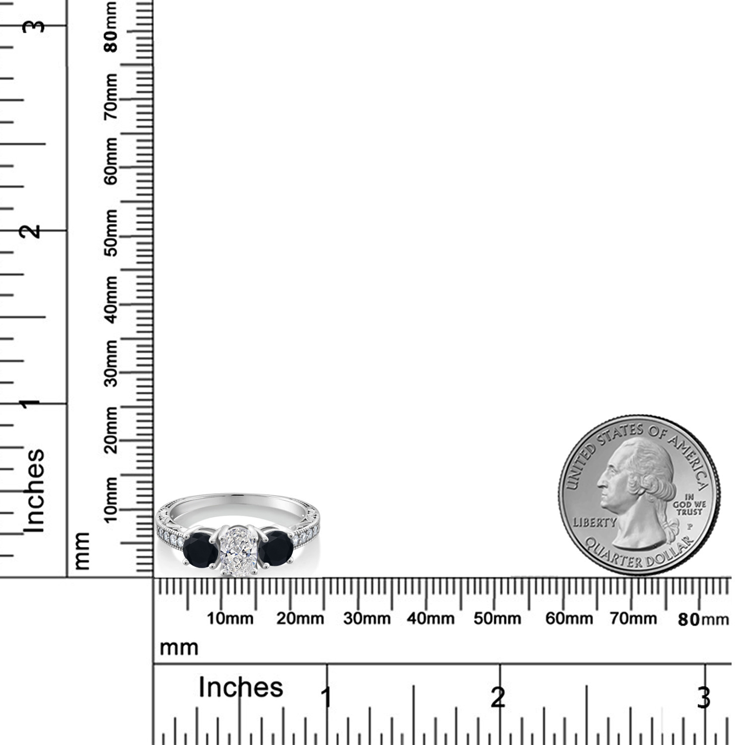 10K White Gold IGI Certified Lab Grown Diamond and Black Onyx 3 Stone Engagement Ring For Women | 2.03 Cttw | Center Diamond Oval 1 Ct | E-F Color | VS1-VS2 Clarity