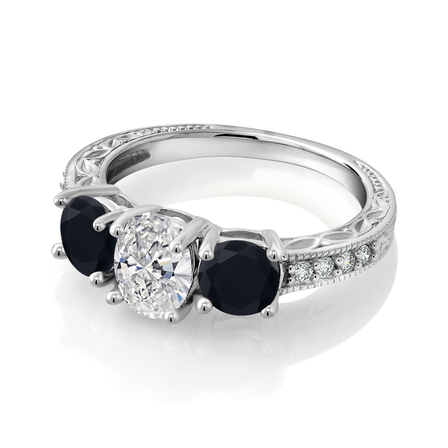 MEASUREMENTS: 8x6mm Oval E - F Lab Grown Diamond, 5x5mm Round Black Onyx1.5, x, 1.5, mm Round E - F Lab Grown Diamond. Total Carat Weight is 2.03 cttw