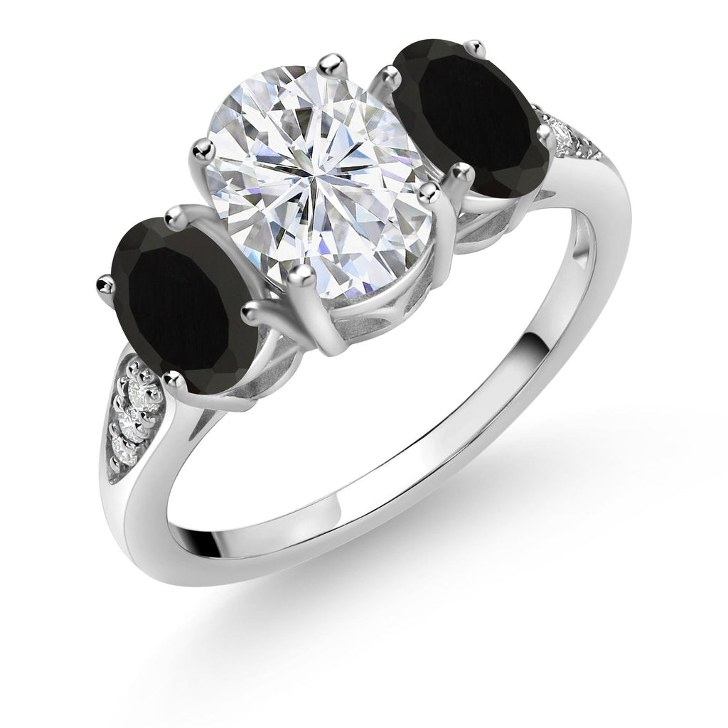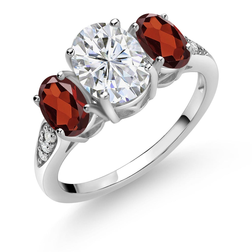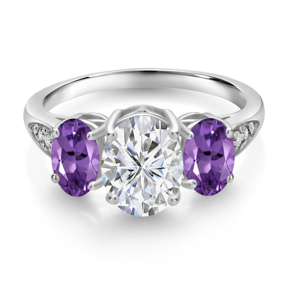 10K White Gold IGI Certified White Lab Grown Diamond and Gemstone Birthstone 3-Stone Engagement Ring for Women | Oval 8X6MM & 6X4MM | Three Stone Wedding Anniversary Promise Ring | Sizes 5-9