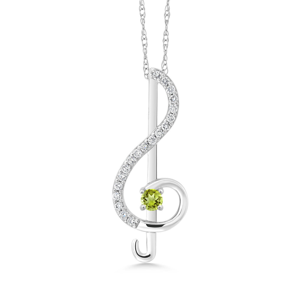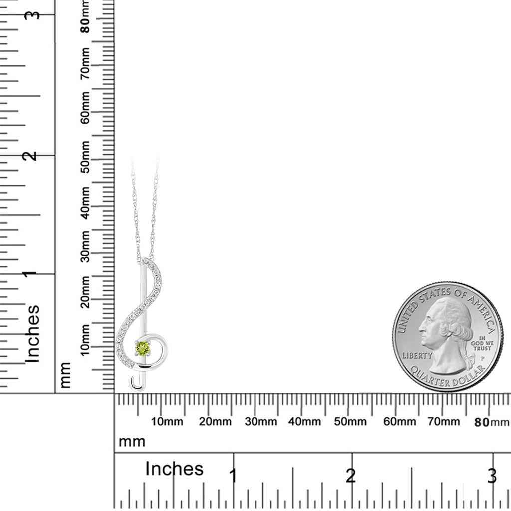10K White Gold Keren Hanan Round Green Peridot and White Lab Grown Diamond Treble Clef Pendant Music Note Jewelry Gift For Women (0.27 Cttw, with 18 Inch Chain)