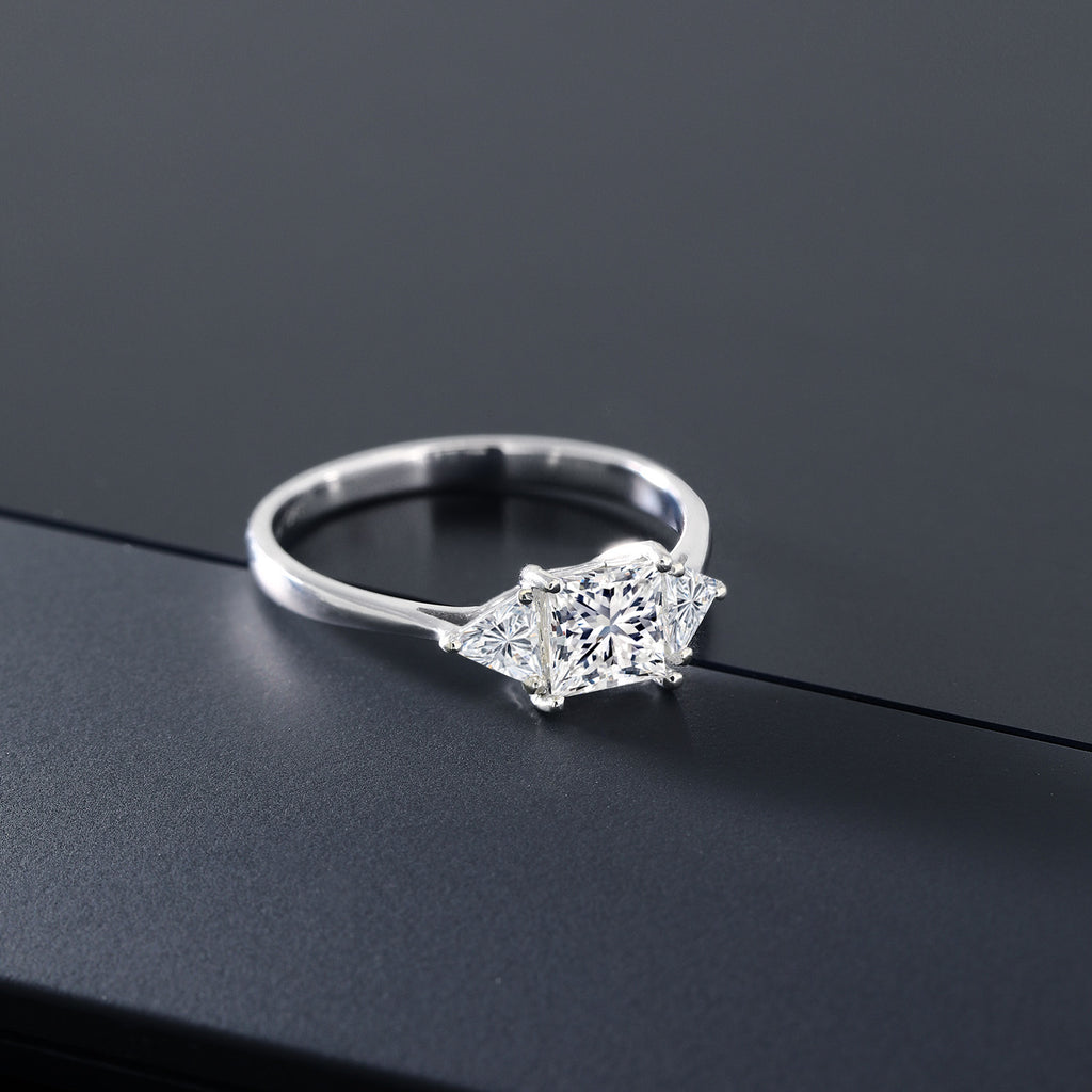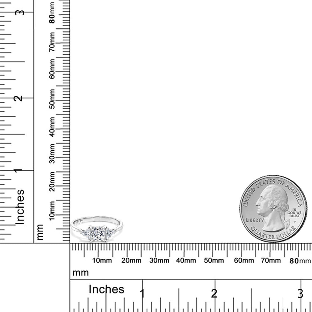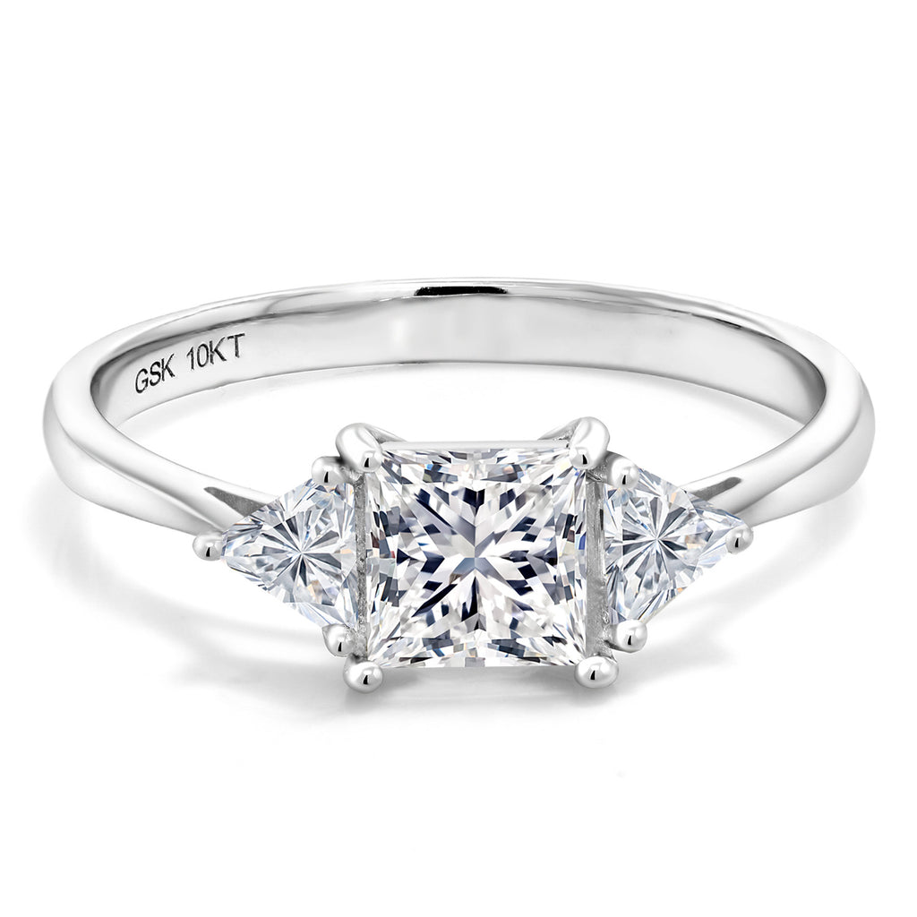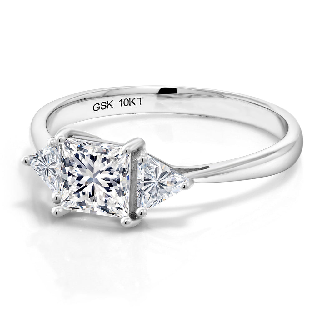 EXQUISITE CRAFTSMANSHIP AND TIMELESS DESIGN: This beautiful engagement ring features a total of 1.00 Cttw of sparkling lab grown diamonds, with a striking 5MM princess-cut center stone and two 3.5MM trillion-cut side stones. Set in luxurious 10K White Gold, this ring embodies elegance and sophistication, perfect for marking a significant milestone.