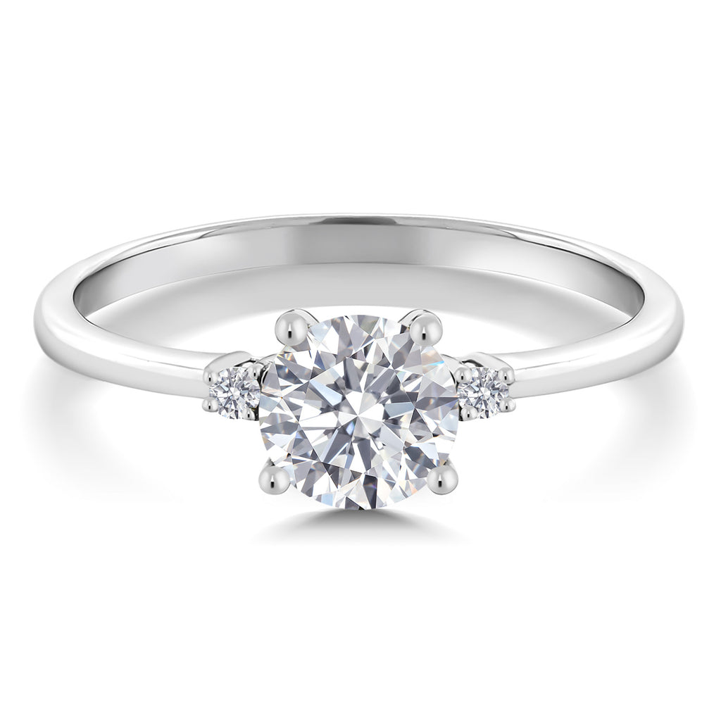 10K White Gold Lab Grown Diamond 3-Stone Engagement Ring For Women | 0.77 Cttw | Round 6MM and 1.5MM | Gemstone Birthstone | E-F Color | VVS-VS Clarity