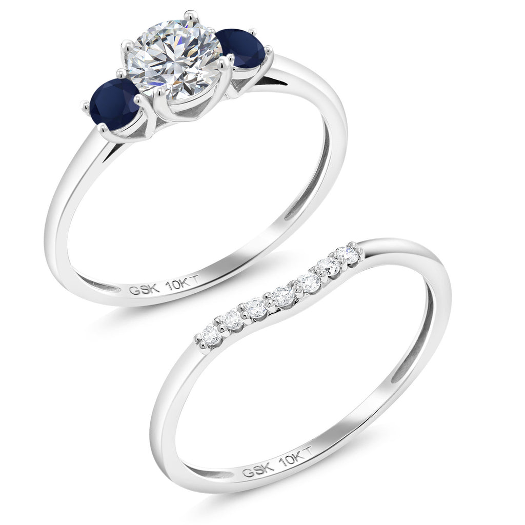 MEASUREMENTS: 5x5mm Round E - F Lab Grown Diamond, 3x3mm Round Diffused Blue Sapphire1.2, x, 1.2, mm Round E - F Lab Grown Diamond. Total Carat Weight is 0.86 cttw