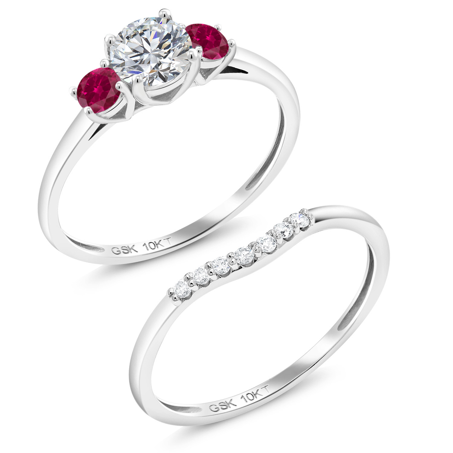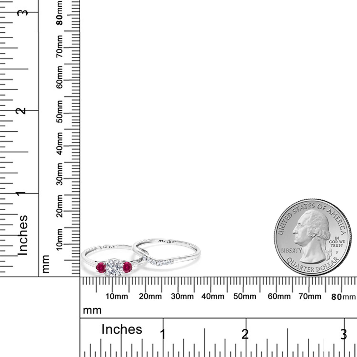 10K White Gold Lab Grown Diamond and Red Created Ruby Bridal-Sets Ring For Women | 0.84 Cttw | Round 5MM | Wedding Engagement Anniversary Promise Ring For Women