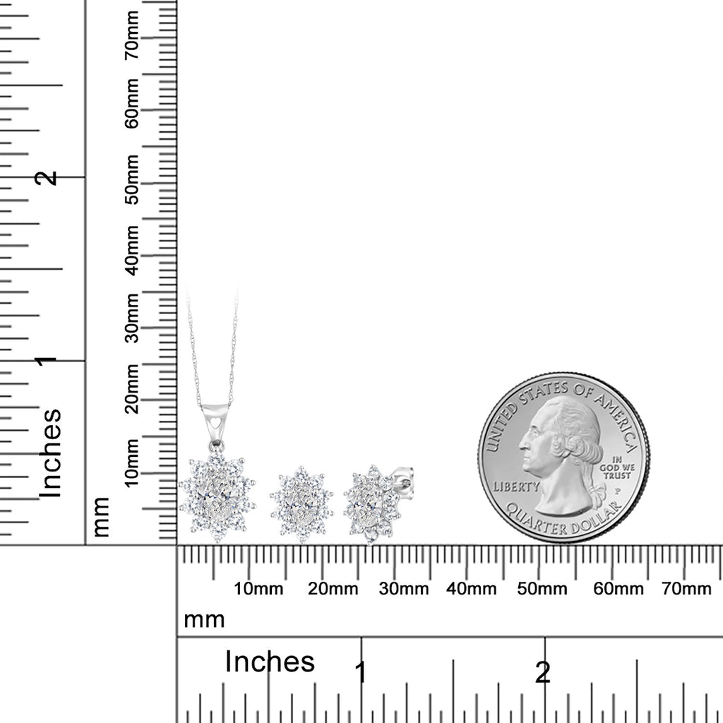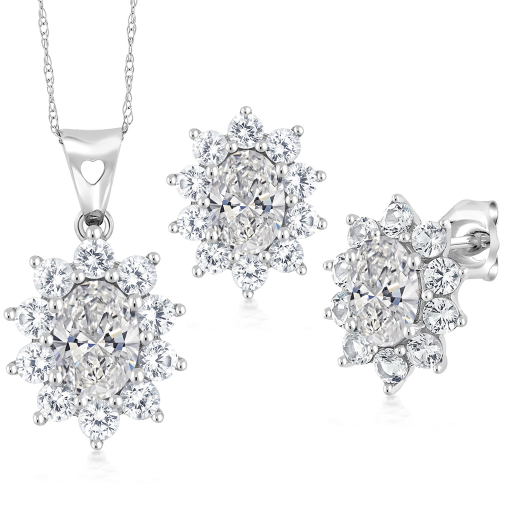 MEASUREMENTS: 7x5mm Oval DEF Lab Grown Diamond, 6x4mm Oval DEF Lab Grown Diamond2, x, 2, mm Round Heat-Treated White Created Sapphire. Total Carat Weight is 2.70 cttw