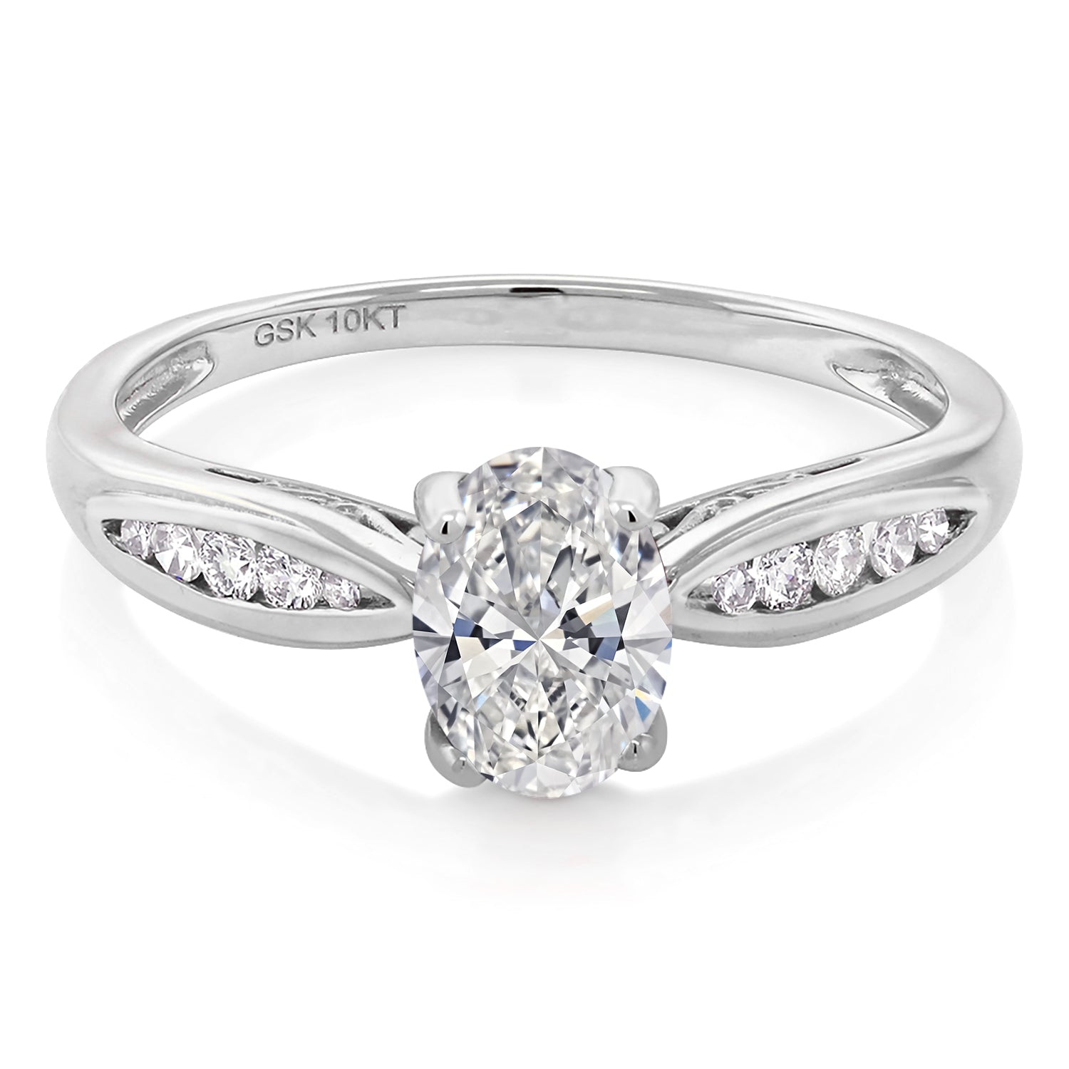 MEASUREMENTS: 7x5mm Oval DEF Lab Grown Diamond, 1.2x1.2mm Round White Diamond. Total Carat Weight is 0.80 cttw
