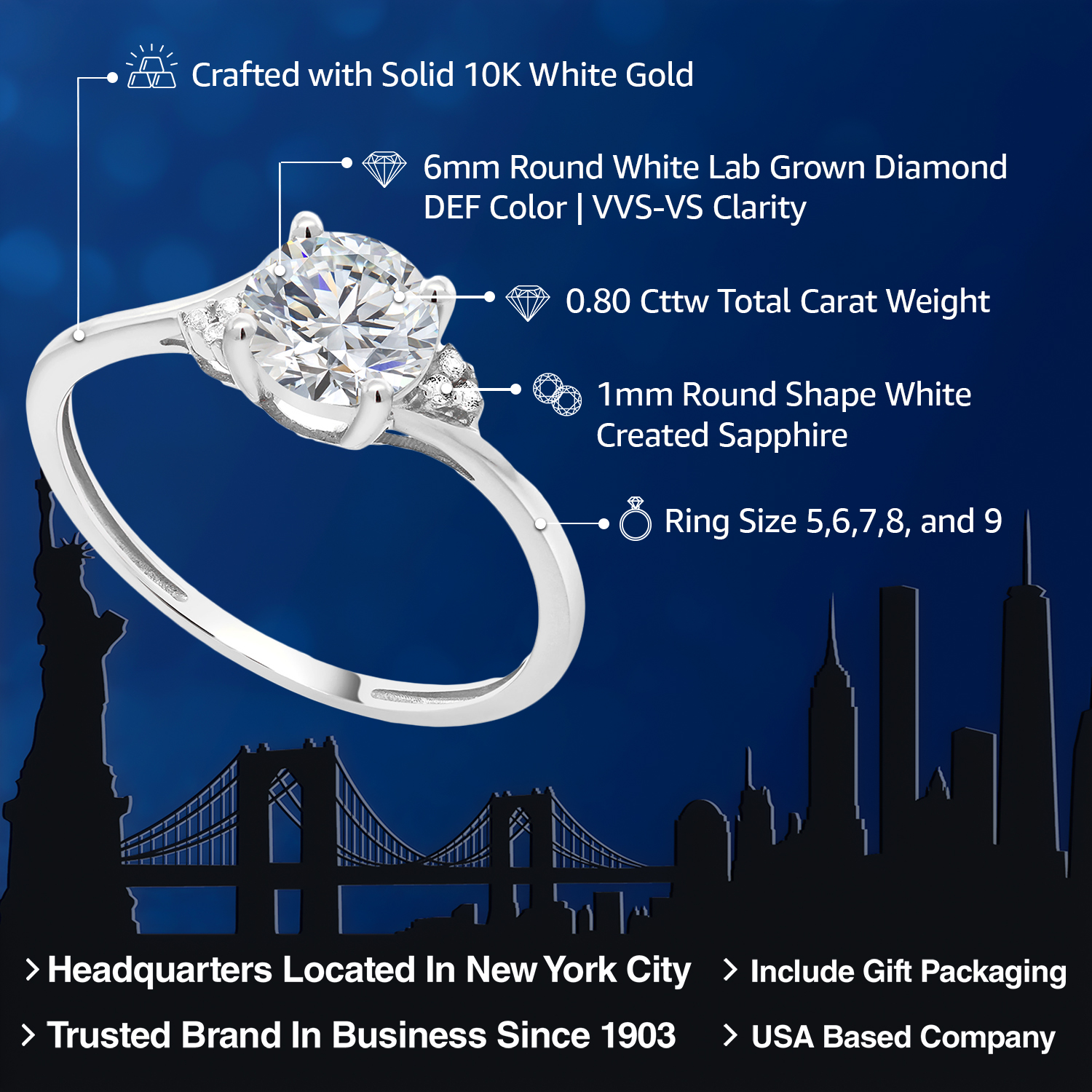 A TIMELESS SYMBOL OF FOREVER LOVE: Whether for an engagement, anniversary, or meaningful milestone, this lab grown diamond ring makes a powerful and elegant gift. Available in sizes 5 through 9, its classic solitaire design, superior craftsmanship, and ethical brilliance make it a treasured piece for any fine jewelry collection.
