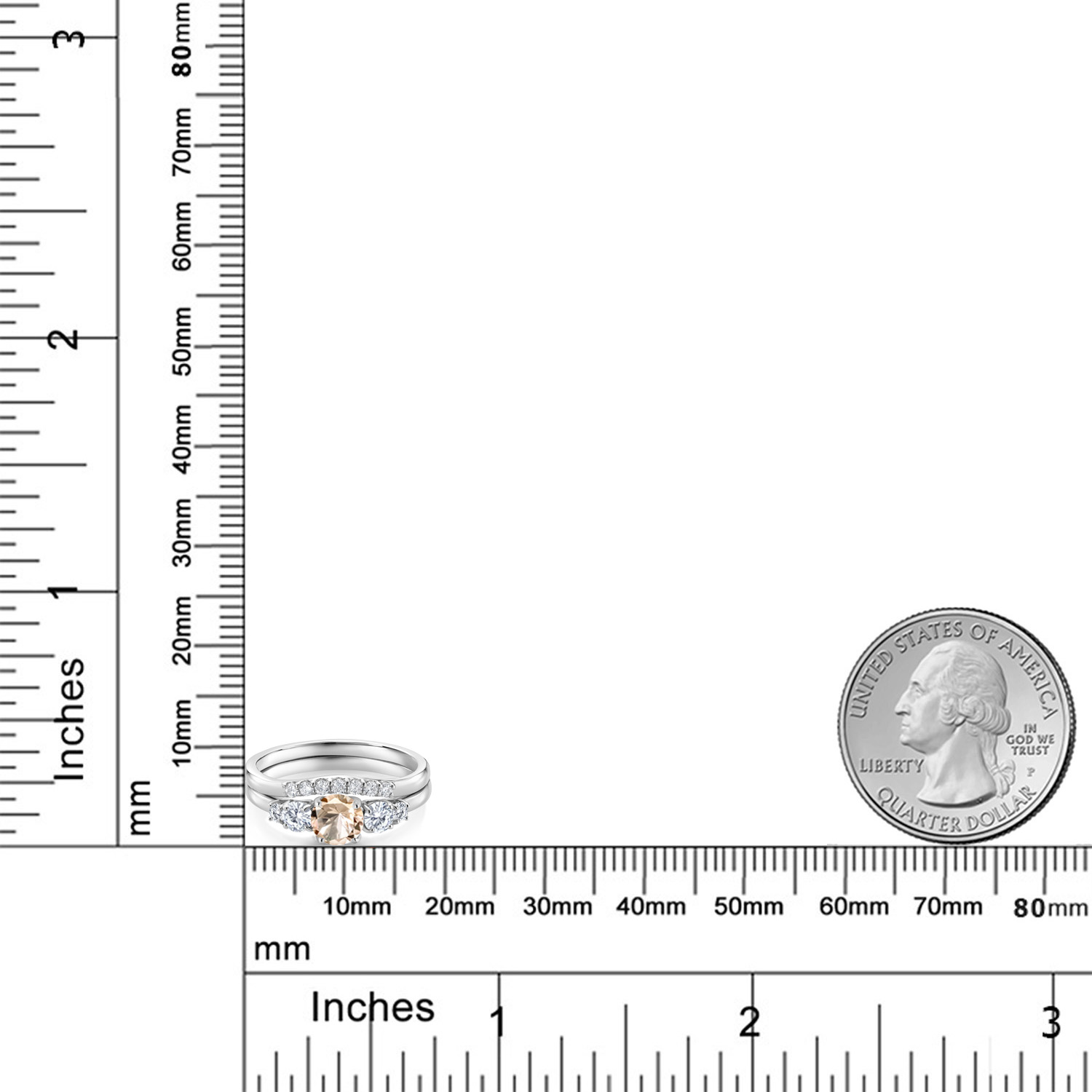 PERFECT GIFT WITH SIZE OPTIONS: Available in sizes 5 through 9, this bridal set makes a thoughtful gift for weddings, anniversaries, or milestone celebrations. With its symbolic morganite center, diamond accents, and meaningful 5-stone design, it becomes a treasured addition to any fine jewelry collection.