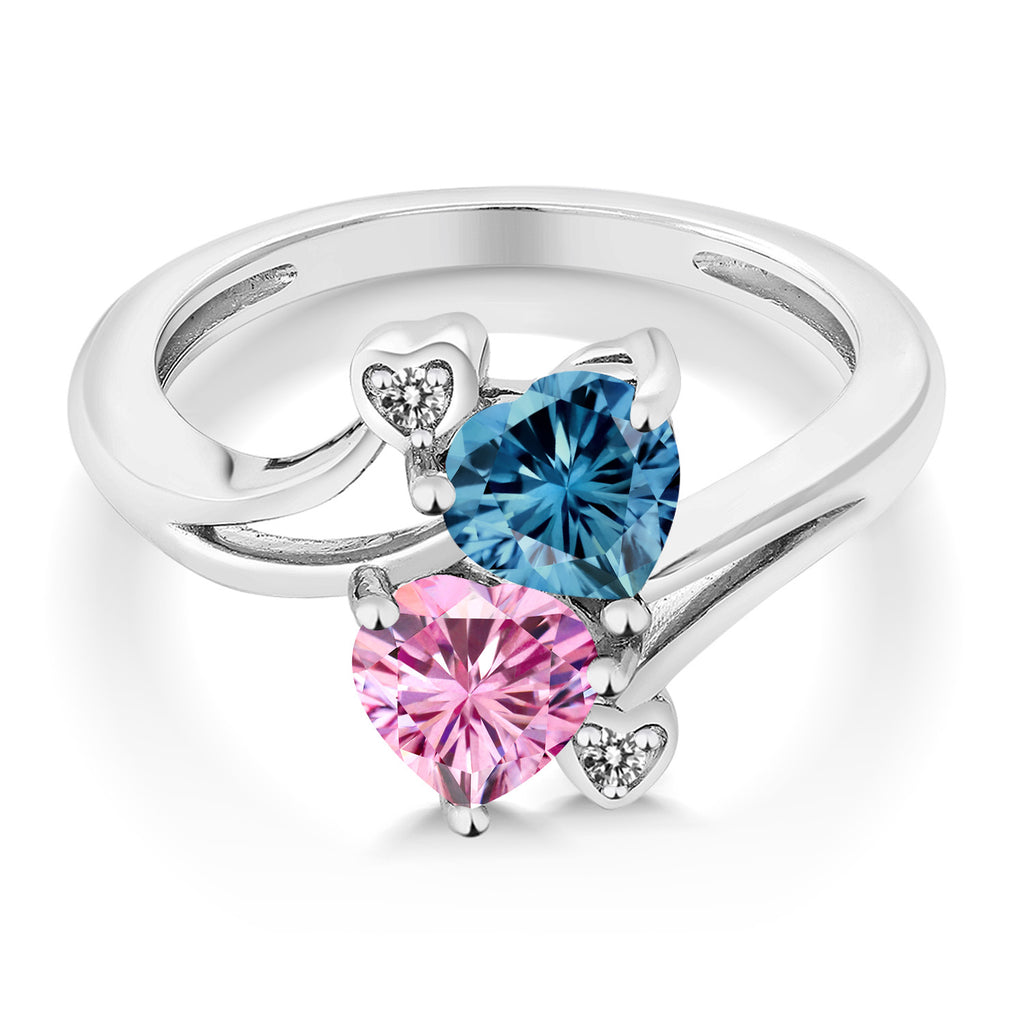 10K White Gold Persian Blue Moissanite and Pink Moissanite and White Diamond Engagement Ring For Women (1.63 Cttw, Gemstone Birthstone, Heart Shape 6MM)