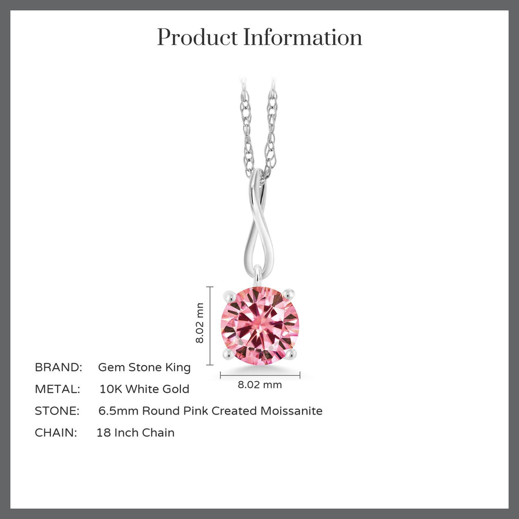 10K White Gold Gemstone Birthstone Pendant Necklace | Round 6.5MM | White Gold Necklace for Women | With 18 Inch Chain | Fine Jewelry Gifts for Her Mom Women Wife