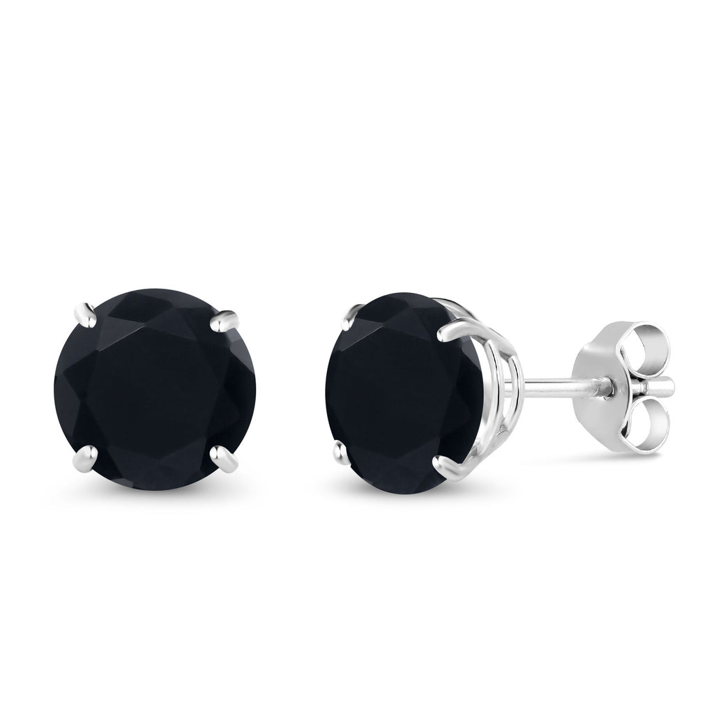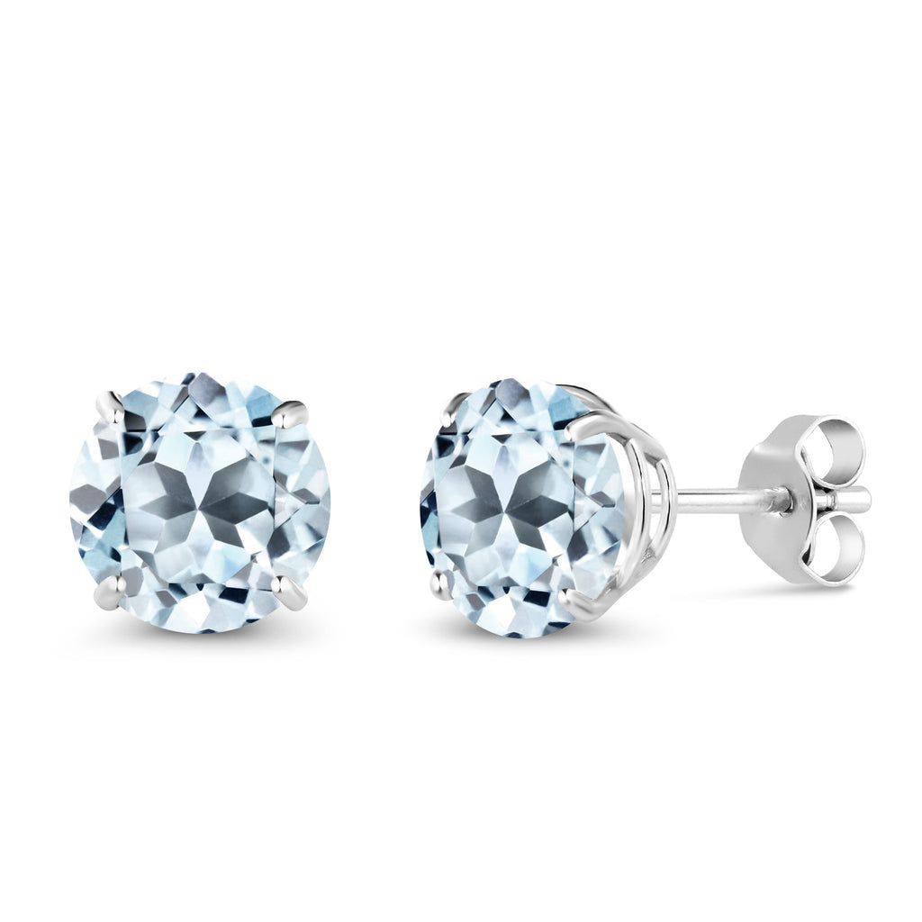 10K White Gold Round 7MM Gemstone Birthstone Stud Earrings For Women Men | Gold Earrings For Women
