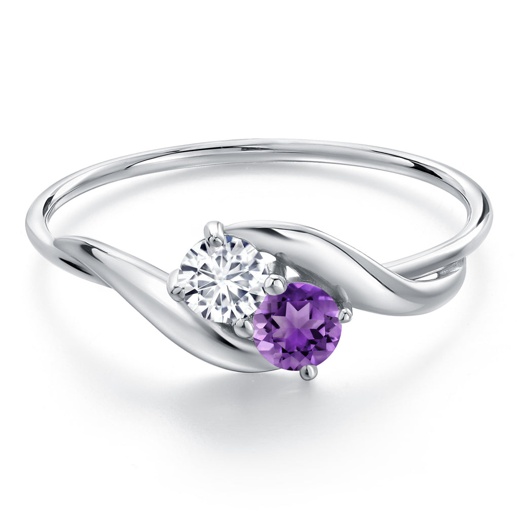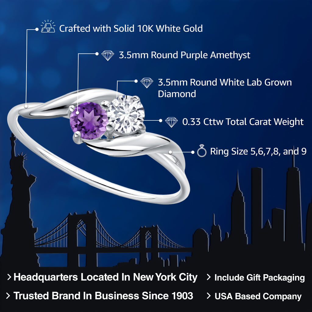 10K White Gold Round White Lab Grown Diamond and Purple Amethyst 2-Stone Ring For Women | 0.33 Cttw | Round 3.5MM | Wedding Engagement Anniversary Promise Ring For Women