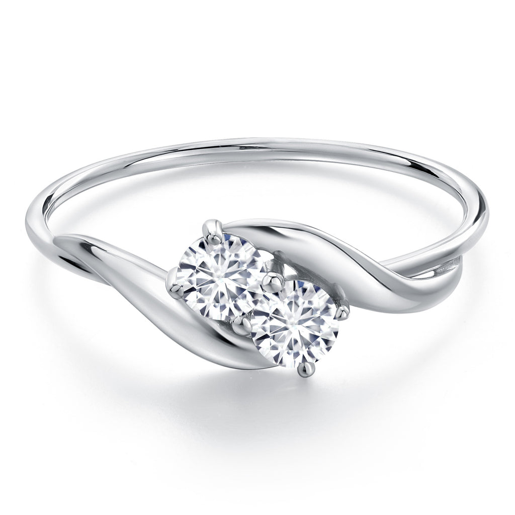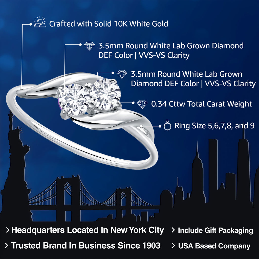10K White Gold White Lab Grown Diamond 2-Stone Engagement Ring For Women | 0.34 Cttw | Round 3.5MM | Wedding Anniversary Promise Gold Ring | DEF Color | VVS-VS Clarity