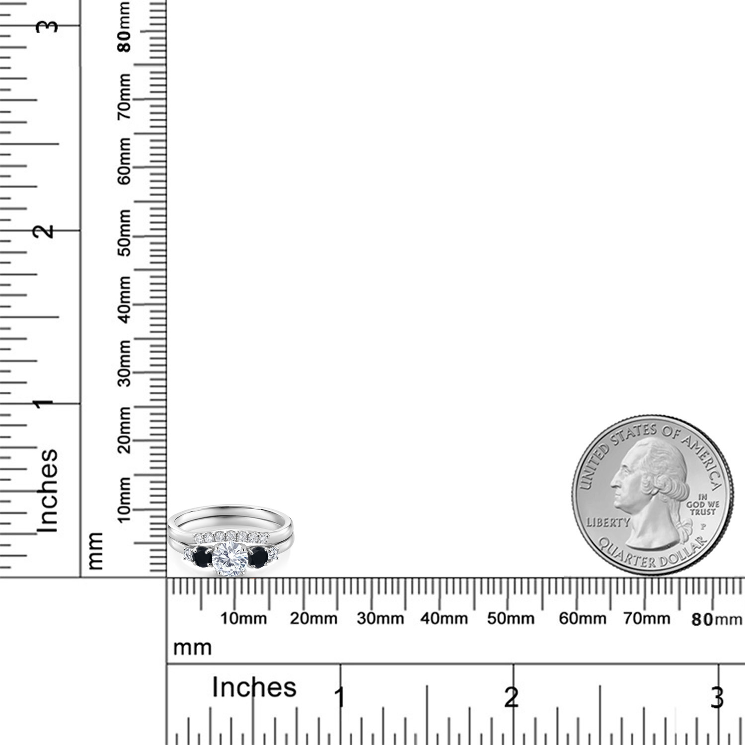 0.81 CTTW LAB GROWN DIAMOND & BLACK ONYX BEAUTY: This elegant 5-stone bridal set features a bold 5MM round lab-grown diamond center stone, flanked by shimmering 3MM black onyx stones and additional round lab-grown diamonds, totaling 0.81 carats. Symbolizing strength, clarity, and everlasting love, the contrast of black and white creates a powerful and sophisticated expression of commitment.