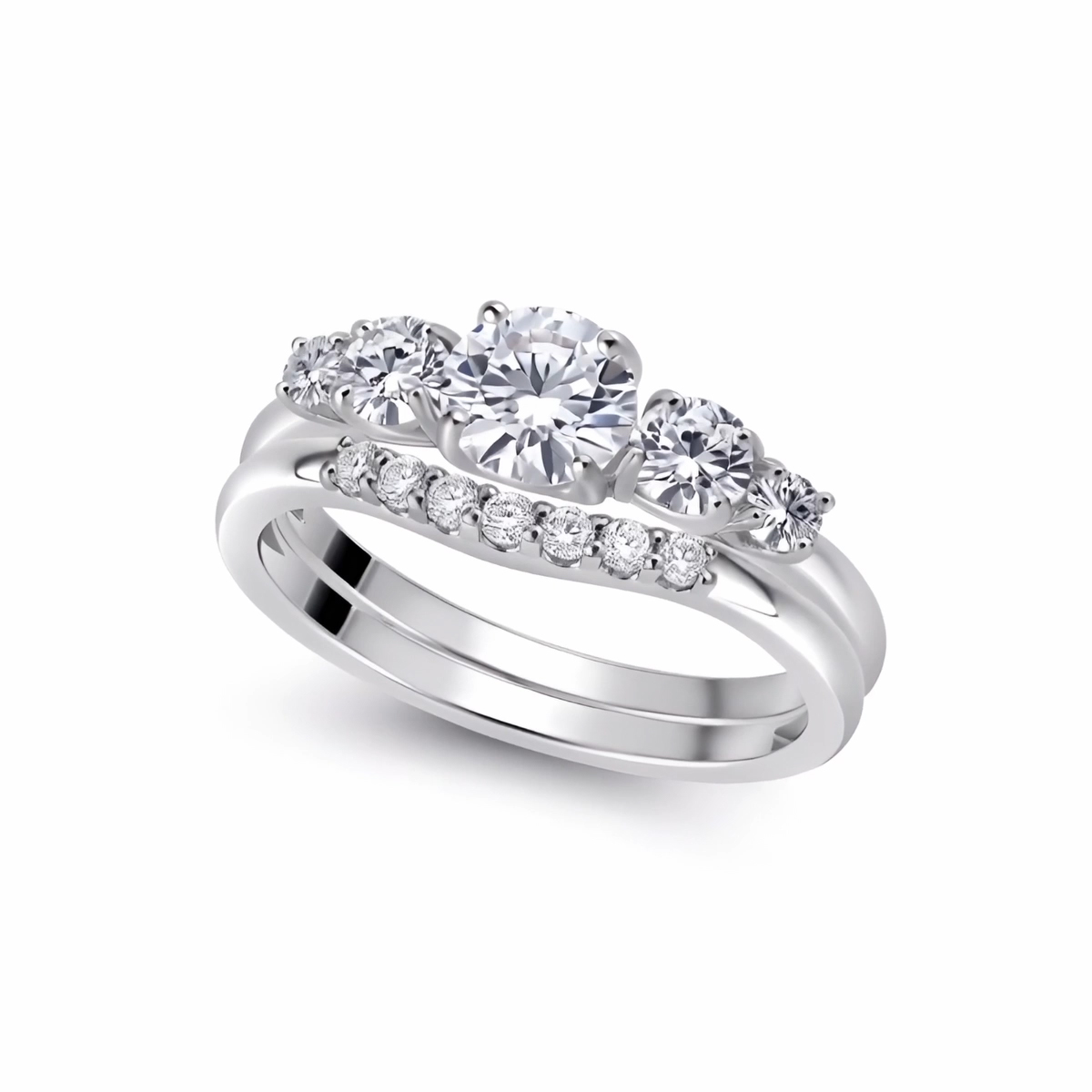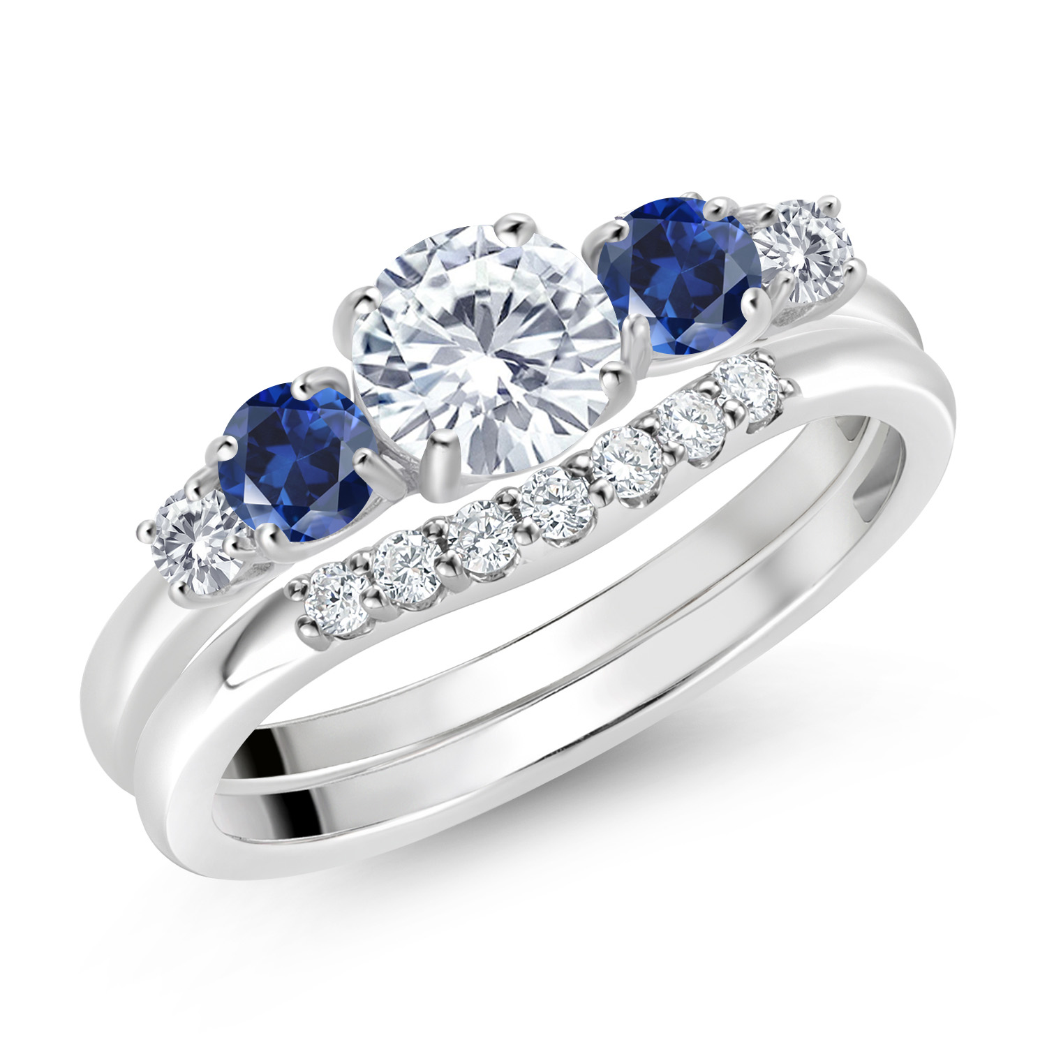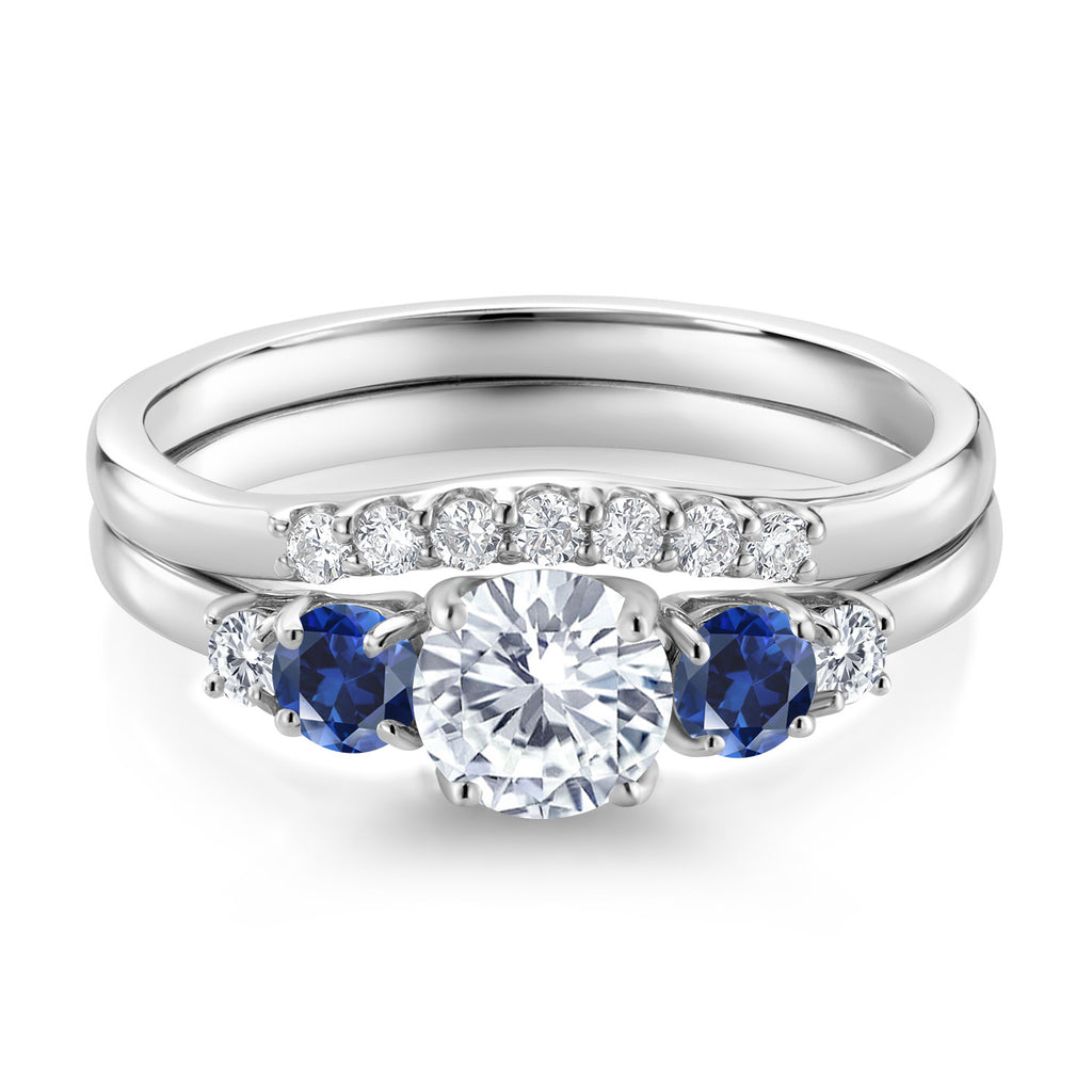 ELEGANT 5-STONE DESIGN: This stunning bridal engagement wedding ring set features a captivating combination of a central 5MM round sparkling white lab-grown diamonds, flanked by 3MM blue created sapphire and 1.4MM lab-grown diamonds. The 5-stone arrangement symbolizes the past, present, and future of your love, making this set a perfect choice for engagements, weddings, or anniversaries.