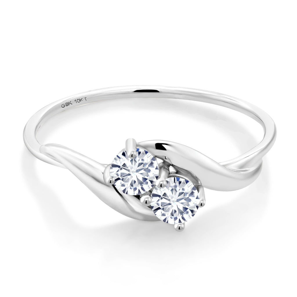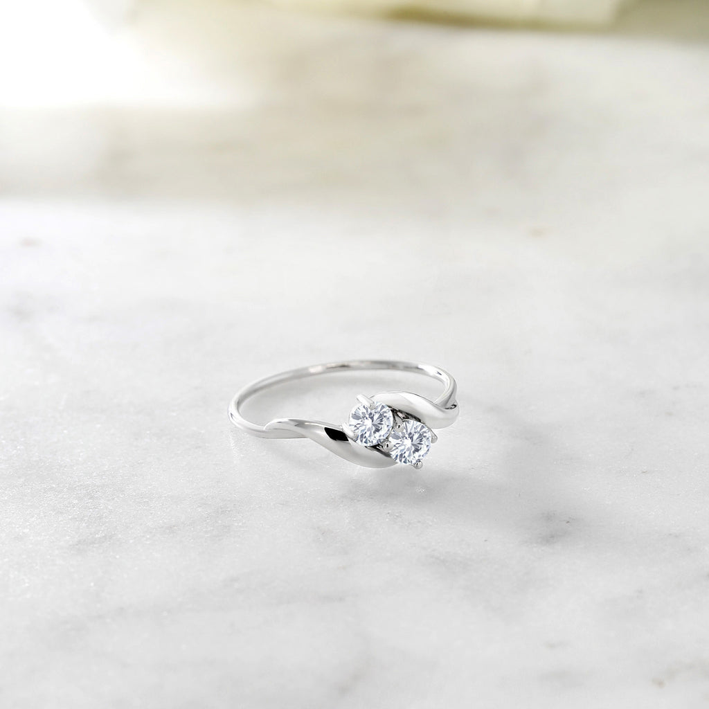 TIMELESS 2-STONE SYMBOLISM:Symbolize your love story with a timeless 2-stone engagement ring design. The ring features two round 3.5MM white moissanite stones, representing the union of two hearts and a commitment to everlasting love.
