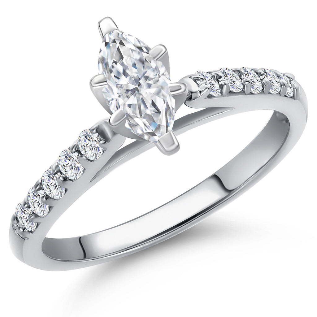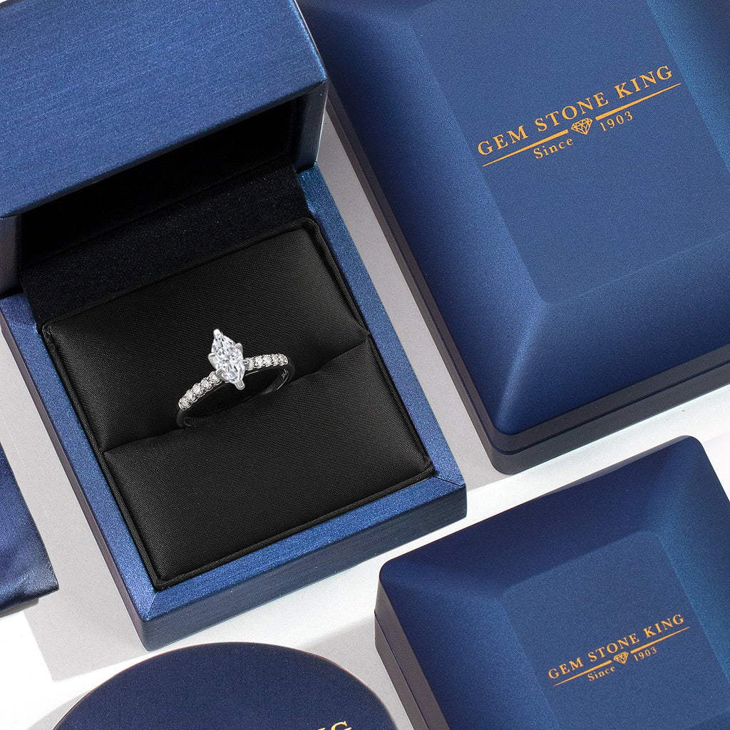 SOPHISTICATED DUAL-STONE DESIGN: This elegant engagement ring features a dazzling White Moissanite and shimmering Lab Grown Diamonds, totaling 0.70 Cttw, creating a timeless symbol of love and commitment.