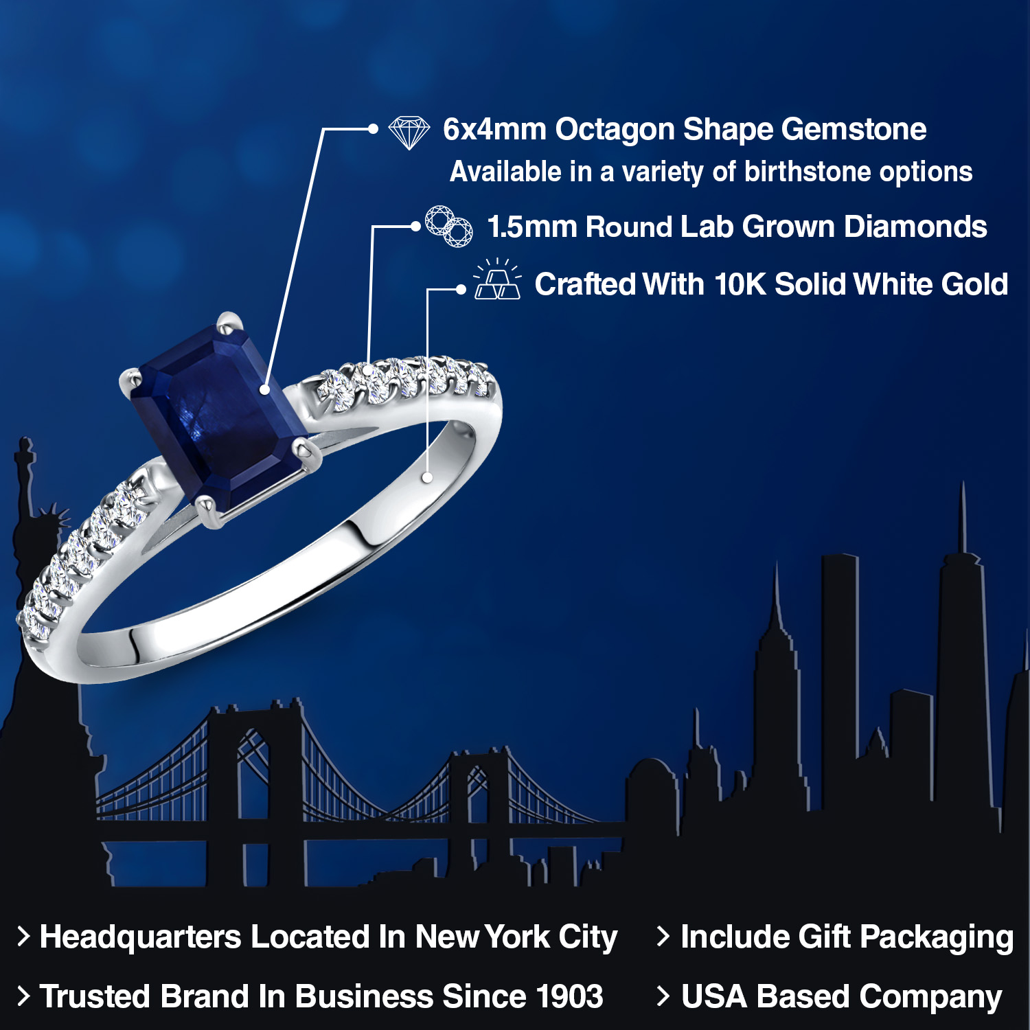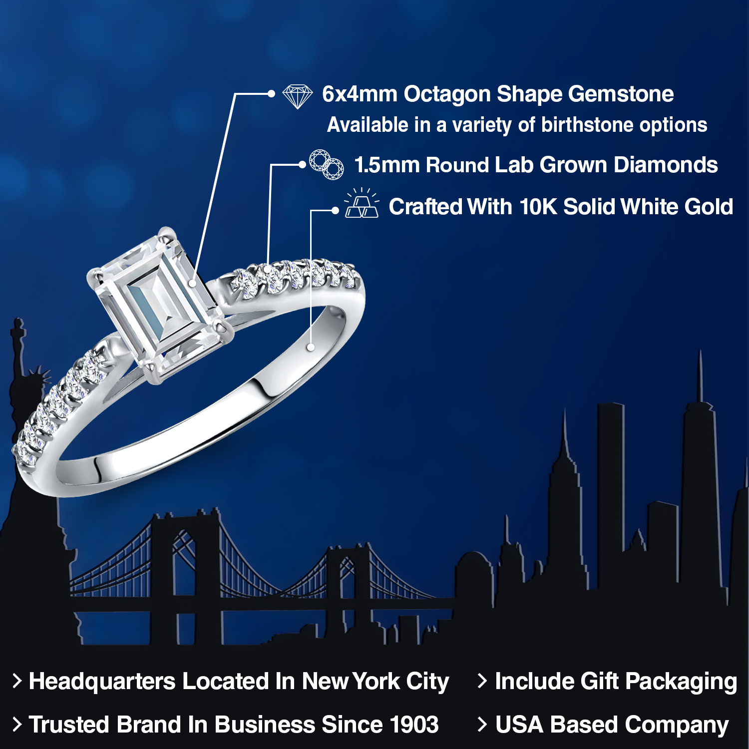 10K WHITE GOLD METAL: Crafted from premium 10K white gold, this ring exudes luxury and durability. The cool, lustrous finish of white gold enhances the gemstone's natural sparkle, creating a harmonious blend of elegance and strength. Known for its hypoallergenic properties, 10K white gold ensures a comfortable wear for those with sensitive skin, offering a perfect balance of beauty and practicality for everyday elegance.